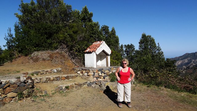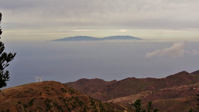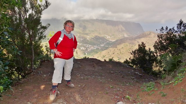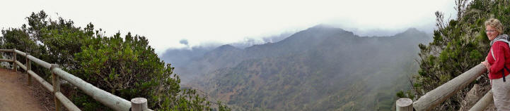 | Nachdem gestern wolkenloser Himmel war sind heute viele hohe Wolken aufgezogen. Trotzdem sind die Gipfel von La Gomera frei zu sehen. So fahren wir nach dem Frühstück hinauf Richtung Apartacaminos und biegen wieder Richtung Vallehermoso ab. Direkt am Chorros de Epina parken wir den Mietwagen und gehen kurz die Straße nach Alojera. Kurze Zeit später biegt eine Piste hinunter nach Tazo und Arguamul ab der wir nun folgen. Diese Ecke der Insel ist noch sehr abgeschieden. Hier gibt es keine befestigten Straßen, es fahren keine Busse und die Landschaft ist recht rau aber sehr schön. Als die Piste hinunter zu den Weilern Tazo und Arguamul führt biegen wir auf eine Forstpiste ein, welche vorbei am Teselinde-Massiv weiter zur Ermita Santa Clara führt. Inzwischen ziehen die Passatwolken über den Kamm und teilweise kann man die Küste und auch die umliegende Gipfel nicht erkennen. Als wir an der Ermita eintreffen wird es wieder klarer und wir machen eine kurze Rast. Dann gehen wir den Weg hinunter durch den Barranco La Era Nueva, welchen wir im vergangenen Jahr in umgekehrter Richtung gegangen sind. Dieser bringt uns in ca. 1,5 Stunden hinunter ins Tal nach Vallehermoso. Da heute Festivo (Los Reyes) ist fährt DER Bus (...es fährt nur einer um 14:00 Uhr) natürlich nicht. Auch der Einsatz unserer Daumen am Straßenrand ist nicht erfolgreich, da heute kaum jemand unterwegs ist. So machen wir uns auf den sehr schönen aber auch ziemlich beschwerlichen Aufstieg von Vallehermoso zurück hinauf zum Chorros de Epina. Immer wieder wechselt der Weg von einer Seite des Kammes auf die andere. Immer ist der Roque Cano (650m) unser optischer Wegbegleiter. Anfangs schauen wir zu ihm auf während er später um einiges unter uns liegt. Nach ca. 2 Stunden stehen wir dann wieder oben an der Piste nach Tazo, wo wir heute Morgen abgebogen sind. | ||