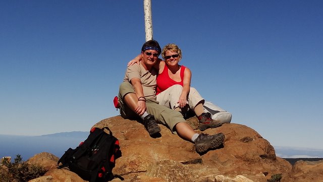 | Als wir heute Morgen aufwecken ist keine Wolke am Himmel. Wir Frühstücken heute etwas zeitiger da wir heute unseren Mietwagen übernehmen. Das klappt auch gut und pünktlich, so dass wir gegen 09:30 Uhr hinauf in Richtung Arure fahren. Weiter dann via Las Hayas, nach Chipude. Hier oben am Fuße der Fortaleza ist es allerdings recht windig. So fahren wir noch ein paar Kilometer weiter bis nach Igualero und beginnen von hier unseren Aufstieg auf den höchsten Inselberg, den Garajonay bei frischen 11,5°C Außentemperatur. Da keine Wolken am Himmel sind können wir auch schon während des Aufstieges einige Nachbarinseln (El Hierro, La Palma und natürlich Teneriffa mit dem Teide) erkennen. Als wir dann oben angekommen sind entdecken wir sogar noch Gran Canaria im Dunst. Nach einer kurzen Rast und einigen Panoramafotos geht es wieder zurück nach Igualero. dazu nehmen wir einen im letzten Stück anderen Weg und erreichen bald unseren Mietwagen. Nun geht es hinunter in den sonnigen Süden nach Playa Santiago an die Playa del Medio. Hier herrschen angenehme 24°C bei allerdings recht hohen Wellengang, so dass wir nicht schwimmen, uns aber trotzdem am Rande erfrischen können. Nach ausgiebigen Sonnenbad fahren wir dann wieder hinauf auf die Höhenstraße und von hier zurück ins Valle Gran Rey. Nach ein paar Einkäufen geht's noch zum Sunset zur Playa und im Abisinia lassen wir den Tag ausklingen. | ||