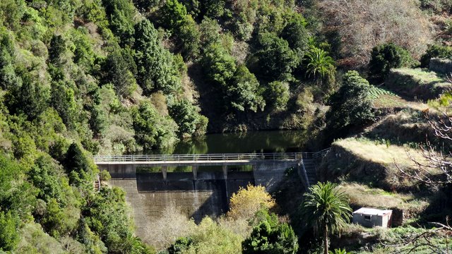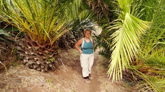 | Beim Wetter gibt es (glücklicherweise) nichts Neues, keine Wolke am Himmel und angenehme sonnige 24°C. So entschließen wir uns für eine Wanderung im Gebiet von Vallehermoso wohin wir mit unserem Mietwagen fahren. Von der Plaza fahren wir eine enge Straße Richtung Los Chapines und Los Loros hinauf. Unterhalb von Los Loros parken wir und steigen in ein Bachbett hinab um gleich danach wieder auf einen Bergrücken hinauf aufzusteigen. Während unten im Tal Landwirtschaft überwiegt fängt gleich beim Verlassen des Talgrundes die typische Bergvegetation mit Lorbeer und Baumheide an. Auffällig sind auch die vielen Esskastanien, welche hier sich in den Wald gemischt haben. Immer wieder bietet sich beim Aufstieg ein schöner Blick ins Tal von Vallehermoso mit dem Roque Cano. Als wir einen kleinen Kamm mit Grillplatz erreichen markiert dieser den höchsten Punkt unserer heutigen Runde. Von hier aus führt der Weg hinab zum kleinen Stausee Presa de Marchial. Den passieren wir und steigen steil hinunter in ein feuchtes Bachbett. Zuerst auf engen Wegen, später dann auf gut sichtbaren Wanderweg geht es wieder zurück in Richtung Banda de las Rosas. Die Rückfahrt unternehmen wir über Las Rosas und die Straße welche von Juego de Bolas zu La Laguna Grande führt. Weiter dann auf der Höhenstraße zurück ins Valle Gran Rey. | ||
