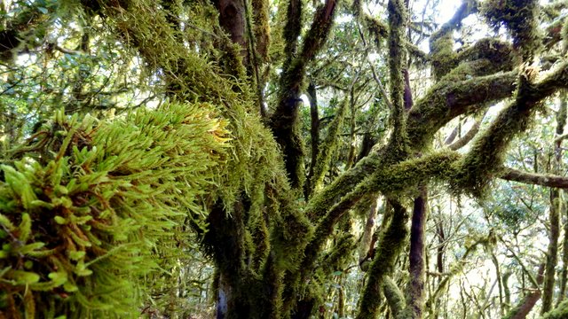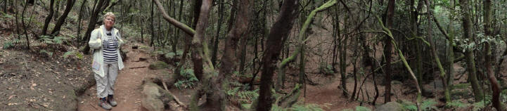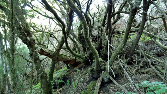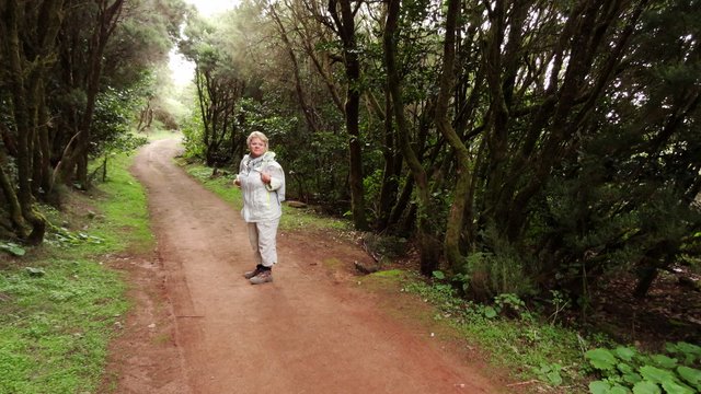 | Auch heute führt uns die Fahrt aus dem Valle Gran Rey heraus nach oben auf die Höhenstraße. Diese fahren wir bis fast zur Hälfte der Strecke nach Laguna Grande, wo der Startpunkt unserer heutigen Tour durch den Nebelwald ist. Am hinteren Ende des Areals beginnt ein Wanderweg welchen wir in den Nebelwald hinein folgen. Auch hier merkt man die große Trockenheit welche dieses Jahr herrscht. Mehrere Wege führen hinauf auf den höchsten Inselberg. Wir entscheiden uns unfreiwillig für eine längere dafür aber sehr schöne Variante. Einige Zeit später erreichen wir dann auf bekannten Weg den Gipfel des Garajonay. Da in den letzten Tagen der Wind aus Richtung Südost kommt haben wir etwas Calima, was dazu führt, dass der Sand, welchen der Wind mit sich führt, die Sicht etwas einschränkt. So sehen wir die Nachbarinsel La Palma nur stark eingetrübt und El Hierro hält sich ganz versteckt. Einzig die Spitze des Teide auf Teneriffa ist halbwegs klar zu erkennen. Teilweise auf einem alternativen Weg geht es dann zurück, wobei das letzte Teilstück des Weges nach Laguna Grande wieder die Strecke unseres Hinweges ist. Von der Zona Recreativa La Laguna Grande fahren wir dann zurück ins Valle, wo wir erst noch die Sonne genießen und nach einen Abstecher nach La Playa zum Sonnenuntergang den Tag im Abisinia ausklingen lassen. | ||