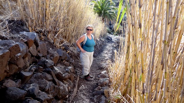 | Heute schlafen wir ein paar Minuten länger da es naturgemäß gestern auch etwas später geworden ist. Kurz nach 09:15 Uhr als die Sonne gerade unsere Terrasse erreicht genießen wir das erste Frühstück des Jahres. Da es die Sonne heute früh mal wieder richtig gut meint lassen wir es langsam angehen und nutzen die Zeit zum Lesen. Dann brechen wir auf um einen Klassiker der Wanderungen im Valle Gran Rey zu unternehmen - die Tour zum Salto de Agua, dem Wasserfall im Barranco hinter El Guro. Auch wenn wir die Tour schon viele Male unternommen haben so bietet sie immer wieder Gelegenheiten sich in dem urwaldähnlichen Bambusdschungel zu verlaufen. Man kommt nie so richtig vom Weg ab aber man läuft immer Gefahr in einer "Sackgasse" zu landen an welcher es dann nicht weitergeht. Dieses Jahr ist wenig Wasser im Barranco und wir erreichen nach ca. 1 Stunde den Wasserfall am eine des Tales. Nach kurzer Rast geht es auf gleichem Wege wieder retour nach El Guro und hinunter nach La Puntilla. Nach Zwischenstopp im Hotel lassen wir den Tag wie meistens an der Playa bei Maria ausklingen wo heute neben den üblichen Trommelklängen auch einige "feurige" Jonglierkunststücke dargeboten werden. | ||