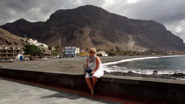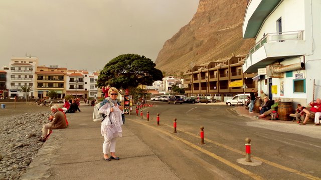 | Nach der gestrigen langen Abstiegswanderung lassen wir es heute und sicher auch morgen ruhiger angehen und genießen unsere beiden letzten Tage besonders entspannt. Nach dem Frühstück drehen wir ganz in Ruhe von la Puntilla über Borbalan und Vueltas eine Runde durchs Valle. Da scheint die Sonne und es sind 25°C, wie wir der Anzeige an der Farmacia in Borbalan entnehmen können. Kaum haben wir den Entschluss gefasst, uns am Hafenstrand von Vueltas niederzulassen ziehen einige dunkle Wolken auf, so dass wir uns auf unsere Terrasse zurückziehen. Am Abend gehen wir dann nochmals nach La Playa. Der Sonnenuntergang "fällt heute wegen Wolken aus" bzw. fällt weniger prächtig als sonst aus, so dass wir uns gleich zum Abendessen ins Colorado begeben. | ||