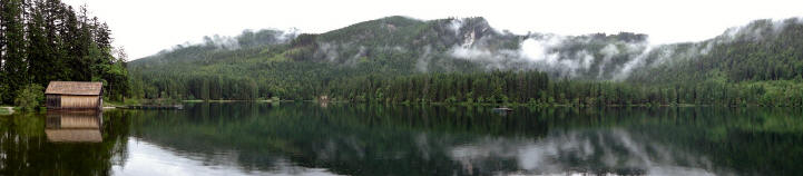 | Heute stimmt der Wetterbericht. Leider passt damit die negative Prognose. So hören wir schön am frühen Morgen den Regen draußen herunterprasseln. Trotzdem lassen wir uns nicht abhalten nach dem Morgenbad und dem Frühstück zu starten. Wir fahren die Ennstalstraße in Richtung Liezen um dann über Bad Mitterndorf am Kulm zum Ödensee zu fahren. Dieser liegt mitten im Wald und bietet wunderbare Spiegelungen im Wasser. Leider sehen wir die Berge um uns herum nicht da alles in dicke Wolken gehüllt ist. Da der Regen gerade etwas nachgelassen hat entschließen wir uns zu einem kurzen Spaziergang bei dem wir den Ödensee umrunden. Kurz vor dem Auto setzt der Regen wieder ein und so fahren wir weiter in Richtung Bad Aussee. Dann erreichen wir Obertraun. Hier biegen wir zur Dachsteinbahn ab doch angesichts des Wetters wollen wir nicht nach oben fahren, auch wenn die Höhlen in der Dachsteinwand sicher interessant sind. Da aber die Aussicht hinunter zum Halstätter See überhaupt nicht möglich ist fahren wir weiter nach Hallstatt. Glücklicherweise ergattern wir einen der wenigen Parkplätze. Kaum sind wir in Richtung Ortsmitte losgelaufen beginnt es wieder mehr an zu regnen. Hallstatt liegt sehr idyllisch an einer Steilwand direkt am Ufer des gleichnamigen Sees. Man merkt, dass viele Touristen aus dem nahen Salzburg hierher einen Abstecher machen. Als wir schon wieder auf dem Rückweg zum Auto sind kommt sogar kurz die Sonne durch. Dann geht es wieder zurück ins Ennstal. Wir wählen die Route via Filzmoos. Nach einen Abstecher nach Schladming geht es zurück ins Hotel, wo wir uns in die Sauna zurückziehen. Das Wetter ist am Abend sehr wechselhaft und teilweise kann man keine 100 Meter weit sehen und 5 Minuten kommt die Sonne wieder hervor.....wir hoffen morgen auf besseres Wetter.... | |||