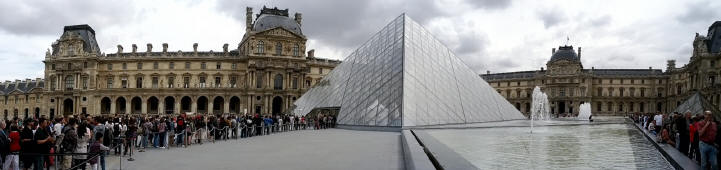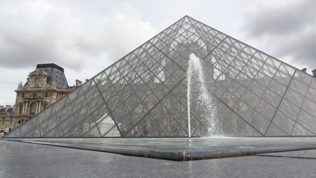 futuristischen Pyramide, welche den Eingang zu den Museen markiert, bildet