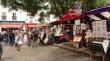 Touristen werden von zahlreichen Straßenkünstlern unterhalten. Wie viele