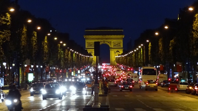 Elysées auszusteigen. Von hier schlendern wir auf dem abendlich erleuchteten