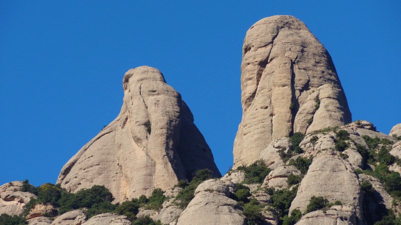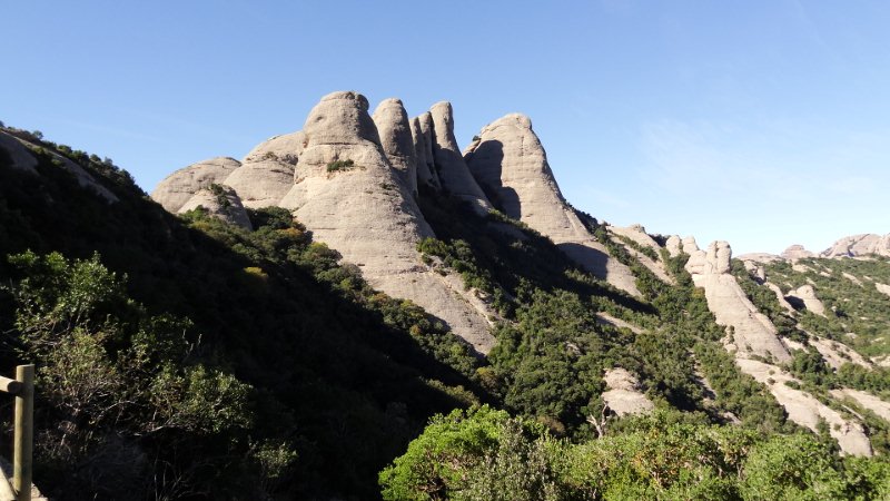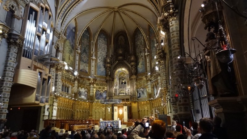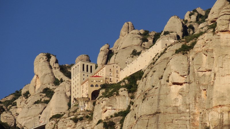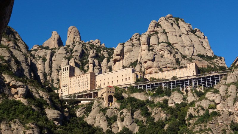 | Pünktlich um 07:00 Uhr sind wir die ersten Frühstücksgäste im Hotel. Anschließend fahren wir direkt von der Placa Espanya, welche vor unserem Hotel liegt, mit der S-Bahn R5 (Richtung Manresa) bis zur Station Aeri. Als wir nach ca. einer Stunde dort eintreffen müssen wir noch ein paar Minuten warten, bis wir mit der ersten Gondel nach oben fahren können. Die Seilbahn ist übrigens eine sächsische Konstruktion der Fa. Bleichert aus Leipzig, Baujahr 1930. Von der Talstation aus sehen wir schon das Kloster in den pittoresken Felsen liegen. Leider wurde in neuer Zeit auch hier oben nicht mit Beton gespart, z.B. für die zweite Möglichkeit nach hier oben zu kommen - die Zahnradbahn. Oben angekommen wechseln wir gleich das Gefährt und fahren mit der Funicular de Sant Joan noch bis auf 970 Hm hinauf. hier oben hat man eine tolle Sicht auf das Umland bis hin zum Tibidabo und dem Fernsehturm von Barcelona und weiter bis zum Meer. Hier oben machen wir eine Kurzwanderung zur Ermita de Sant Onofre. Diese liegt inmitten von kegelartigen Sandsteinformationen. Nach der Kapelle führt der Weg entlang einer Felswand über Treppen wieder hinunter zu unserem Hinweg und dann wieder zurück zur Station der Funicular. Diese bringt uns wieder nach unten und wir müssen uns sputen da zeitgleich die nächste Bergbahn, diesmal bergab, uns zur Station Santa Cova bringt. Von der Talstation dieser Funicular geht ein angenehmer Spazierweg in toller Panoramalage zur Capella de Santa Cova. Nach einer kurzen Besichtigung geht es dann wieder zurück zur Bergbahn, welche uns wieder zurück zum Kloster Montserrat bringt. Nun besichtigen wir die Basilika mit der schwarzen Madonna. Nach der Klosterrunde fahren wir wieder mit der Teleferic hinunter zur Station Aeri und auf gleichem Weg wieder zurück zur Placa Espanya. Hier angekommen wechseln wir gleich in die Metro L3 mit der wir bis Lesseps fahren. Von hier liegen noch ca. 20 Minuten Fußweg vor uns ehe wir den Park Güell erreichen. Dieser wurde von Antoni Gaudi geschaffen und zählt zum UNESCO-Weltkulturerbe. Der Park liegt auf einem Hügel oberhalb der Stadt und damit bietet sich ein toller Ausblick über die Metropole Barcelona. Auch die typischen Gestaltungsformen von Gaudi wie die "Schlangensitzbänke" und die künstlichen Grotten prägen das Areal. Nach einer großen Runde geht es wieder zurück zur Metro. An der Station Liceu steigen wir aus und sind damit direkt an der Rambla vor dem Mercat de Sant Josep. Die bedeutendste Markthalle von Barcelona ist ein Feinschmeckerparadies. Nachdem aufgrund der späten Stunde die Fischabteilung schon recht verwaist daliegt, so ist im Bereich Obst und Gemüse und natürlich in der Carniceria jede Menge los. Hier ist das Schinkenparadies, wenngleich der Schinken vom Cerdo Iberico schon schnell mal mit 20 Euro zu Buche schlägt...für 100 Gramm wohlgemerkt und nicht fürs Kilogramm! Wir bummeln dann noch einige Zeit durch das Barri Gotic, wo wir in diversen Feinschmeckerläden noch ein paar leckere Sachen erstehen und fahren dann ab Placa Catalunya wieder zurück in unser Hotel an der Placa Espanya. | ||||