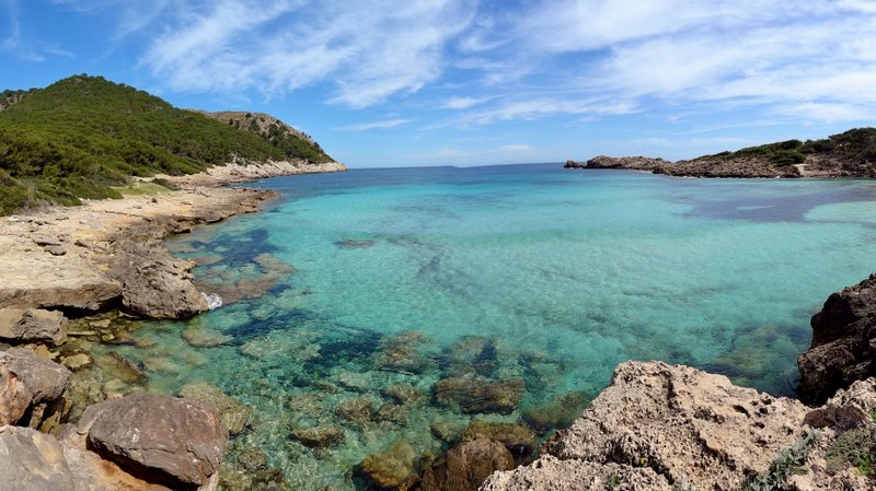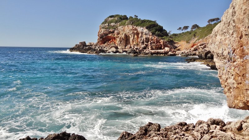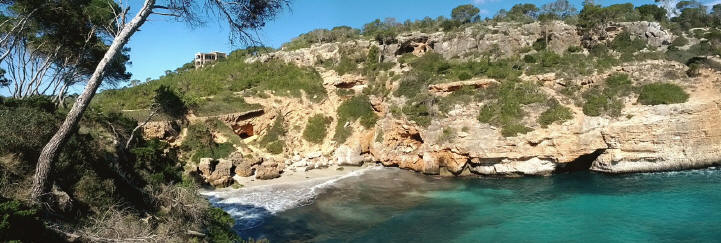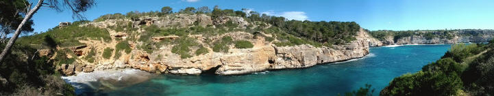 | In den Südosten - Es Moli de Son Vidal - Cala S' Almunia - Far de Cap Salines - Cala Llombards - Es Pontas - Cala Mondrago - Cala Egos - Porto Pedro - Cala Sa Nau | |||||