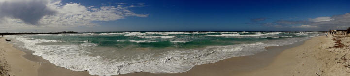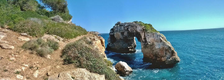 Da heute früh schon die Sonne von einem tiefblauen Himmel lacht entschließen wir uns zu den Buchten in den Südosten der Insel zu fahren. Via Petra, Manacor, Felanitx und Santanyi fahren wir zur Cala S' Almunia. Zuvor machen wir noch einen kurzen Abstecher zur Es Moli de Son Vidal, wo wir im letzten Jahr zu Gast waren. Dann erreichen wir unsere Lieblingsbucht. Leider herrscht heute recht hoher Wellengang so dass der kleine Strand überflutet ist und wir diesen so nicht zum Sonnenbad nutzen können. So wandern wir ein kurzes Stück entlang der Klippen nach Süden. Nachdem wir gestern am nördlichsten Punkt der Insel waren fahren wir nun im Anschluss an den südlichsten Punkt Mallorcas, dem Leuchtturm am Cap Salines. Auch hier am Far de Cap Salines weht ein strammer Wind. Dann fahren wir wieder via Llombards zurück zu den Buchten an der Südostküste und machen einen nächsten Stopp an der Cala Llombards. Von hier sehen wir schon unser nächstes Ziel Es Pontas, ein Felsentor welches vor der Cala Santanyi liegt. Mit dem Mietwagen muss man einen Bogen durchs Hinterland fahren um die Felsformation zu erreichen. Über Porto Petro und die Cala Egos (eine der Buchten von Cala d' Or) fahren wir dann wieder nördlich bis S' Horta, wo wir zur Cala Sa Nau abbiegen. Nachdem wir am Freitag bereits hier waren genießen wir auch den heutigen Nachmittag hier in dieser Bucht. Zurück in unserer Finca Roqueta werfen wir heute den Grill an und lassen uns leckere Rindersteaks und Hühnerkeulchen schmecken. |