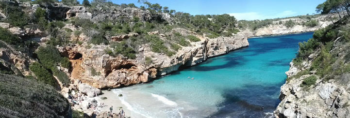 Heute ist das Wetter absolut top. Schon am Morgen scheint die Sonne vom blauen Himmel und kaum eine Wolke ist zu sehen. Nach dem Frühstück fahren wir in die Nordküste nach Son Serra de Marina. Diese Urbanisacion ist etwas zwiespältig. Es gibt schöne Ecken doch auch einige weniger schöne Abschnitte. Doch am letzten Zipfel des Ortes befindet sich die Sunshine Bar "El Sol", an einem recht netten Sandstrand. Nach einem kurzen Strandbummel fahren wir auf engen Nebenstraßen via Petra nach Manacor. Kurz hinter dem Ort biegen wir einen engen Feldweg zur Bodega Toni Gelabert ab. Leider hat diese heute geschlossen, da auch der heutige Gründonnerstag in Spanien Feiertag ist. So fahren wir weiter nach Felanitx, wo wir nicht die Umgehungsstraße nehmen sondern uns durch die engen Gassen der Altstadt drängeln. Dann fahren wir weiter via C'as Concos und Santanyi an die Cala S' Almunia, wo wir bei besten Wetter den Tag verbringen. Erstmals wagen wir uns auch kurz ins ca. 14°C kalte Wasser. Das war wirklich erfrischend doch in der Sonne kommen wir schnell wieder auf "Betriebstemperatur". Dann fahren wir wieder via Felanitx zurück und nehmen an hier wieder kleine enge Nebenstraßen auf denen wir zurück nach Maria de la Salut gelangen. |