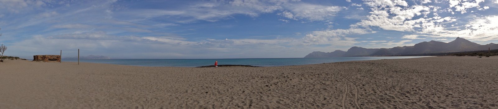 Heute starten wir über Santa Margalida in Richtung Colonia Sant Pere an der Nordküste Mallorcas. Hier machen wir einen kurzen Stopp an der Marina der kleinen Urbanisacion. Dann fahren wir noch weiter an den letzten Zipfel der Landzunge unterhalb des Mont Ferrutx, nach Betlem. Hier sind ein paar kleine flache Sandbuchten welche von flachen Felsen umrahmt sind. Dazu hat man einen weiten Blick über die Bucht von Alcudia. Dann fahren wir wieder zurück zur Küstenstraße und biegen bei Capdepera zur Cala Mesquida ab. Der Dünenstrand liegt noch ruhig da aber die Menge der Hotels und Ferienwohnungen lässt für die Sommersaison einiges befürchten. Dann geht es weiter zur nahe gelegenen Cala Agulla. Hier machen wir einen kurzen Spaziergang zur benachbarten Cala Molto, einer kleinen Felsenbucht, welche zwar optisch schön ist aber zum Baden wegen der vielen Felsen nur bedingt geeignet ist. Zurück am Auto fahren wir nicht erst nach Cala Ratjada sondern weiter in Richtung Süden. Hier machen wir noch einen Abstecher nach Canyamel, welcher allerdings nicht sonderlich lohnend war. Dann machen wir uns in Richtung Cala Sa Nau auf den Weg doch bei Porto Cristo entschließen wir uns, wieder zur Nordküste zurückzukehren. Da es im Süden bereits ziemlich bedeckt ist im Norden hingegen noch die Sonnen scheint war das sicher die bessere Wahl. So fahren wir nach Son Serra de Marina, wo wir am östlichen Ortsrand am Cafe El Sol den Nachmittag am Strand verbringen. Im späten Nachmittag machen wir dann noch einen kleinen Abstecher in Richtung Westen nach Cala Sant Vicenc. Nachdem wir in den vergangenen Jahren den Ort in nicht allzu guter Erinnerung hatten war dieses Mal der Strand sauber und aufgeräumt und an der ersten Bucht, der Cala Barca, sind auch ein paar nette kleine Restaurants zu finden. Nach einem kurzen Bummel fahren wir dann über Pollenca, Sa Pobla und Muro zurück in unser Quartier. |