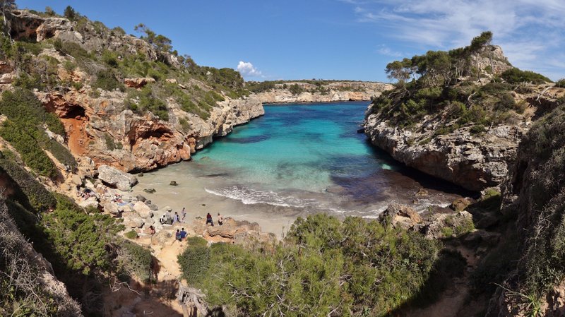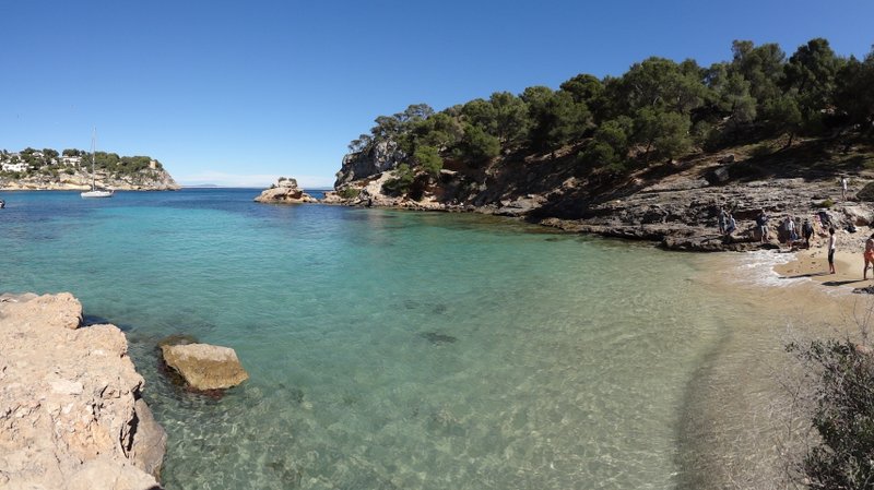 Heute klingelt um 02:30 Uhr der Wecker. Dummerweise ist das genau der Zeitpunkt wo wir starten wollen. Der Wecker war somit falsch gestellt und so müssen wir uns ziemlich beeilen. Trotzdem treffen wir fast pünktlich am Flughafen in Dresden ein. Da wir bereits online eingecheckt hatten geben wir nur noch die Koffer ab und haben immer noch reichlich Zeit bis zum Boarding. Der Flieger landet dann pünktlich in Palma, wo wir nach ca. 30 Minuten Wartezeit unseren Mietwagen bei Goldcar (ein nagelneuer Ford Fiesta) übernehmen. Nach kurzen Einkäufen in den Gewerbegebieten am Flughafen fahren wir zur Finca La Roqueta wo wir wieder unser Quartier gefunden haben. Nachdem wir unser Appartement bezogen haben fahren wir in den Südosten. In S' Horta biegen wir zur Cala Sa Nau ab, wo wir fast schon traditionsgemäß unseren ersten Nachmittag auf der Insel verbringen. Wir genießen nach den langen grauen Tagen in Deutschland den Sonnenschein bei milden Temperaturen. Dann machen wir noch einen kurzen Abstecher nach Cala d'Or, wo wir im Eroski erst einmal ein paar Einkäufe erledigen. Dann geht es noch zur Cala Esmeralda die noch in vorsaisoneller Ruhe daliegt. Wir sind fast allein hier und genießen die Stille und den Sonnenschein. Dann fahren wir retour in unser Quartier La Roqueta. Bei einem Glas Rotwein genießen wir die Abendsonne und lassen den Tag ausklingen. |