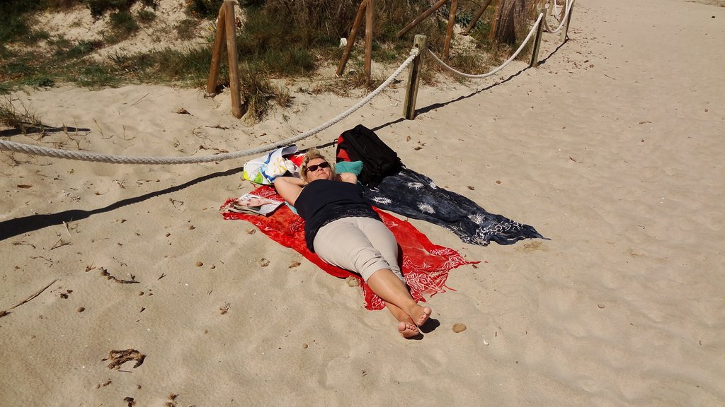 Heute morgen ist der Himmel Wolkenverhangen. Nachdem wir per webcam gesehen haben, dass es in Palma bereits regnet fängt es kurze Zeit später dann auch in Maria de la Salut an zu regnen. Nach dem Frühstück ist der Regen dann vorbei und wir fahren via Sineu, Montuiri nach Campos. Zuvor biegen wir noch hinauf zum Monasterio Monte Sion ab. Von hier oben haben wir ein tollen Rundblick über die Insel. Nach einer kurzen Besichtigung des Klosters fahren wir weiter nach Campos. Hier kaufen wir schnell noch paar Dinge im Eroski ein und fahren dann weiter in Richtung Ses Salines. Bevor wir zur Platja d'es Trenc fahren machen wir noch an den Salinas do Levante einen Zwischenstopp. Hier gibt es einen kleinen aber feinen Laden mir diversen lokalen Produkten, wo wir neben dem hier produzierten Flor de Sal auch noch lokalen Paprika und Wein erstehen. Dann lassen wir die Salzberge der Salinen hinter uns und fahren die wenigen Meter weiter zur Platja d'es Trenc. Hier löhnen wir stattliche 6.-EUR Parkgebühr und unternehmen dann einen schönen Strandspaziergang. Hier weht ein strammer Wind aber der hat inzwischen alle Wolken vertrieben. An der Platja wurden viele Quallen angespült doch trotz dessen und des heftigen Windes ist es hier sehr angenehm. Nach de, Strandbummel fahren wir via Ses Salines, Llombards und Santanyi nach S' Horta und von hier zur Cala Sa Nau. Hier verbringen wir den Nachmittag bei schönem Sonnenwetter. Zurück in unserer Finca Roqueta werfen wir letztmalig den Grill an und genießen die Abendsonne, die Dank der Sommerzeit eine Stunde länger scheint. |
