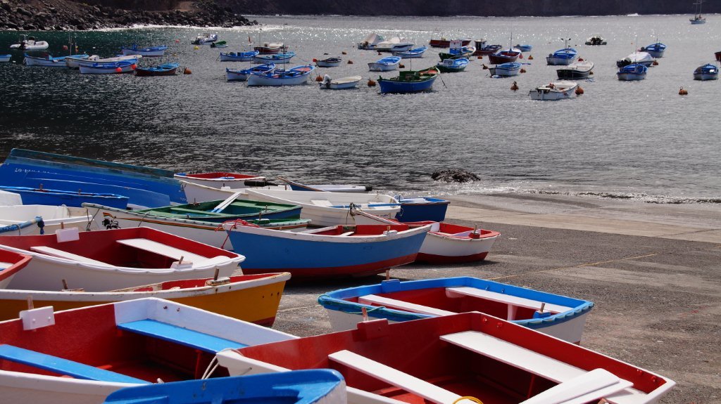 | Mitten in der Nacht klingelt unser Wecker und wir machen uns auf den Weg zum Flughafen. Pünktlich um 06:35 Uhr startet die Condor-Maschine in Richtung Teneriffa, wo wir ebenfalls pünktlich landen. Schnell bekommen wir unser Fährvoucher und ein Bus bringt uns nach Los Cristianos zum Fährhafen. Wir haben Glück und können mit der ARMAS-Fähre übersetzen, welche schon um 14:30 Uhr statt 16:00 Uhr (Olsen) startet. Normalerweise fährt auf dieser Strecke die "Volcan de Taburiente". da diese im Moment zur Revision ist setzt die Reederei die "Alborán" ein, welche normalerweise die Strecke von Alegiras nach Ceuta und Mellilla bzw. Gibraltar abdeckt, ein. Trotzdem bleibt noch einige Zeit welche wir zu einem kurzen Bummel entlang der Promenade in Los Cristianos nutzen. Hier sehen wir mal wieder wo wir nicht Urlaub machen möchten. Hier ist es ziemlich sonnig und wir genießen die warme Sonne. Dann geht es los und wir erleben die stürmischste Überfahrt nach La Gomera, welche wir bisher erlebt haben. Viele Passagiere haben den "Tüten" zugesprochen und wir waren froh nach 1 Stunde endlich in San Sebastian anzukommen. Da die ARMAS den Koffertransport chaotisch organisiert hat dauert es einige Zeit bis wir unser Gepäck erlangt haben und auf die letzte Etappe, der Fahrt ins Valle, gehen können. Gegen 17:30 Uhr treffen wir dann im Baja del Secreto ein. Nach dem Check In und einer kurzen Dusche bummeln wir dann noch nach Vueltas, wo wir in unserem Stammrestaurant, dem Abisinia, die ersten Chopitos (Mini Kalamares) essen, welche wie immer vorzüglich sind. | ||||