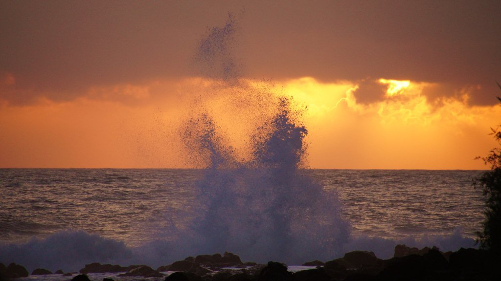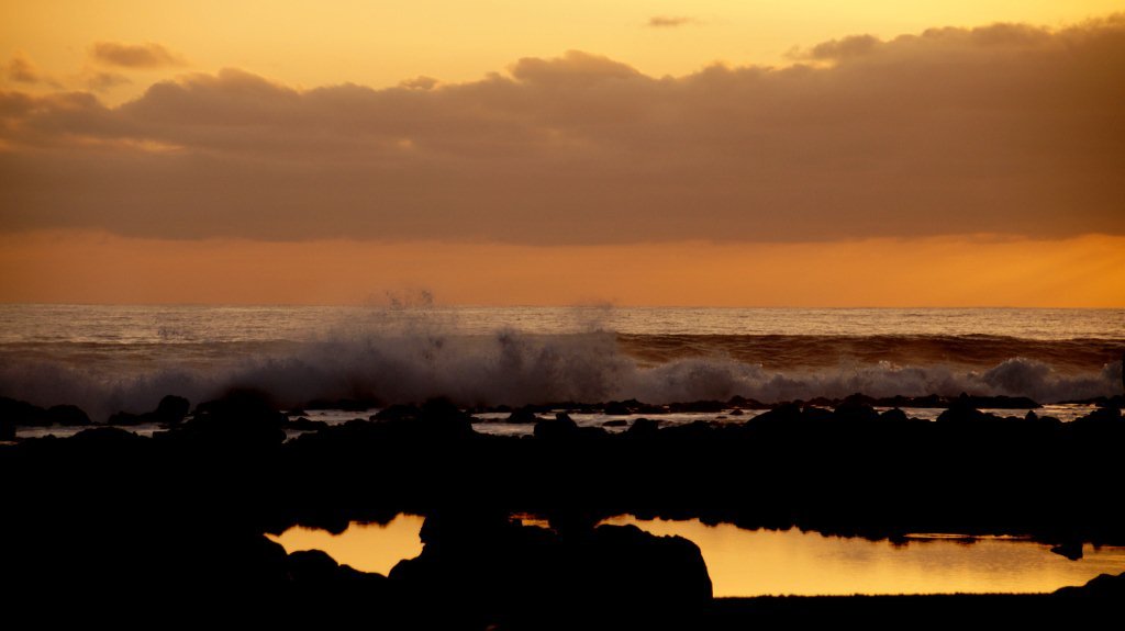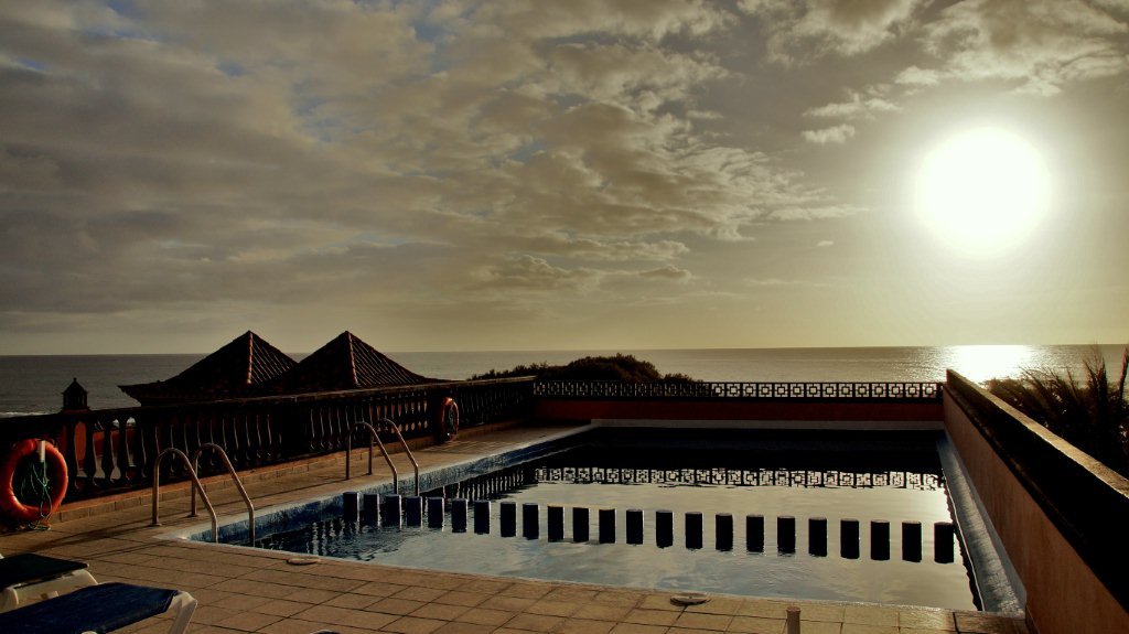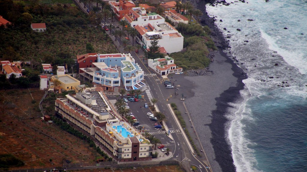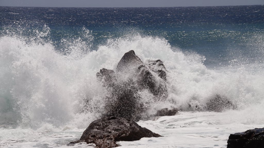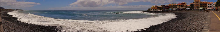 | Heute Morgen ist es recht wolkig. Trotzdem können wir bei angenehmen Temperaturen auf der Terrasse frühstücken. Da die Abstiegswanderung von gestern ein paar Blessuren hinterlassen hat schlendern wir erst gegen Mittag entlang der Uferstraße nach La Playa. Gleich vor unserem Hotel am Baby-Beach liegen viele der Portugiesischen Galeeren und auch im Wasser sehen wir noch mehrere der "Plastiktüten" schwimmen. Kaum treffen wir an der Playa ein fängt es an zu regnen. Nachdem wir den Schauer abgewartet haben geht es wieder retour ins Appartement wo wir die inzwischen wieder strahlende Sonne genießen. Den heutigen "Ruhetag" nutzen wir auch um mal in den Pool zu springen. Am Abend geht es dann nochmal zum Hafen nach Vueltas und dann führt uns der Weg wie gestern ins "Abisinia". Als wir hier ankommen erreichen wir gerade noch im Trockenen unser Stammlokal. Da aufgrund des Wetters noch wenige Gäste da sind schwatzen wir noch etwas mit dem Wirt und er erzählt uns, dass die Uferstraße zwischen der Playa und la Puntilla gesperrt sei und dort die hohen Wellen die Straße weggerissen hätten. Da wir noch vor 3 Stunden dort entlang gelaufen sind konnten wir das erst gar nicht glauben. Wir haben dann die Stelle nochmals in Augenschein genommen - und die eindrucksvolle Gewalt der Natur gesehen. | ||||