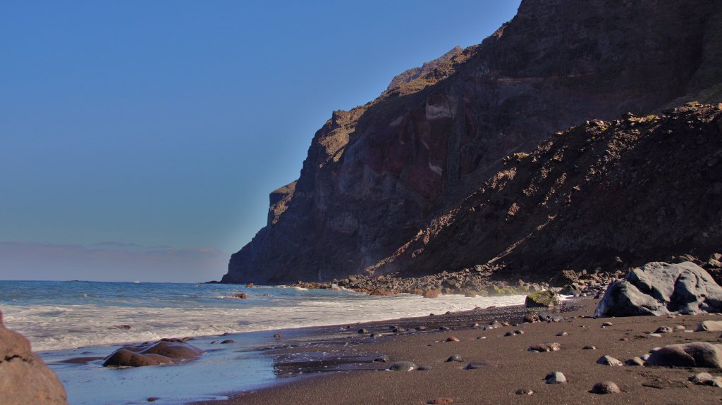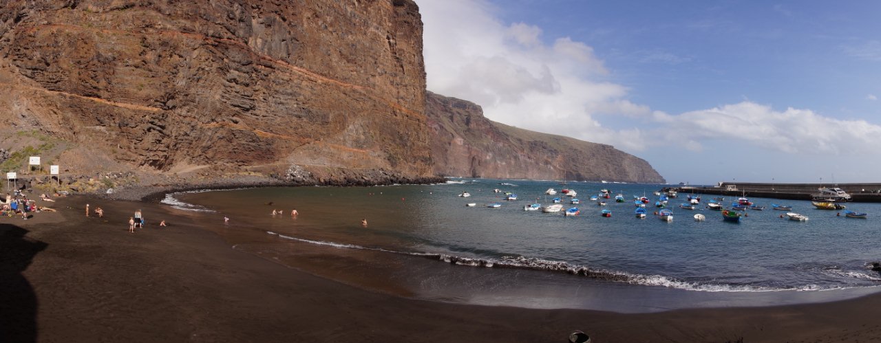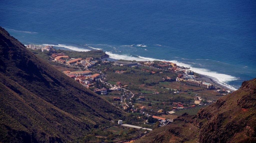 | Schon heute Morgen ist keine Wolke am Himmel zu sehen. Gegen 09:30 Uhr lugt die Sonne über den Tequergenche und taucht das Valle ins helle Sonnenlicht. So schlendern wir nach unserem letzten richtigen Frühstück in Richtung La Playa und weiter an die Playa del Inglés. Hier sind heute kaum Wellen aber ebenso fehlt der Sand. Da es hier zum Baden ohnehin nur bedingt geeignet ist und aktuell viele portugiesische Galeeren im Wasser sind gehen wir auf dem gleich Weg wieder retour nach La Puntilla. Während Ines das sonnige Wetter auf der Terrasse und am Pool erlebt nehme ich wieder den 13:00 Uhr-Bus und fahre hinauf nach Las Hayas. An der Casa Efigenia biegt der sog. Mastenabstieg ab. Zuerst führt er durch Gassen und über Felder in Las Hayas. Kurze Zeit später stehe ich dann an der Barrancokante und sehe unten im Miniformat das Valle Gran Rey liegen. Leider ziehen gerade in diesem Moment ein paar lästige Wolken auf, welche das Panorama einschränken. Genau schnell wie sie gekommen sind verziehen sie sich wieder und das Tal liegt direkt vor mir. Der Weg ist zwar gut ausgebaut führt aber sehr steil und direkt in vielen Kehren hinunter nach Los Descansaderos. Wieder unten angekommen nehme ich den bekannten Weg über La Vizcaina, El Hornillo und Chelé vorbei an der Ermita de los Reyes und wieder zurück ins Valle Gran Rey. An der Puntilla angekommen springen wir beide dann nochmals schnell in das erfrischende Wasser des Pools. Am Abend führt uns der Weg dann in unser Stammlokal "Abisinia", wo wir auch heute wieder sehr lecker essen. Wir nutzen die Gelegenheit um schon symbolisch einen Tisch für den 02. Januar 2015 zu reservieren. Da sind wir mit Sicherheit wieder hier und natürlich traditionsgemäß wieder im "Abisinia". | ||||
