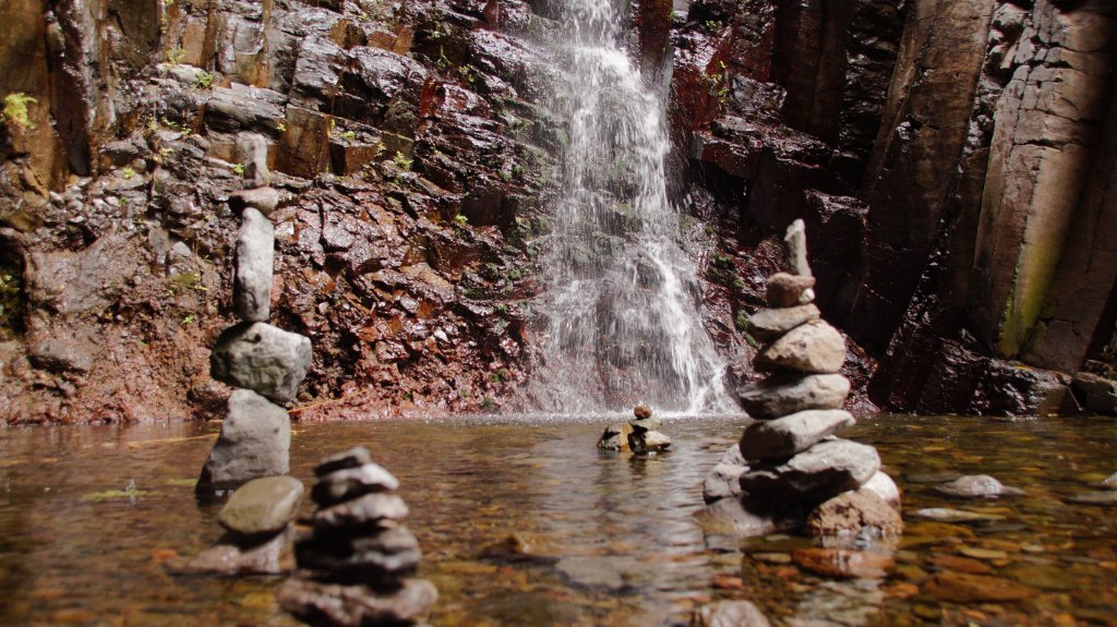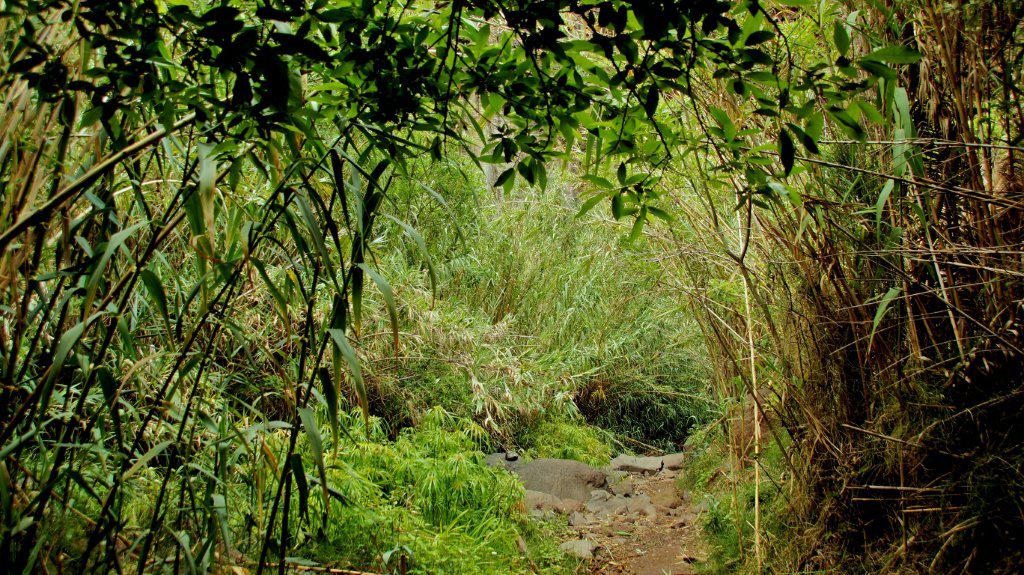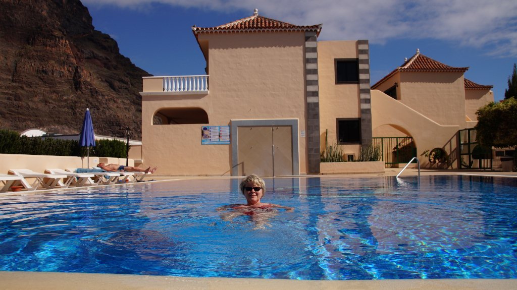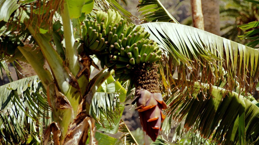 | Nachdem wir es am Morgen wieder ruhig angehen lassen starten wir gegen 11:00 Uhr in Richtung El Guro. Da Ines nach wie vor Blessuren vom Wandern hat versuchen wir auch heute die Anmarschstrecke nach El Guro per Anhalter zu bewältigen. Ebenso wie schon am Sonntag haben wir wieder gleich beim ersten Versuch Glück und nette Belgier nehmen uns mit hinauf nach El Guro. Dort führt uns der Weg die steilen Treppen hinauf. Nach dem großen Feuer im August 2012, wo hier viele Häuser abgebrannt sind, hat sich wieder viel getan. Trotzdem ist El Guro wie eh und je zwiespältig und man findet neben idyllischen Ecken auch so manche eher "rustikale" Stelle. Der Weg führt uns dann durch den Barranco immer weiter durch Bambus, Zyperngras und dichte Vegetation. Dieses Jahr ist auch mehr Wasser im Bachlauf. Dann erreichen wir den kleinen Wasserfall am Ende des Barrancos und nach einer kurzen Rast geht es auf dem gleichen Weg wieder zurück nach El Guro und weiter ins Valle Gran Rey. Den Rest des Nachmittages verbringen wir dann auf unserer Terrasse bzw. am Pool. | ||||