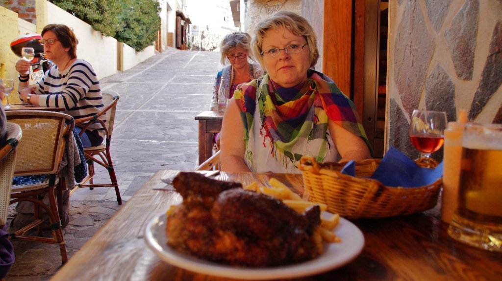 | Nach einem ausgiebigen Frühstück genießen wir auf unserer Terrasse die Morgenstimmung. Die Sonne lässt sich wegen der Zeitumstellung erst eine Stunde später sehen und braucht etwas ehe sie hinter dem Tequergenche hervorlugt. Dann brechen wir zu unserer heutigen Wanderung auf. Wir haben Glück, dass uns bereits beim ersten Versuch sofort nette Mietwagenfahrer mit hinauf nach Arure nehmen. Am Restaurant El Jape steigen wir in den Weg ein, welcher uns zuerst auf eine Hochebene oberhalb von Arure führt. Hier oben haben wir ein tolles Panorama und wir genießen die Ruhe und die Weite. Der Weg führt durch aufgegebene Terrassenfelder welche voller Blumen und Gräser sind. Nachdem der Weg zuerst sehr eben war führt er nun ein kurzes Stück recht steil hinunter zum Mirador El Palmarejo und dem von Cesar Manrique gestalteten Aussichtsrestaurant. Nach ein paar Fotos von der Aussichtsplattform hinunter ins Valle Gran Rey machen wir uns auf den weiteren Abstiegsweg. Wir queren die neue Straße und umgehen entlang der alten Fahrstraße den zweiten Tunnel. Auf vielen Serpentinen schlängelt sich der Weg hinunter nach Los Granados, einem Ortsteil im oberen VGR. Von hier aus geht es entlang der Straße nach unten. Dann biegen wir nach la Calera ab und schlendern weiter hinunter zur Playa bei Maria. Dann geht es zurück ins Quartier wo wir die Nachmittagssonne auf unserer Terrasse genießen und die Gelegenheit zu einem erfrischendem Bad im Pool nutzen. Am Abend geht es dann ins El Pescador wo wir die Spezialität des Hauses (...nein kein Fisch, wie man vermuten könnte) - Pollo Asado (Grillhähnchen) essen...es sind die Besten, die wir je gegessen haben. Eigentlich wollten wir in der Tambara-Bar noch einen finalen Sundowner nehmen aber dort macht man jetzt auf Restaurante und mag keine Gäste ohne Essenswunsch mehr. So machen wir es uns am Chaco del Conde bequem und erleben hier den Sonnenuntergang. | ||||