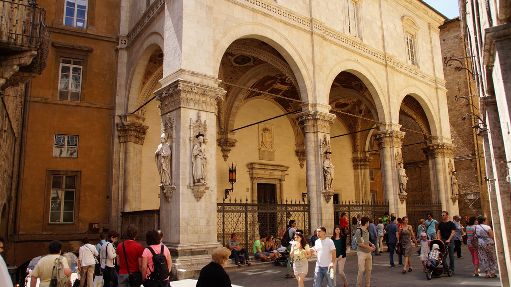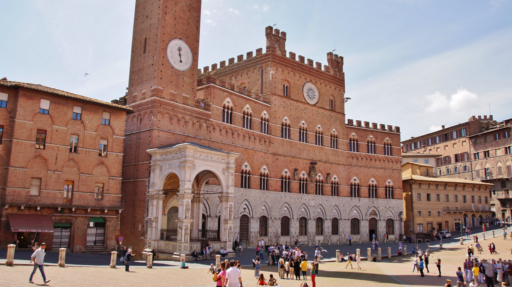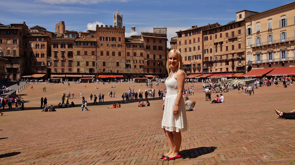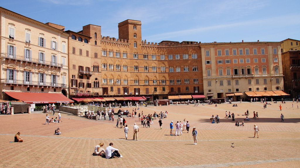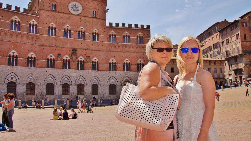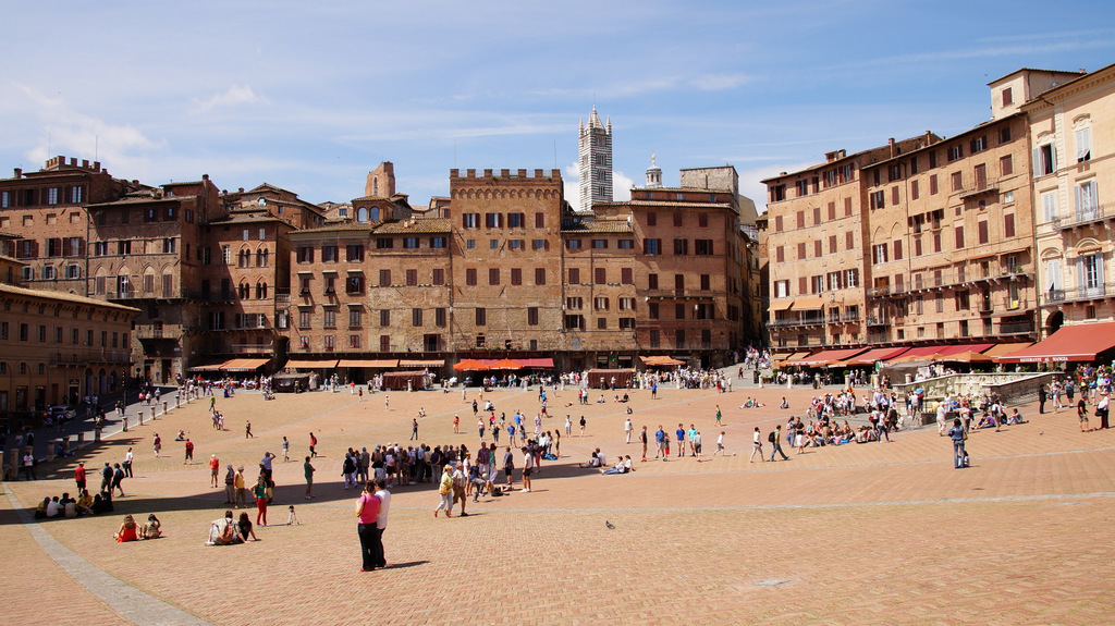 | Heute steht der Besuch von Siena auf unserem Programm. Auf unserer "Standardstrecke" fahren wir via San Gimignano und Poggibonsi zur Autostrada Firenze-Siena. Die Strecke wird derzeit streckenweise saniert, was auch sehr notwendig ist, da viele Schlaglöcher und Bodenwellen auf der Strecke zu finden sind. Ebenso sind in dieser Gegend der Toskana eine Vielzahl von "Autovelox" installiert, graue Blitzerkästen, welche von hinten blitzen. Hoffentlich erreicht uns nach unserer Rückkehr keine spezielle Post aus Italien. Nach einer reichlichen Stunde erreichen wir Siena, wo wir wie immer im Parkhaus Fontebranda parken. Über Rolltreppen erreichen wir in wenigen Minuten das Centro Storico. Nach ein paar Schritten stehen wir dann auf dem großen Platz inmitten von Siena - Il Campo. Dieser Platz ist einfach nur beeindruckend und wir setzen uns, wie viele andere Besucher, einfach mitten auf den Platz und genießen die Szenerie. Weiter führt der Weg durch die engen Gassen der Innenstadt, vorbei an einer Vielzahl von schicken Geschäften bis wir den Platz vor dem Dom erreichen. Das Portal ist sehr aufwändig und filigran und komplett mit Marmor verkleidet. Der Campanile ist mit schwarzen und weißen Marmor verziert. Nachdem wir den Anblick ausgiebig genossen haben gehen wir zum Parkhaus zurück. Auf der gleichen Strecke fahren wir retour, biegen dann aber noch nach Montaione ab, wo wir ein paar Einkäufe erledigen. Den letzten Teil des Nachmittages verbringen wir dann bei besten Sonnenwetter am Pool der Casa Vaiano. | |||