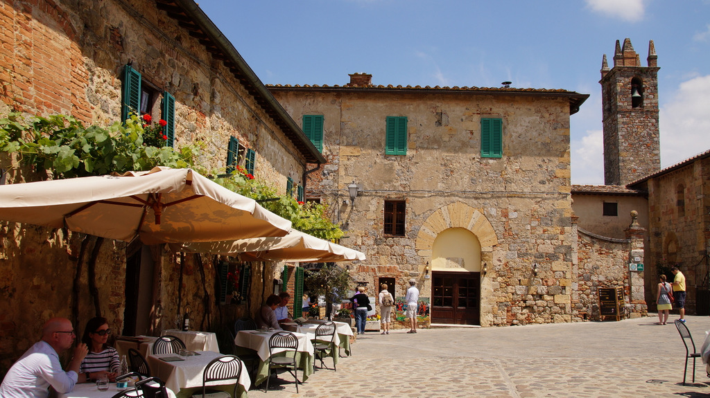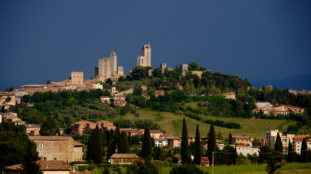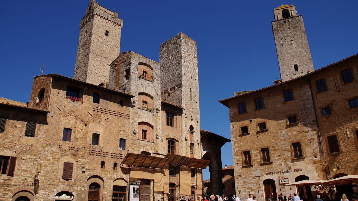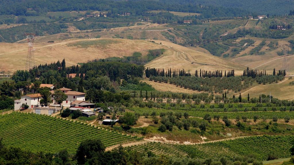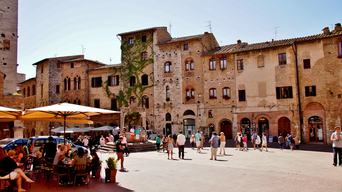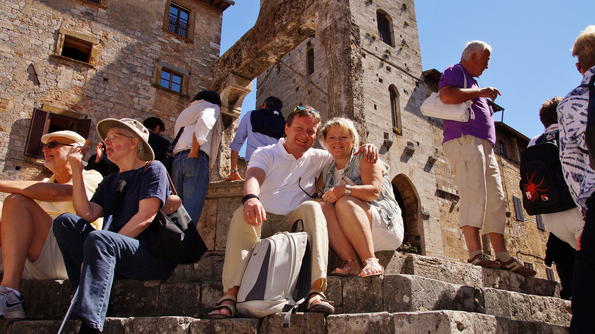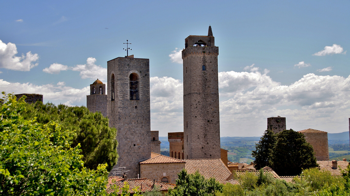 | Heute Morgen lacht die Sonne vom blauen Himmel. Somit zieht es uns zum Frühstück unweigerlich auf unsere Terrasse. Nach dem Frühstück starten wir gegen 09:00 Uhr in Richtung San Gimignano. Dahin haben wir es nicht allzu weit, so dass wir einen der Top-Hotspots der Toskana bereits nach ca. 20 Minuten erreichen. Zu dieser frühen Stunde ergattern wir auch gleich einen der wenigen Parkplätze und schlendern in den Ort. Der Ort, auch als Manhattan der Toskana bezeichnet, hat noch mehrere der alten Türme, welche man weithin sehen kann. Neben vielen alten Fassaden gibt es hier eine Vielzahl von touristischen Geschäften. Auch wenn hier viele Touristen zu Gange sind so gehört ein Besuch in dem kleinen Ort zum Pflichtprogramm eines jeden Toskanaaufenthalts. An der Piazza im Ortskern verkosten wir bei Dondoli noch ein leckeres Gelati (lt. Eigenwerbung mehrfacher Weltmeister der Eishersteller). Vom Punto Panoramico hat man einen weiten Blick über die hügelige Landschaft der Toskana. Nach dem Mittag geht es dann zurück in die Casa Vaiano, wo wir den Nachmittag bei wunderbaren Sonnenschein am Pool verbringen und einfach die Seele baumeln lassen. | |||