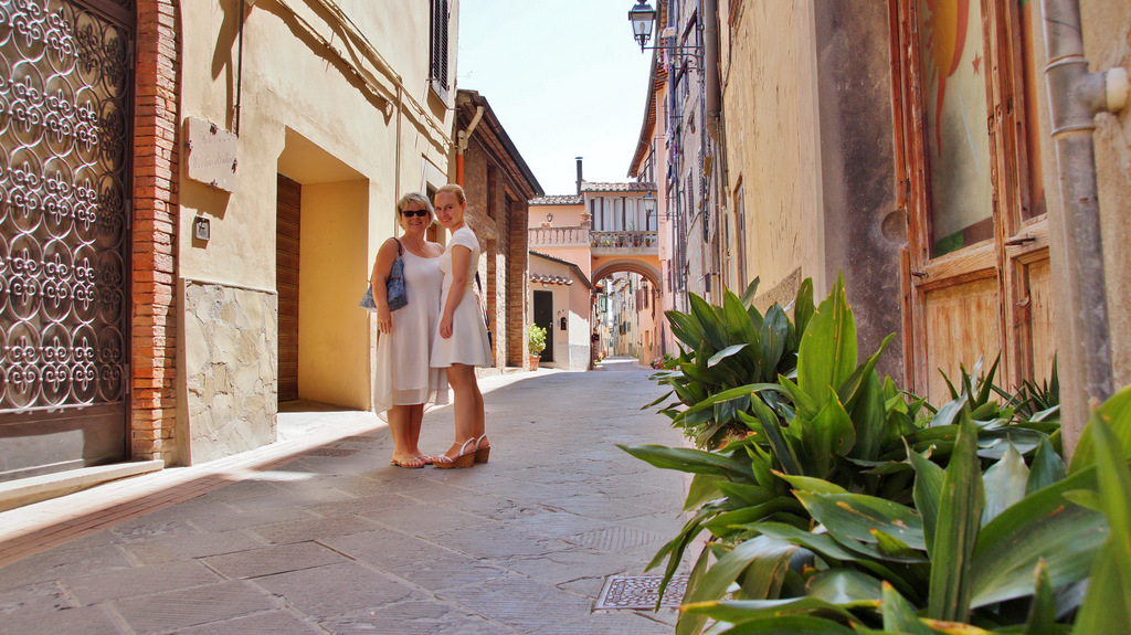 | Der heutige Tag beginnt für uns mit einem Bad im Pool. Anschließend gibt es Frühstück auf unserer Terrasse, von der aus wir einen tollen Blick hinüber nach Volterra haben. Gegen 09:30 Uhr fahren wir via San Gimignano und Poggibonsi nach Monteriggioni. Dieser kleine Ort, welchen wir immer bei unseren Aufenthalten in der Toskana besucht haben, ist wirklich eine Perle, da hier die alte Stadtmauer noch vollständig erhalten ist. Wir nutzen die Gelegenheit und steigen hinauf auf den alten Wall. Von hier oben bietet sich ein toller Blick auf den kleinen Ort und ein weiter Panoramablick auf die umliegende Hügellandschaft der Toskana. Nach einen Bummel durch Monteriggioni fahren wir über Colle Val d' Elsa nach Castel San Gimignano. Hier machen wir nur einen kurzen Stopp und schauen hinüber zum bekannten San Gimgignano mit seinen markanten Türmen. Kurze Zeit später erreichen wir Volterra. Unweite des Teatro Romano finden wir einen Parkplatz und gehen hinauf ins Centro Storico. Auch wenn der Ort recht touristisch ist so hat er doch sehr viel Sehenswertes zu bieten. Hier gibt es viele Souvenirläden wo neben Marmor vor allem Alabaster verkauft wird. Dann fahren wir kurz zurück ins Quartier und fahren kurze Zeit später weiter nach Montaione. Von hier aus geht es nach Castelfiorentino, wo wir im lokalen Coop unsere Vorräte für das Wochenende auffüllen. Im Licht der untergehenden Sonne essen wir zu Abend. Den Tag lassen wir mit einem kleinen Spaziergang durch das Areal der Casa Vaiano und eine finalem Tischtennismatch ausklingen. | |||