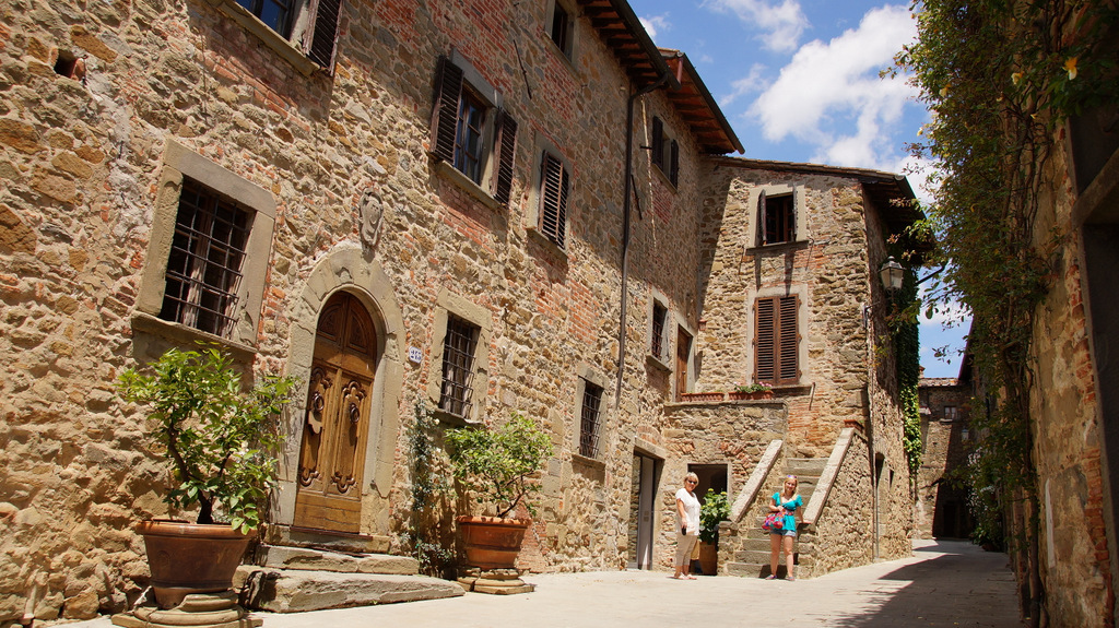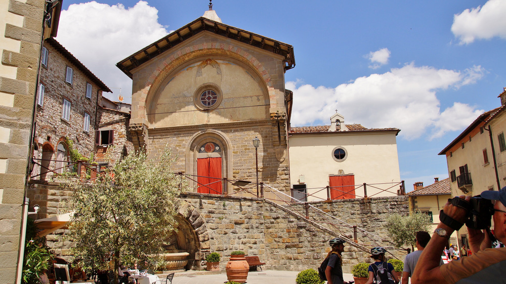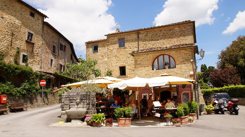 | Heute Morgen fahren wir zuerst nach San Gimignano, wo wir schnell noch ein paar Einkäufe erledigen. Dann geht es weiter nach Poggibonsi, wo im Scarpamondo ebenfalls die Kreditkarte strapaziert wird. Dann fahren wir weiter in den kleinen Ort Barberino Val d' Elsa. Hier finden wir einen kleinen, ruhigen Ort mit einem historischen Ortskern. Alles ist trotz der Historie in einem Top-Zustand und wir genießen mit ein paar wenigen weiteren Besuchern die Ruhe und die Stille vor der mittelalterlichen Kulisse. Über Tavernelle geht es dann nochmals ins Chianti-Gebiet. Hier gibt es viele kleine und enge Straßen welche sich durch die Weinberge schlängeln. Das ist Toskana pur und wir lassen die Landschaft auf uns wirken. Kurz vor Greve biegen wir dann in Richtung Radda ab. Bevor wir Radda besuchen machen wir noch einen Abstecher hinauf nach Volpaia, einen kleinen Ort auf einem Hügel, wo ein guter Chianti Classico angebaut wird. Wir besichtigen den kleinen Weinort und erstehen natürlich auch eine Kostprobe vom lokalen Chiantiwein. Nach wenigen Kilometern erreichen wir dann Radda. Auch hier schlendern wir bei besten Sonnenschein durch den kleinen Ort. Da wir zur Mittagszeit hier sind haben viele Geschäfte geschlossen und es ist recht ruhig im Ort. Via Castellina und Poggibonsi fahren wir dann zurück in unsere Agriturismi, wo wir den Rest des Nachmittages am Pool bei schönem Sonnenschein verbringen. | |||