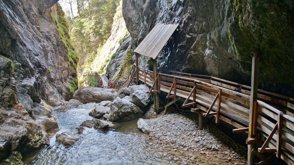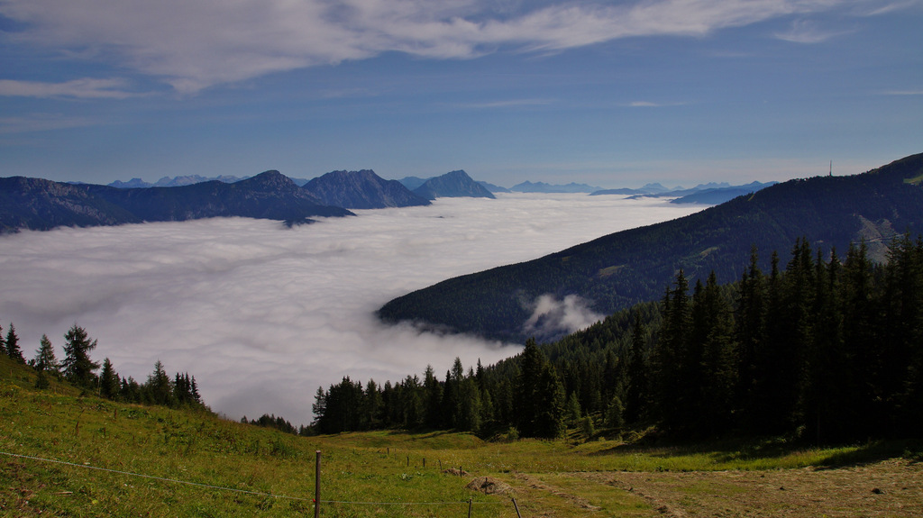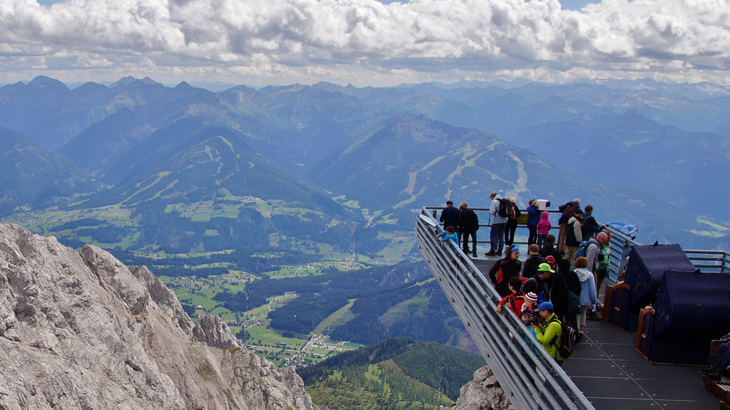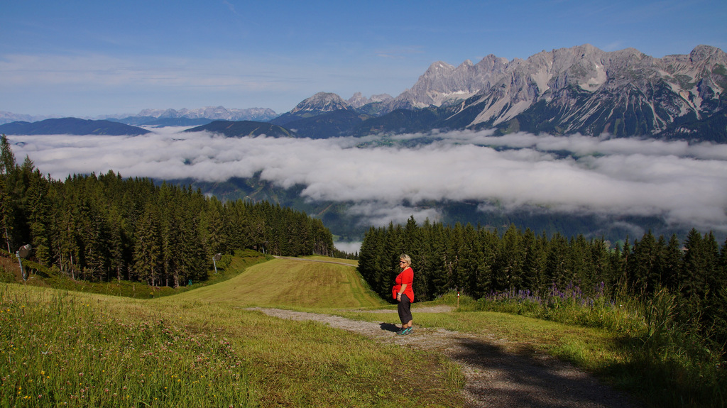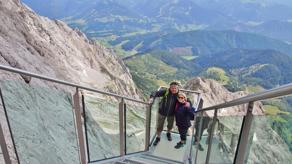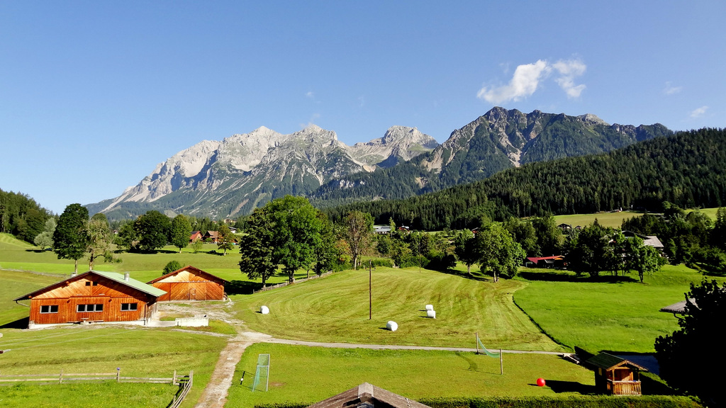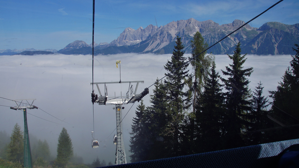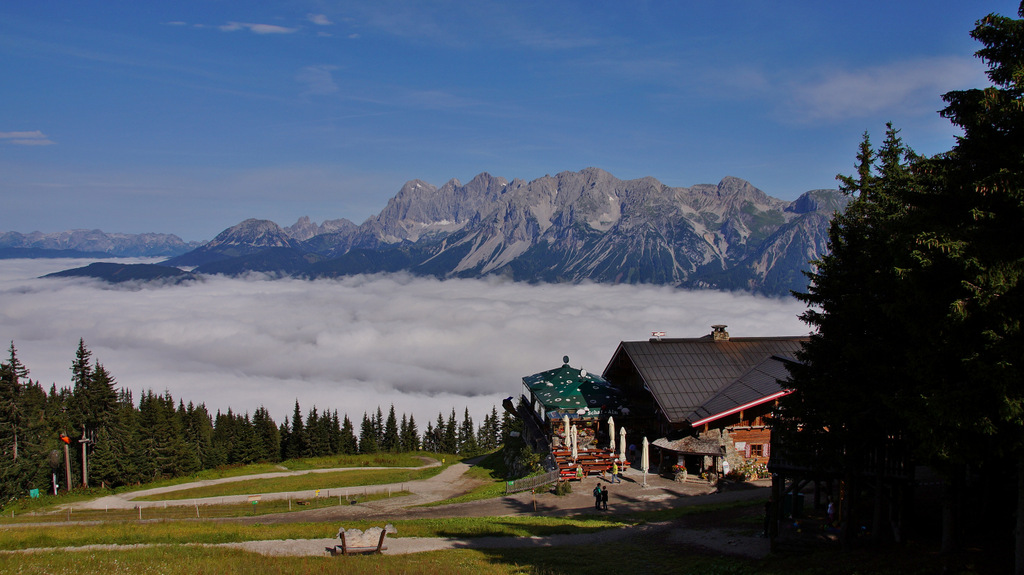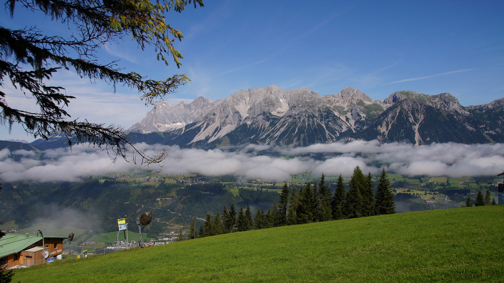 | Natürlich darf auch in diesem Sommer ein Wochenende in den Alpen nicht fehlen. Dieses Jahr geht es mal nicht ins Tuxertal sondern es steht mal wieder ein Besuch des Dachsteins auf unserem Programm. Wie bereits 2011 und 2012 finden wir unser Quartier am Fuße des Dachsteins, in Ramsau, wo wir im Kielhuberhof, mit direkten Blick auf die Planai bzw. den Dachstein logieren. Bei schönsten Wetter nutzen wir unsere Zeit für Wanderungen auf den Hauser Kaibling, von der Urspungalm hinauf zu den Giglachseen und für eine Tour durch die Wörschachklamm. Letzteres verbinden wir mit einer Gondelfahrt hinauf zur Riesneralm. Natürlich darf auch ein Abstecher hinauf auf den Dachsteingletscher nicht fehlen. Im letzten Jahr wurde nicht nur die Seilbahn modernisiert sondern auch eine neue "Brücke" an der Dachsteinsüdwand installiert, von der aus man einen tollen Tiefblick hinunter ins Tal und entlang der mächtigen Südflanke des Dachsteinmassives hat. Vor der Heimfahrt am Sonntag geht es dann noch hinauf auf die Planai, wo wir von oben auf die Wolken im Ennstal schauen können und dabei das tolle Panorama hinüber zum Dachstein und weiter am Horizont zur Bischofsmütze bei Filzmoos erleben können. Dieses Mal gibt es kein Tagebuch sondern nur ein paar Bilder von unseren Wanderungen. | ||||