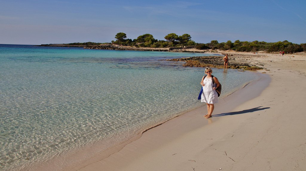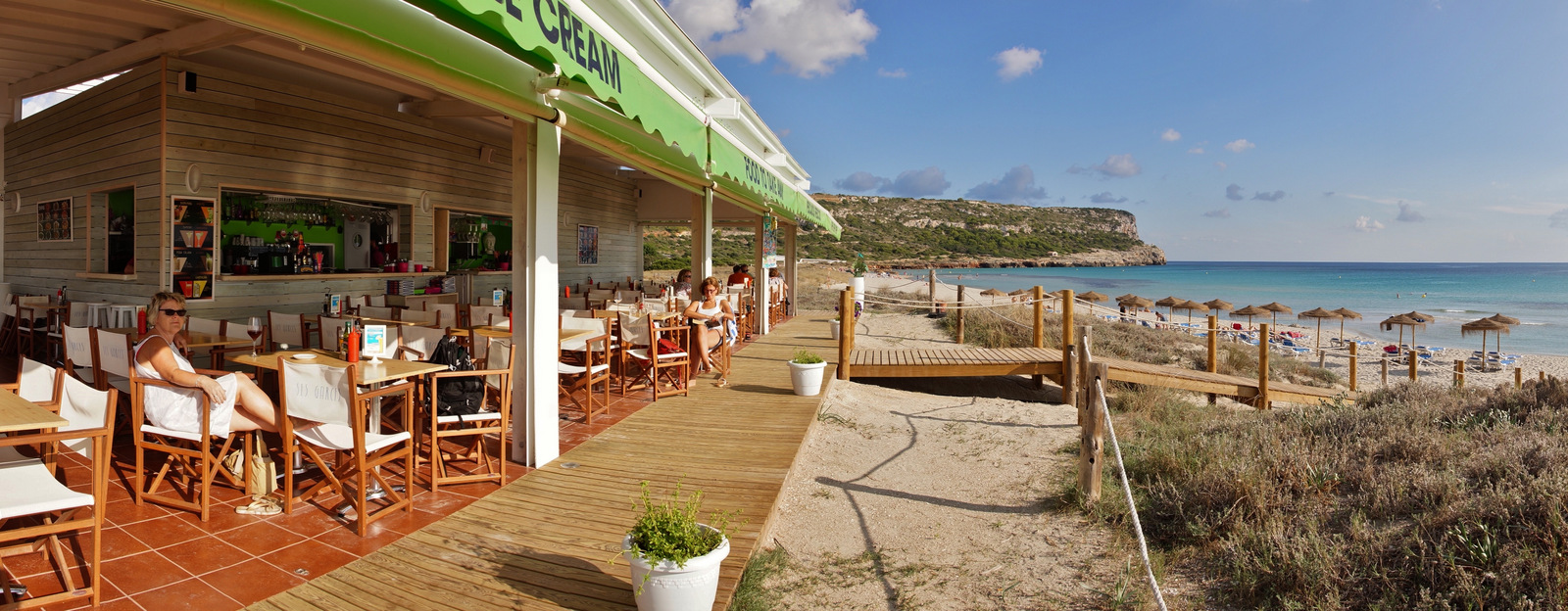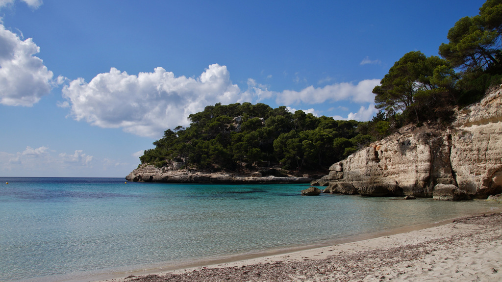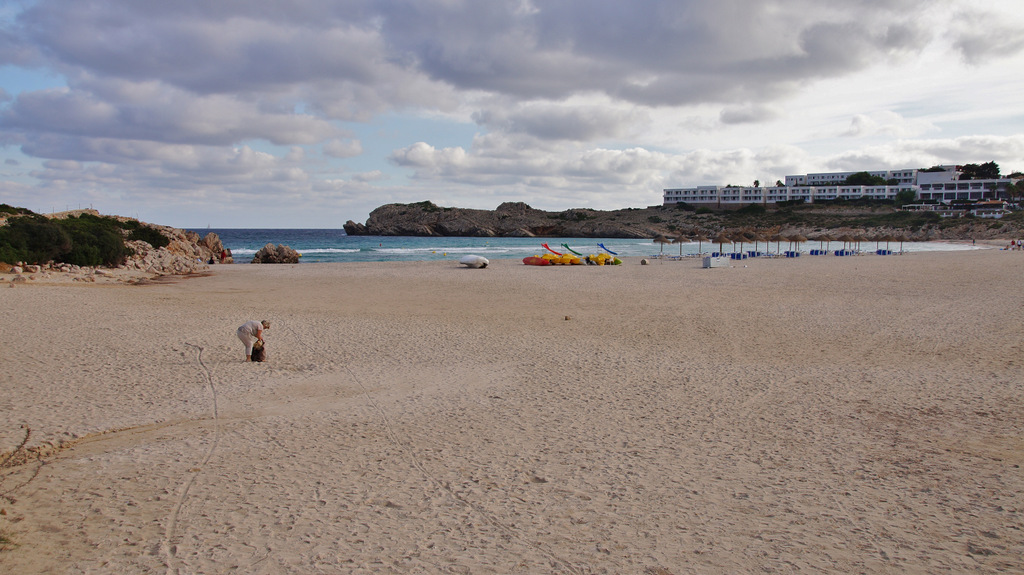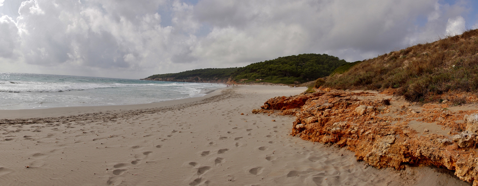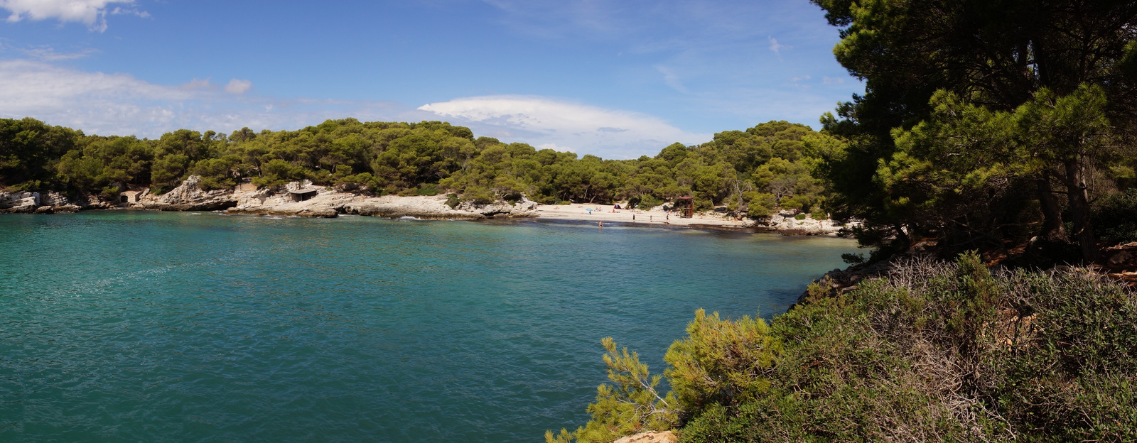 | Heute fahren wir als erste Station nach Hort San Patrici. Dieser kleine Weiler liegt unweit von Ferreries und hier ist auf einem alten Landgut allerlei lokales zu entdecken. Neben einer Käseherstellung und einer Bodega ist hier auch ein kleines Hotel Rural zu finden, welches sehr gut ausschaut. Nach einer Runde durch das Areal fahren wir die wenigen Meter weiter nach Ferreries, wo wir an einem Schuh-Outlet Station machen. Mit ein Paar neuen Schuhen im Gepäck geht es dann nach Cala Galdana wo wir das Auto parken. Vom Parkplatz oberhalb der halbrunden Bucht von Cala Galdana spazieren wir auf dem Cami de Cavalls durch den Pinienwald in Richtung Cala Mitjana. Kurz vor der Bucht passieren wir einen ehemaligen Sandsteinbruch und treffen dann gleich auf die kleine Nebenbucht der Cala Mitjana, die Cala Mitjaneta. Schon von einiger Entfernung sehen wir das türkisblaue Wasser durch die Pinien schimmern. Während Ines unten an der Cala Mitjana wartet gehe ich noch etwas weiter auf dem Küstenweg hinauf zu einem kleinen Mirador, von wo aus man einen tollen Blick auf die Buchten hat. Der Besucherandrang ist recht überschaubar und so bleiben wir eine Weile hier am Strand. Dann geht es auf gleichem Weg wieder zurück zum Auto welches uns wieder nach Son Bou bringt. Hier parken wir am zentralen Parkplatz am Strand und nutzen den sonnigen Nachmittag zum Baden an unserem "Hausstrand". Schon wenige hundert Meter nach dem Strandzugang ist man am ewigen langen, schon fast karibisch anmutenden, Sandstrand fast alleine und wir genießen die Ruhe und die Sonne. Zwischendurch ziehen kurz ein paar Wolken auf und am Horizont bildet sich ein Gewitter, welches dann aber kurze Zeit später genauso schnell wieder verschwunden ist. Am späten Nachmittag genehmigen wir uns noch einen Sundowner in der Beachbar Ses Garces, welche in erster Strandreihe und mit Blick nach Westen liegt. | ||||