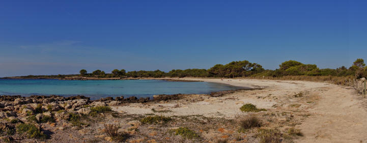 | Heute Morgen ist blauer Himmel ohne eine einzige Wolke - also bestes Badewetter. Nach dem Frühstück starten wir zuerst in Richtung Ciutadella wo wir von der Via Ronda zu den Stränden der Südwestküste abbiegen. Zuerst biegen wir zu den Platges de Son Saura (...nicht zu verwechseln mit unserem gestrigen Ziel, der Platja Arenal de Son Saura) ab. Der Weg führt über enge Straßen vorbei an scheinbar endlosen Trockensteinmauern, wie wir sie auch von Mallorca her kennen. Dann erreichen wir den kleinen Parkplatz und gehen die wenigen Meter zur Doppelbucht Son Saura. Hier finden wir glockenklares Wasser und fast schon Karibikfeeling vor. Da wir aber noch andere Buchten ansteuern wollen fahren wir weiter durch den Pinienwald und erreichen dann den Parkplatz der Cala Marcarella. Nach einem anschließenden Fußmarsch stehen wir kurze Zeit später an der Bucht, welche eingerahmt von goldgelben Sandsteinfelsen mit türkisfarbenen Wasser vor uns liegt. Hier ankern schon einige Yachten und es wirkt schon phantastisch, wenn man in diesem klaren Wasser die Schatten der Boote auf dem sandigen Grund erkennen kann. Über einen Treppenweg geht es dann aber weiter zur Nachbarbucht, der etwas kleineren Cala Macarelleta. Vom Weg aus bieten sich immer wieder herrliche Fotomotive, so dass wir für die kurze Strecke schon ein paar extra Minuten brauchen. Dann erreichen wir die Cala Macarelleta und verbringen ein paar Stunden an dieser Traumbucht. Auch wenn man hier nicht ganz alleine ist so genießen wir trotzdem das tolle Szenario. Allerdings müssen wir beim Baden etwas aufpassen, da zur Zeit ein paar Feuerquallen im Wasser zu finden sind, mit welchen man nicht unbedingt zusammentreffen sollte. Im Nachmittag brechen wir dann wieder auf und fahren via Ciutadella noch auf einen Abstecher zur Cala Galdana. Diese Bucht liegt landschaftlich äußerst reizvoll aber leider ist hier der touristische Hotspot der Insel und einige unschöne Hotelbauten verunzieren die herrliche Bucht. Nach ein paar Fotos geht es dann zurück nach Son Bou. | ||||