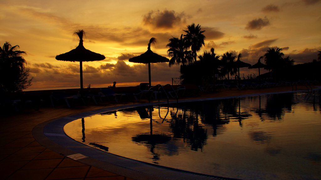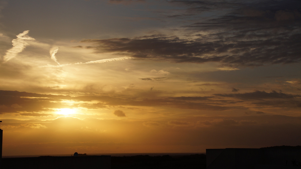 | Nachdem wir bereits im Jahr 2000 auf der kleinen Schwesterinsel von Mallorca waren zieht es uns nun wieder hierher zurück. Wir starten gegen 06:45 Uhr zum Nürnberger Flughafen wo wir auch pünktlich eintreffen. Mit der TuiFly fliegen wir nach Mahón, wo wir gegen 13:00 Uhr landen. Da wir dieses Mal pauschal unterwegs sind bringt uns der Touribus nach Son Bou an die Südküste. Hier haben wir uns in einer kleinen Appartementanlage (Mar Blau) eingemietet. Leider zeigt sich das Wetter sehr wechselhaft und pünktlich mit unserem Eintreffen kommen ein paar Tropfen vom Himmel. Glücklicherweise ist es sehr warm, so dass wir trotzdem das milde Klima genießen. Nach kurzem freundlichen CheckIn bummeln wir ins Zentrum von Son Bou. Nach einem ersten kurzen Abstecher an den langen Sandstrand erledigen wir dann noch ein paar Einkäufe und essen im "Alessandros" recht gut zu Abend. Zurück im Appartement springen wir noch schnell in den Pool und genießen dann bei einem Glas Rotwein den Sonnenuntergang auf unserer Terrasse. | ||||