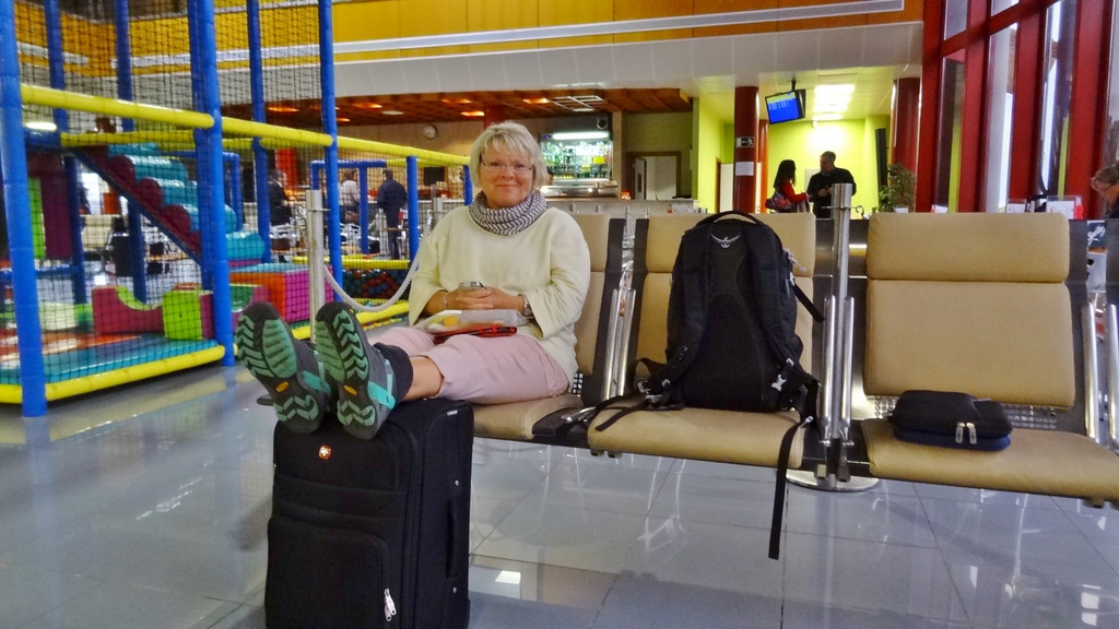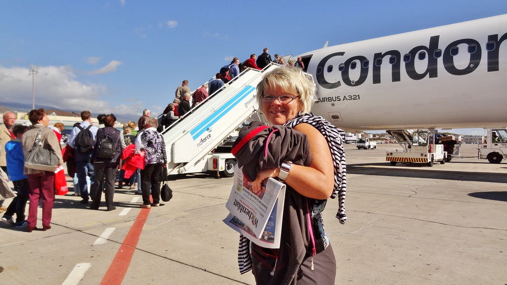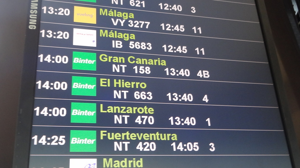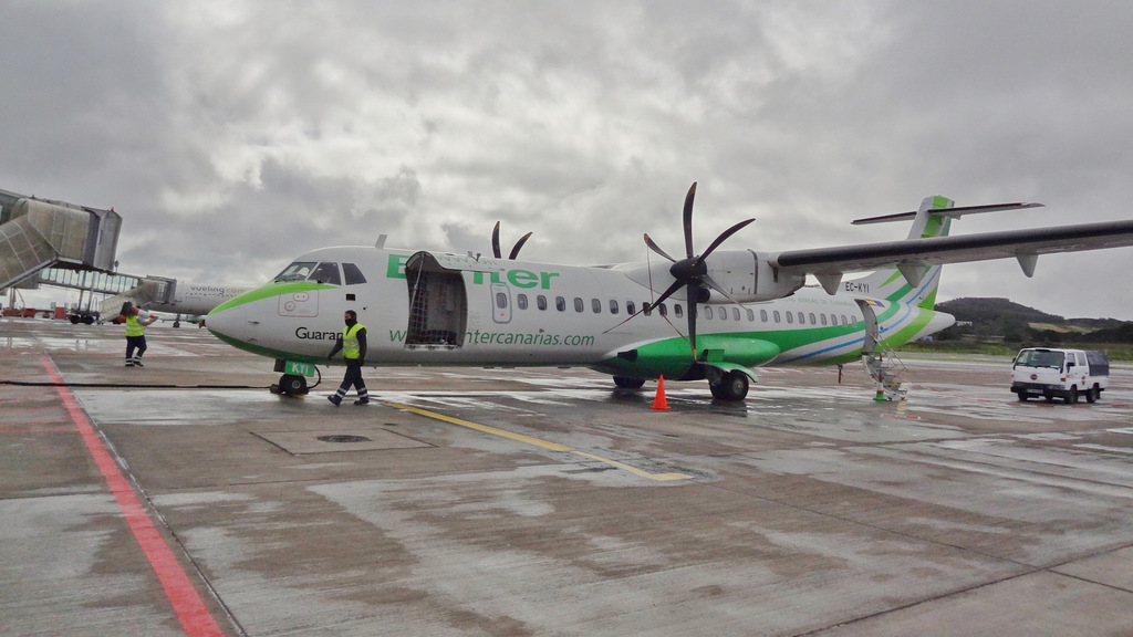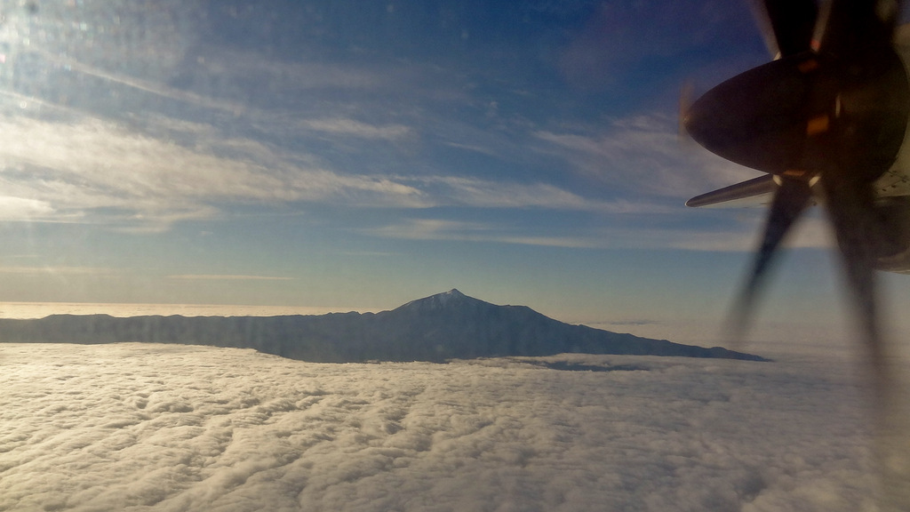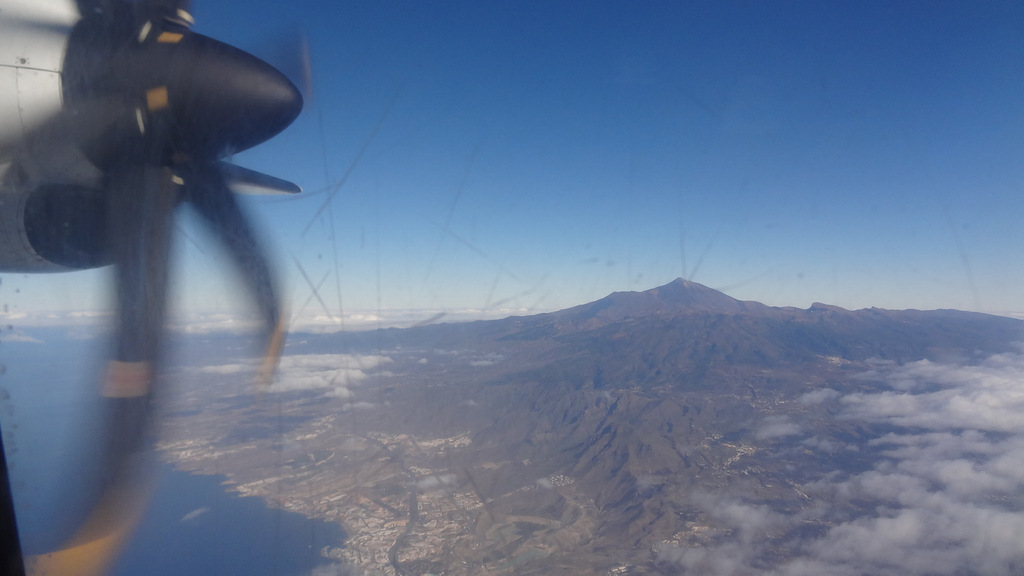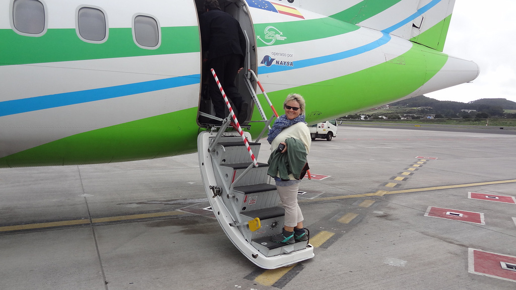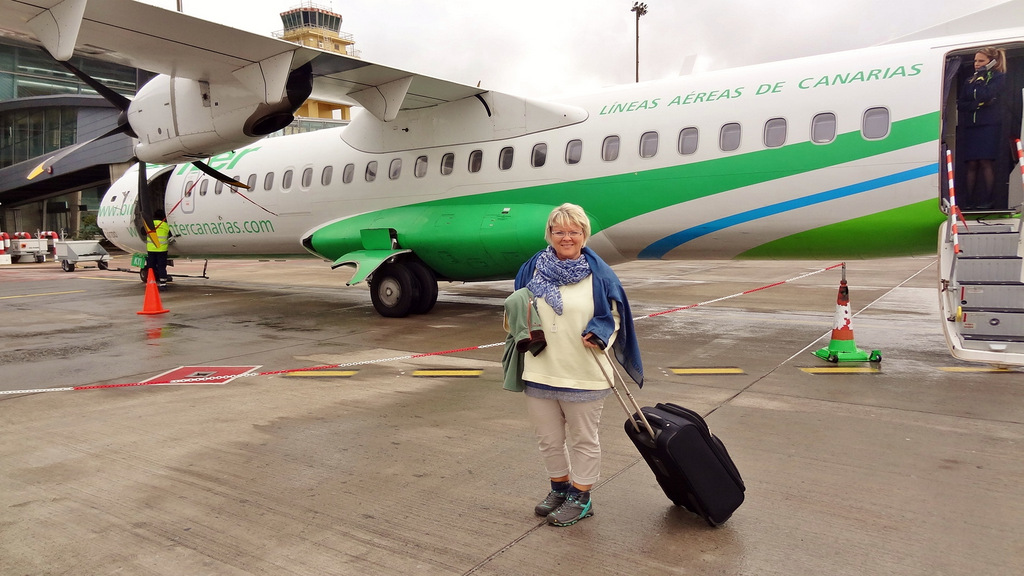 | Etwas eher als in den letzten Tagen klingelt heute der Wecker, welchen wir bisher nur ausnahmsweise mal benutzt haben. Schnell sind die Koffer gepackt und ein letzter Cafe con Leche getrunken und ab geht es zur Bushaltestelle, welche sich neuerdings direkt vor unserem Apartment befindet - wie praktisch. Mit dem Flughafenbus der Linie 6 fahren wir dann zur größten Cafeteria der Welt, wie der Miniairport von La Gomera genannt wird. Der Aeropuerto ist richtig schick und angenehm doch es gibt meist nur 4 Flugbewegungen am Tag. Zwei Flieger aus Tenerife Norte landen und starten wieder. Dann steigen wir in die kleine Propellermaschine Typ ATR 72 der Bintercanarias und starten zur großen Nachbarinsel. Über den Süden und Osten von Teneriffa geht der kurze, 30-minütige Fug und dann steht auch schon die Landung auf dem Nordflughafen an. Hier oben in Los Rodeos ist es deutlich wolkiger und auch frischer. Im Moment, wo diese Zeilen entstehen, warten wir auf unseren Weiterflug nach Valverde, wo wir, wenn alles pünktlich läuft, gegen 14:40 Uhr landen. Mit dem Mietwagen geht es dann zu unserer nächsten Unterkunft, der Casa de mi Abuela Maria. Wir sind schon sehr gespannt auf unseren ersten Aufenthalt auf der kleinsten aller Kanareninseln und hoffen, dass auch das Wetter auf unserer Seite ist. |