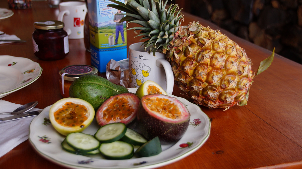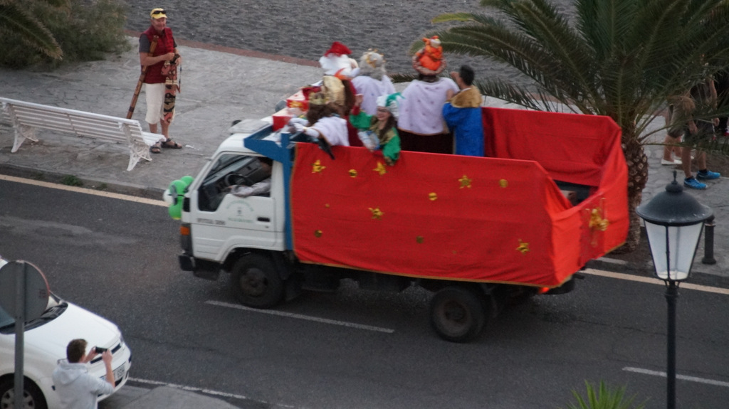 | Heute Morgen sieht das Wetter schon deutlich besser aus als gestern. Der Wind hat sich gelegt und bei angenehmen Sonnenwetter genießen wir auf unserer Terrasse das Frühstück. Neben dem obligatorischen Jamon Serrano lassen wir uns vor allem die saisonalen Früchte wie Maracujas und Papayas schmecken. Dann starten wir zu unserer ersten Wanderung. Da der Busfahrplan auf La Gomera nach wie vor sehr übersichtlich ist, geht es per Anhalter hinauf nach Arure. Hier beginnen wir am Restaurant "El Jape" den Abstieg zurück ins VGR. Dazu wählen wir heute nicht die Standardroute über die Hochebene La Mérica sondern wie schon im letzten März die Route entlang des alten Camino Real, vorbei am Mirador Salmorejo von Cesar Manrique über die alte Straße bis nach Los Granados. Das letzte Stück geht es dann entlang der Straße bis wir nach Las Orijamas abbiegen. Über die Gassen von La Calera laufen wir hinunter nach La Playa und dann zurück in unser Quartier in La Puntilla. Den Nachmittag genießen wir dann bei Windstille und bestem Sonnenwetter auf unserer Aussichtsterrasse. Am Abend ziehen dann noch lautstark die Heiligen drei Könige durch Tal, welche den Kindern, anders als in Deutschland, in der kommenden Nacht die Geschenke bringen. |