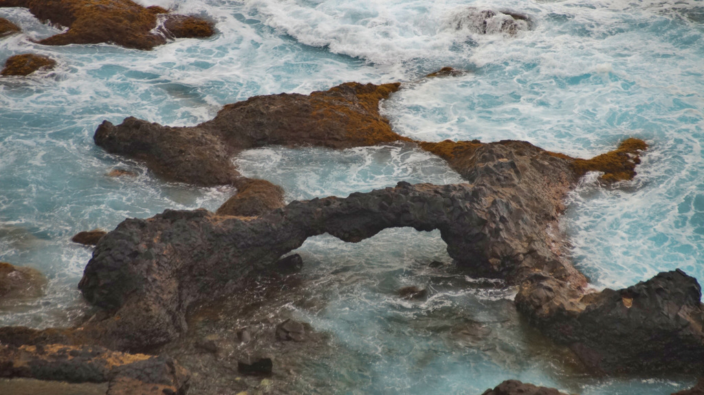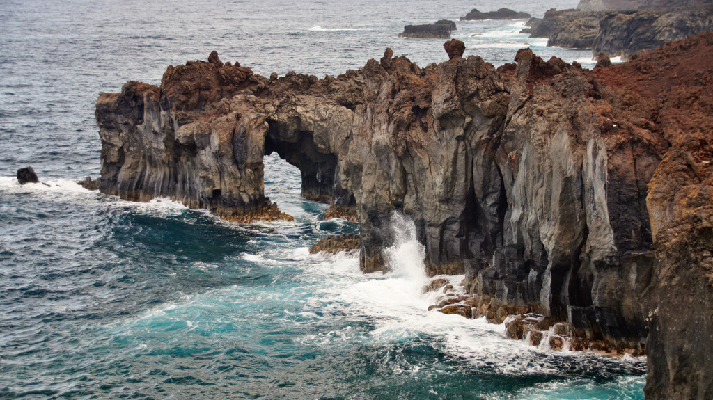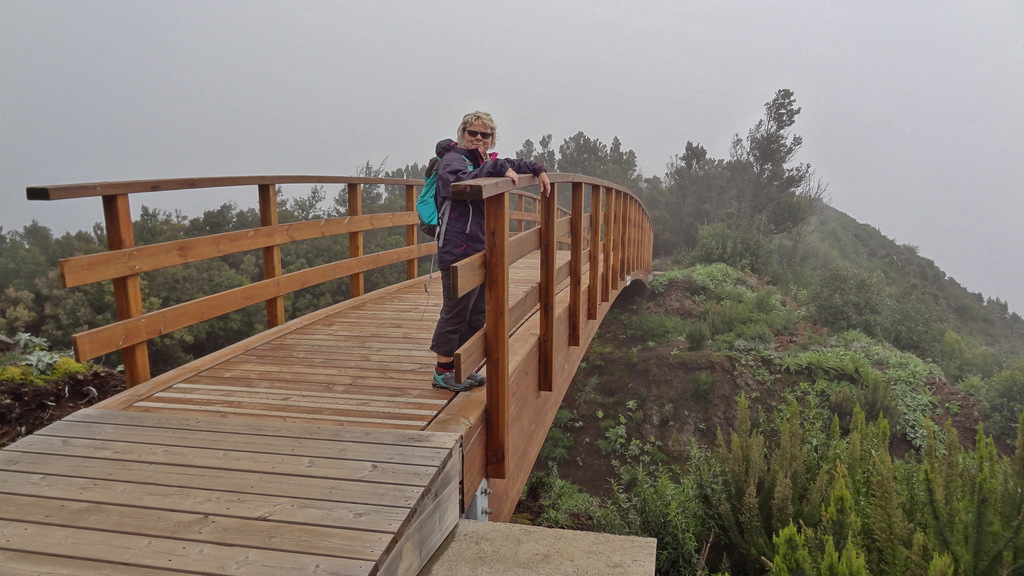| Auch heute Morgen ist das Wetter nicht so, wie wir es uns erhofft haben. Bei kühlen 14°C gibt es Frühstück und es ziehen sogar ein paar Tropfen Regen durchs Golfotal. Trotzdem fahren wir nach einem kleinen Schwenk nach Frontera auf der "unteren" Straße nach Pozo de la Salud und zweigen in dem folgenden Lavagebiet hinter den Playas Areanas Blancas in Richtung Küste ab. Wir wandern ein kurzes Stück durch pechschwarze Lava, was uns sehr an Lanzarote erinnert. Dann erreichen wir die wilde Küste und vor uns liegt der größte Lavabogen der Insel - der Arco de La Tosca. Überall brausen mächtigen Wellen herein und hier merkt man schon, dass man nicht am Mittelmeer ist. Dann geht es zurück zum Auto und wir fahren wieder die tolle Serpentinenstraße hinauf zur Hochebene La Dehesa. Heute lassen wir die kleine Ermita de los Reyes links liegen und fahren gleich die Forststraße weiter hinauf zum Raya de la Llania bis in 1.350 Meter Höhe. Hier oben beträgt die Temperatur dann noch 7°C und wir stehen mitten in den Wolken. Es regnet zwar nicht wirklich aber die uns umhüllende Passatwolke ist derart feucht, dass wir die Regenjacken überziehen und auch die Rücksäcke abdecken. Hier unternehmen wir eine Rundwanderung durch den Lorbeerwald, welcher uns sehr an las Creces auf der Nachbarinsel La Gomera erinnert. Hier ist das Areal vielleicht noch etwas urwüchsiger. Dann erreichen wir eine gefasste Quelle, die Fuente El Lomo. Der Weg geht weiter zur Höhenstraße und unser Pfad führt eigentlich weiter über den Bailadero de Brujas (Hexentanzplatz) und weiter zum Mirador de Golfo, wo wir am Sonntag schon waren. da auch heute keine Sicht nach unten ins Tal zu erwarten ist, kürzen wir das letzte Stück ab und gehen zum Raya de la Llania zurück. Dann fahren wir wieder zum Tagesausklang in den Inselsüden zur Cala de Tacorón, wo wir zwar auch keine richtige Sonne haben, dafür aber angenehme Temperaturen um die 20°C. Den Rückweg nehmen wir heute mal über die Meseta de Nisdafe und Valverde, wo wir in der Fabrica de Quesadilla (Käsekuchenfabrik) noch einmal schnelle anhalten müssen. Durch den Golfotal-Tunnel geht es dann zurück ins Tal. Bevor wir zurück ins Apartment fahren, um unsere Koffer zu packen, machen wir noch einen Abstecher zur Cala Maceta. Morgen klingelt schon recht früh der Wecker, da wir morgen früh mit der Morgenmaschine wieder hinüber nach Teneriffa fliegen, wo der letzte Abschnitt unseres Urlaubs beginnt. Wenn wir dann hoffentlich wieder online sind, kann ich die Berichte und Bilder unseres Aufenthaltes hier auf El Hierro dann hochladen. |