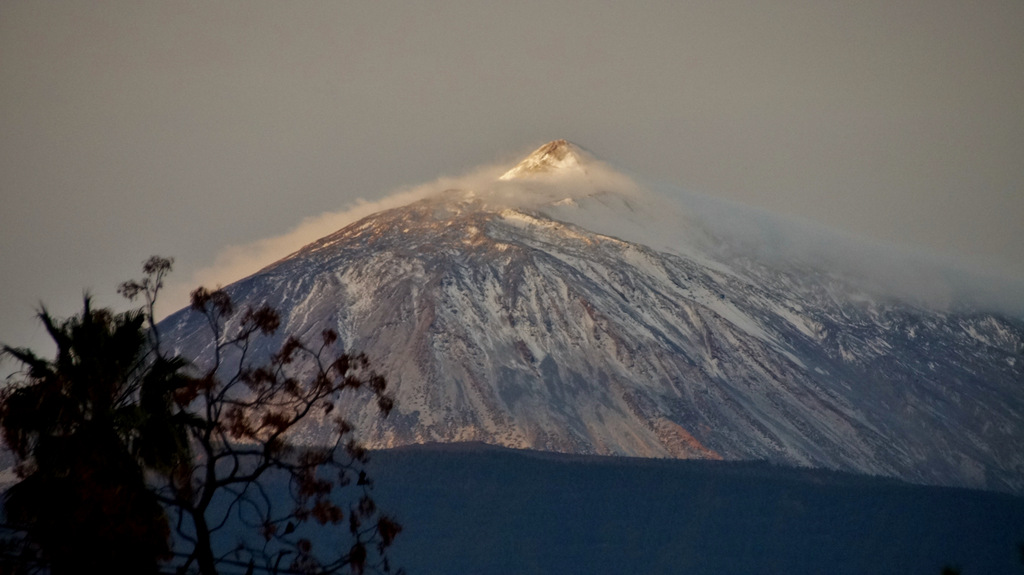 | Heute Morgen ist das Wetter in La Matanza schon sehr wechselhaft. Auch in der Nacht hat es teilweise sehr ergiebig geregnet. Am Morgen haben wir zur Meerseite hin blauen Himmel und auch in der Inselmitte ist der Himmel fast wolkenlos. So sehen wir den Teidegipfel mit leicht purpurroter Färbung vom Sonnenaufgang vor uns liegen. Das Frühstück gibt es heute sicherheitshalber indoor, da über uns bereits erste dunkle Wolken treiben. Dann fahren wir auf der Teideauffahrt über La Orotava hinauf in die Cañadas. Erstmals sehen wir den Teide während der Auffahrt ständig vor uns. In den letzten Tagen war er immer von Wolken verhüllt. Hinter El Portillo fahren wir die Straße durch die Cañadas und genießen den ständigen Blick auf den Gipfel des Teide (3.718m). Durch die Uncanca-Ebene geht die weitere Fahrt bis Boca Tauce, wo wir in Richtung Chio abbiegen. Diese Strecke sind wir gestern in entgegengesetzter Richtung gefahren. Doch, anders als gestern, haben wir heute keinen Nebel, sondern der blaue Himmel strahlt über uns. Bei der Abfahrt nach Chio sehen wir auch La Palma und vor allem das nahe gelegene La Gomera vor uns liegen. So detailliert haben wir die Nachbarinseln selten gesehen. Von Chio aus fahren wir in Richtung Süden und biegen in Las Chafiras von der Autobahn in Richtung Los Abrigos ab. Nachdem wir den Ort passiert haben, sind es nur noch wenige Kilometer bis zur Playa de Tejita. Heute ist endlich mal das Wetter so, dass es badetauglich ist. Auch wenn zwischendurch immer wieder einmal Wolken herüber ziehen, so verbringen wir doch den Nachmittag bei meist Sonnenschein an der Playa de Tejita. Über die Südautobahn via Santa Cruz fahren wir dann wieder hinauf in den Norden. An der Südostküste liegt die große Nachbarinsel Gran Canaria sehr deutlich vor uns. Nach einem kurzen Abstecher in den Mercadona in Tacoronte, erreichen wir dann unser Quartier in La Matanza. Nach dem obligatorischen Glas Rotwein zur Abendstunde lassen wir uns dann das Abendessen auf unserem Balkon schmecken. Neben einem ausgesprochen leckeren Entrecoté gibt es noch Mejillon (Miesmuscheln). Im roten Licht der Sonne zeichnet sich La Palma recht deutlich am Horizont ab. So haben wir heute fast alle kanarischen Insel gesehen. Neben Gran Canaria zeigte sich vor allem La Gomera und La Palma vor uns. An der Südwestküste konnten wir am Horizont selbst El Hierro erkennen. |