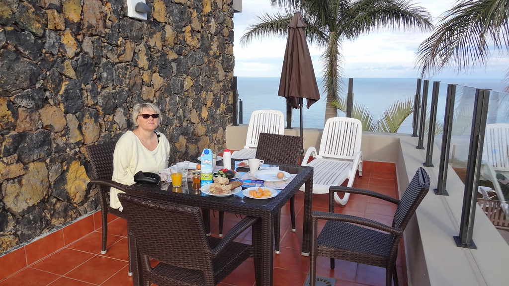 | Nach dem ersten Terrassenfrühstück wechseln wir zuerst einmal planmäßig unser Zimmer. Nachdem das erledigt ist schlendern wir nach Vueltas. Nach ein paar Lebensmitteleinkäufen lassen wir es uns dann auf der Terrasse gutgehen. Am späteren Nachmittag führt uns dann der Weg nach La Playa wo wir dann in aller Ruhe den ersten Sonnenuntergang der Saison erleben. |