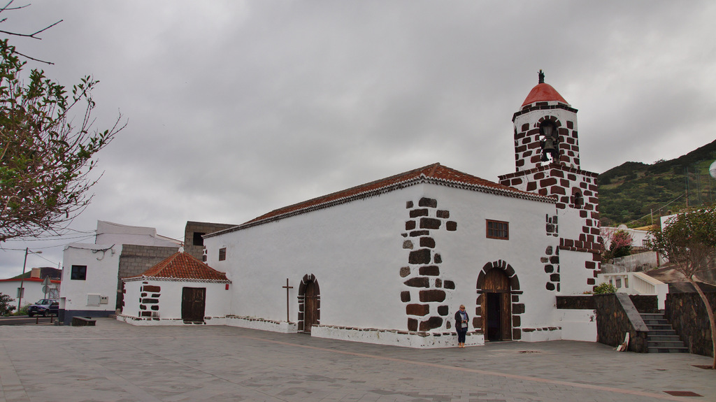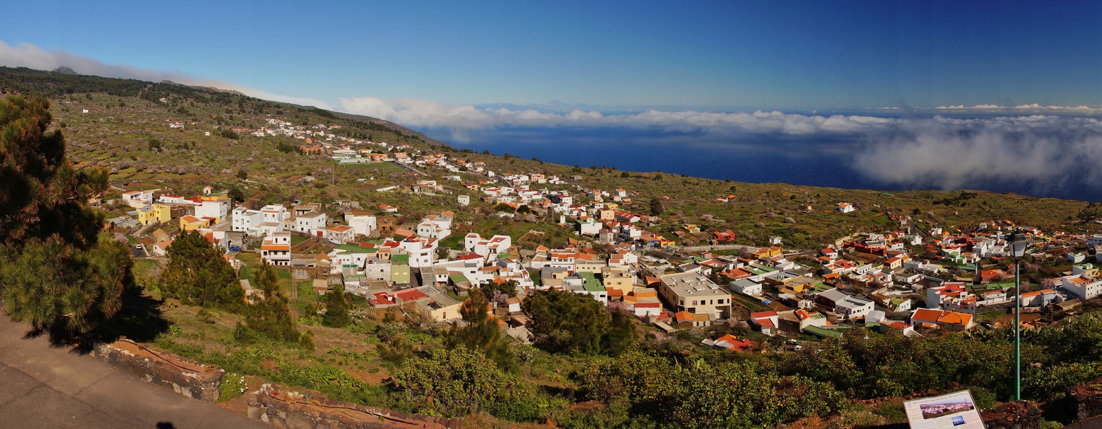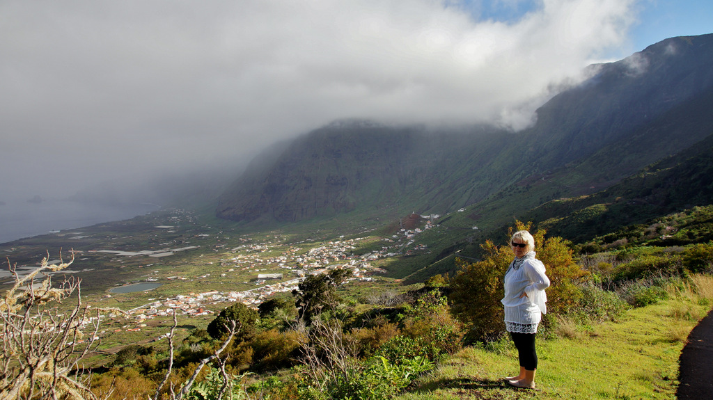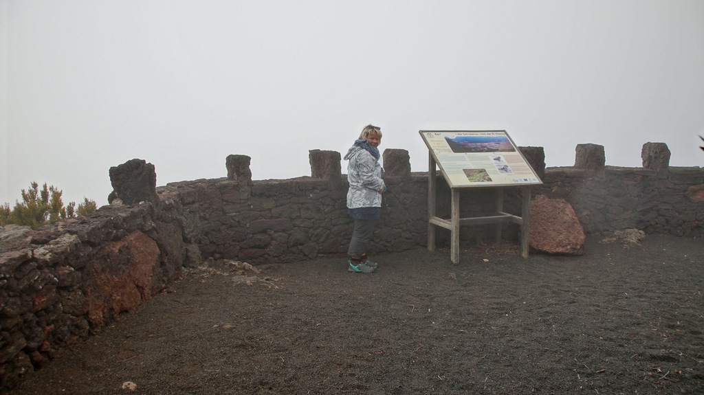 | Auch heute Morgen prägen die Wolken das Wetter im Golfotal. Von blauen Himmel oder Sonne ist leider nichts zu sehen. Nach dem Frühstück, was wir trotzdem bei 15°C outdoor auf unserer Terrasse stattfinden lassen, fahren wir über die Tunnelstraße nach Valverde. Unterwegs wird die Fahrt immer wieder durch regen begleitet. Als wir in Valverde, der Inselhauptstadt ankommen, hat sich der Regen glücklicherweise erst einmal verzogen. Auch, wenn Valverde Hauptstadt ist, so ist es eher ein kleines Dorf. Trotzdem ist im centro urbano einiges zu sehen. Markanter Mittelpunkt ist die Iglesia Nuestra Señora de la Concepción. Diese alte Pfarrkirche aus dem 18. Jahrhundert ist der Mittelpunkt der Minicapitale. Einige schicke alte Bürgerhäuser und das markante Gebäude des Ayuntamiento runden das Centro von Valverde ab. Da es inzwischen wieder regnet gehen wir zurück zum Auto und fahren in Richtung Süden, in der Hoffung auf besseres Wetter. Auf den Weg dahin machen wir einen Abstecher nach Isora. Hier, in 900 Meter Höhe hatten wir ursprünglich ein Quartier gebucht. Als wir auf das Autothermometer schauen und dort 8°C lesen können sind wir froh, dass wir umgebucht haben. Wenige Meter hinter dem Ort Isora befindet sich der gleichnamige Mirador de Isora. Auch von hier hat man einen atemberaubenden Tiefblick nach Las Playas vom Roque Bonanza bis hin zum Parador. Über kleine Nebenstraßen erreichen wir wieder die Hauptstraße nach La Restinga. Dort angekommen ist es leider auch nicht sonnig aber deutlich wärmer. Bei 19°C drehen wir eine Runde durch den Ort und entlang der Marina. Da es inzwischen wenigstens etwas auflockert fahren wir, wie bereits an den Vortagen, zur nebenan liegenden Cala de Tacorón. Hier verbringen wir bei angenehmen Temperaturen und ab und zu etwas Sonne den Nachmittag. Dann geht es über die Bergstraße wieder zurück ins Golfotal. Bevor wir ins Tal hinab fahren biegen wir am Raya de la Llania kurz in eine Nebenstraße ab. Diese führt auf ca. 1.360 Metern Höhe immer entlang der Cumbre bis zum Cruz de los Reyes. Von hier ist es nur noch ein kurzes Stück bis zum Malpaso. Da aber draußen Temperaturen von 6,5°C herrschen und man die Hand vor lauter Nebel nicht vor den Augen sieht, fahren wir wieder zum Raya de la Llania zurück und biegen hier ab hinunter ins Golfotal. Anders als in den letzten Tagen lichtet sich der Nebel schon bei ca. 1.000 Höhenmetern und als wir das Tal erreichen, ist die Cumbre weitestgehend wolkenfrei. So schnell geht das hier auf El Hierro. Am Abend sehen wir mal wieder blauen Himmel sowie die Abendsonne und genießen das in unserer Grillecke bei einem Glas Viña Frontera. |