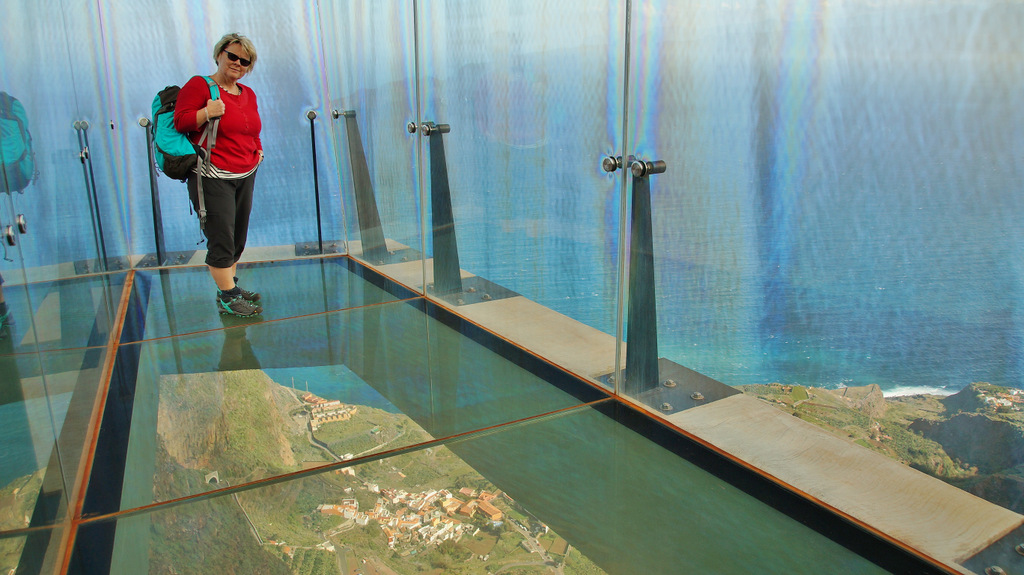 | Zuerst mal wieder zum Lieblingsthema - dem Wetter. Alle Wetterdienste sind sich für heute einig, Dauerregen auf der gesamten Insel, was das spanische Wetterportal eltiempo.es sogar zu einer Unwetterwarnung bewogen hat. Somit ist es nur logisch, dass wir heute das erste Mal hier in La Matanza blauen Himmel sehen, als wir am Morgen erwachen. Auch erstmalig sehen wir den majestätischen Teidegipfel wolkenlos über dem Orotavatal. Kurz vor 09:00 Uhr hat sich die Sonne dann über den Kamm geschoben und wir können heute das Frühstück auf unserer Terrasse genießen. Heute ist alles "seitenverkehrt" auf der Insel. Da der Wind eher aus südlichen Richtungen kommt, liegt die Wolkendecke eher im Süden an der Cumbre und der Inselnorden im Puerto de la Cruz hat daher weniger Wolken als in den letzten Tagen. Daher beschließen wir ins sonst öfters wolkige Anagagebirge zu fahren. Kurz hinter Tacoronte öffnet sich der Blick in den Nordostzipfel der Insel und wir sehen, dass dieses keine gute Idee war. Auch dort hängt alles voller Wolken und so drehen wir und fahren wieder in die Gegenrichtung. Da im Nordwesten die Sonne scheint geht unsere Fahrt via Icod, Garachico und Buenavista del Norte hinauf ins Tenogebirge. Während unten an der Küste milde Temperaturen und Sonne vorherrschen, wird es mit jeden Meter, welchen wir nach oben fahren, wolkiger und kühler. Am Mirador de Baracán machen wir einen ersten Stopp und bestaunen die tolle Bergkulisse des Tenogebirge. Am Horizont sehen wir sehr nah die Nachbarinsel La Gomera. Dort ist es auch recht grau und wolkenverhangen. Über viele Serpentinen schlängeln wir uns dann nach Masca hinunter. Dort haben wir Glück und finden schnell einen Parkplatz. Dann drehen wir eine Runde durch den kleinen Weiler der natürlich schon eine tolle Lage mitten im Barranco de Masca hat. Allerdings ist man hier nicht ganz allein, denn viele andere Touristen finden es hier ebenfalls ganz nett. Für die Wanderung durch den Barranco sind wir heute leider zu spät dran aber falls das Wetter mitspielt gehen wir schon mal die Optionen durch. Lang ist es her, dass wir den Barranco hinunter zur Playa de Masca und wieder hinauf gegangen sind. Dann geht es auf der anderen Seite des Tales wieder hinauf. Einige Mietwagenfahrer sollten besser diese Strecke meiden, da viele aus Angst bei jeden entgegenkommenden Fahrzeug anhalten. Da viele Fahrzeuge entgegenkommen, bleiben einige fast pausenlos stehen und normales Überholen ist hier unmöglich. Dann erreichen wir Santiago del Teide und fahren über Erjos und El Tanque wieder hinunter zur Küste. Dann bummeln wir gemeinsam mit den Eltern noch eine Runde durch Puerto de la Cruz. Nach 5 Wochen auf eher wenig touristischen Inseln ist man hier in einer anderen Welt. Auch haben viele Gebäude hier schon viel "Patina" angesetzt und bedürfen einer Renovierung. Dann fahren wir zwei wieder in unser Apartment San Diego nach La Matanza zurück. Dort angekommen springen wir in unseren beheizten Pool. Am Abend ziehen sich dann dunkle Wolken rund um den Teide zusammen und, das sei zur Ehrenrettung der Meteorologen gesagt, sicher regnet es auf weiten Teilen der Insel. Vielleicht sehen wir den Teide morgen auch mit einer weißen Haube?... Nachtrag: Gerade lese ich auf einer lokalen Webseite, dass es heute tatsächlich in den Cañadas geschneit hat. |