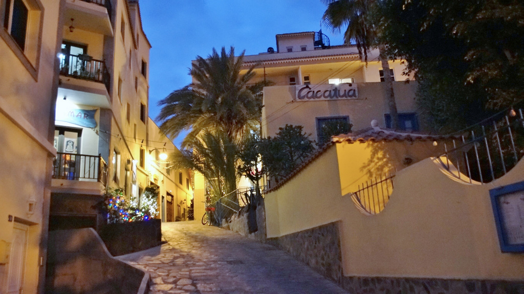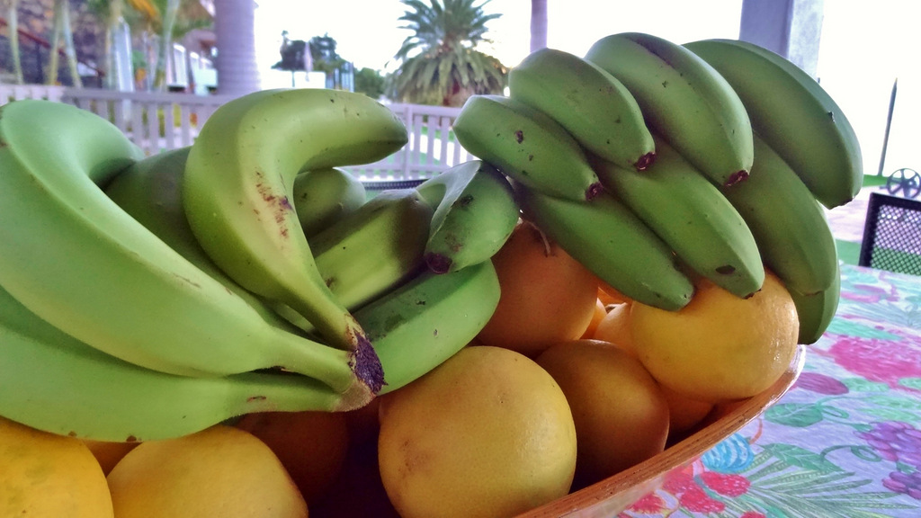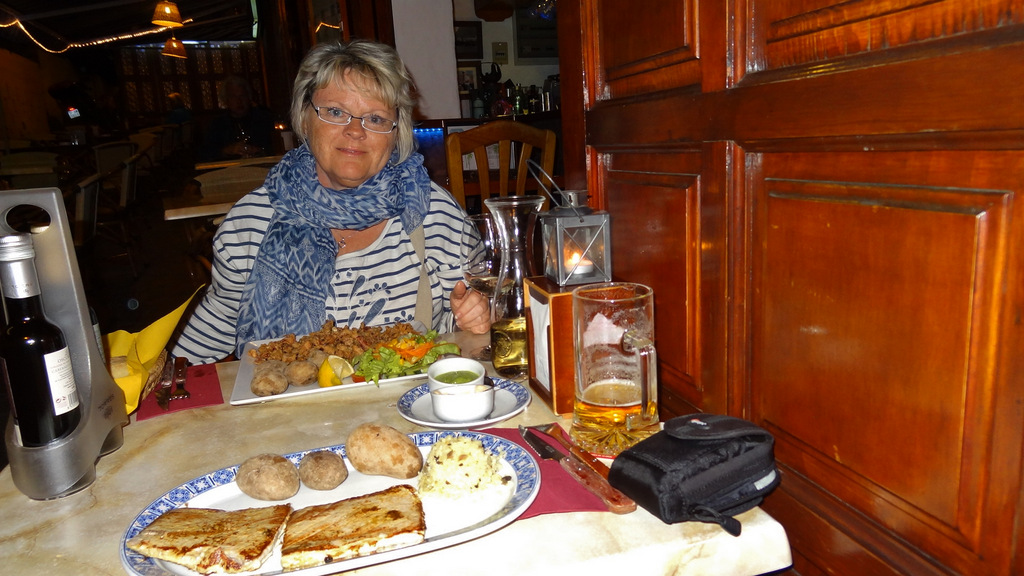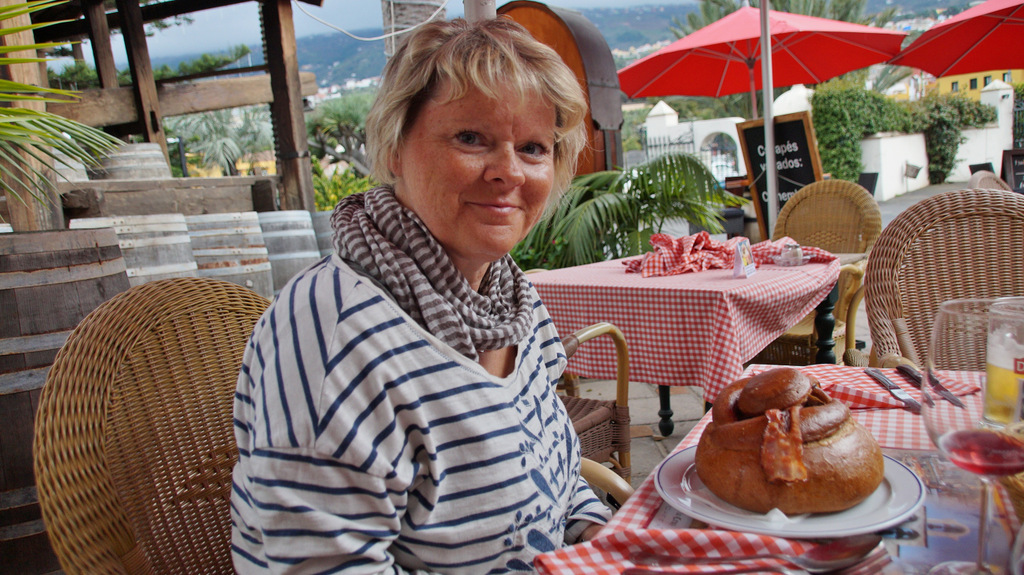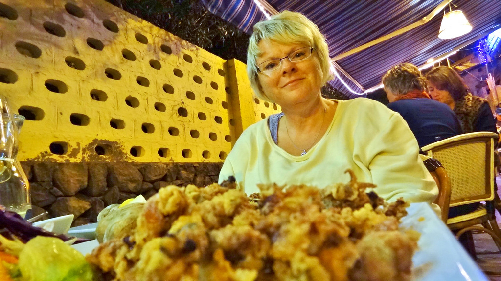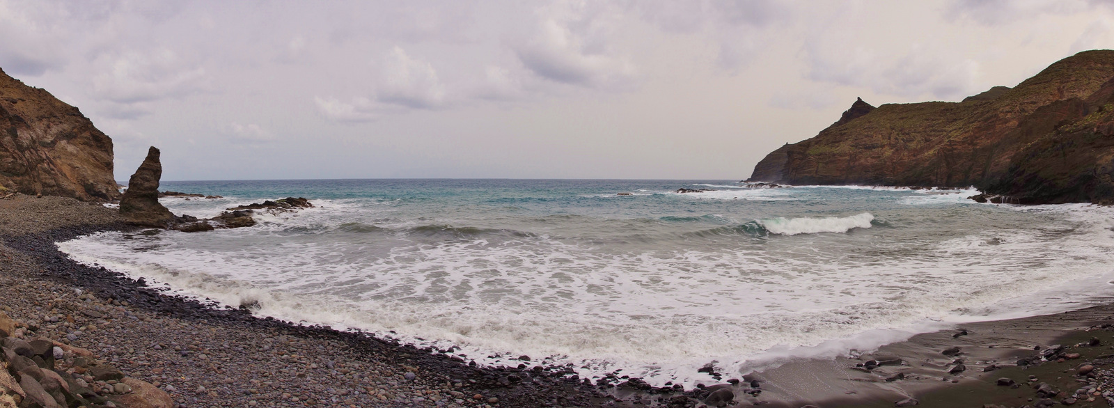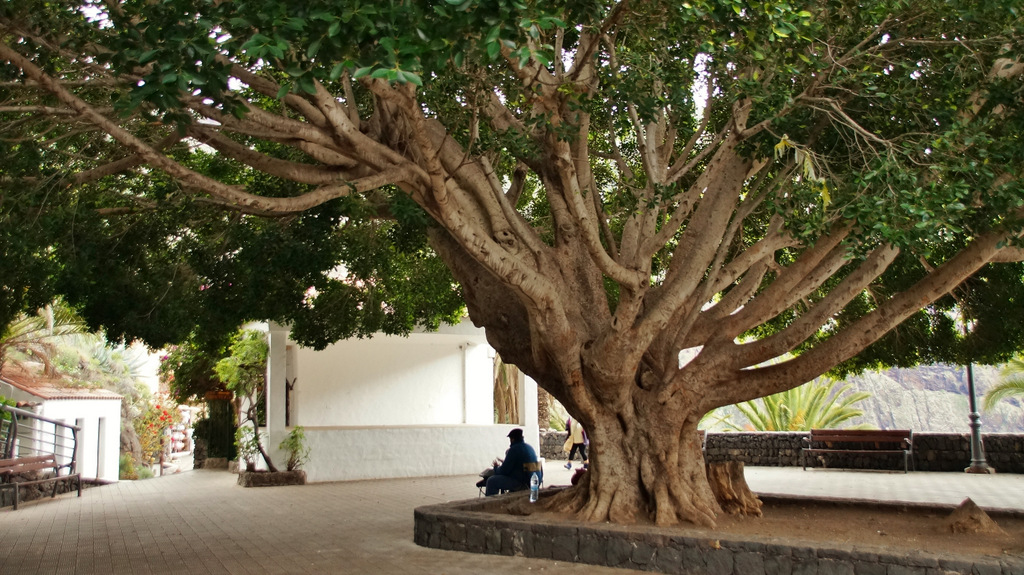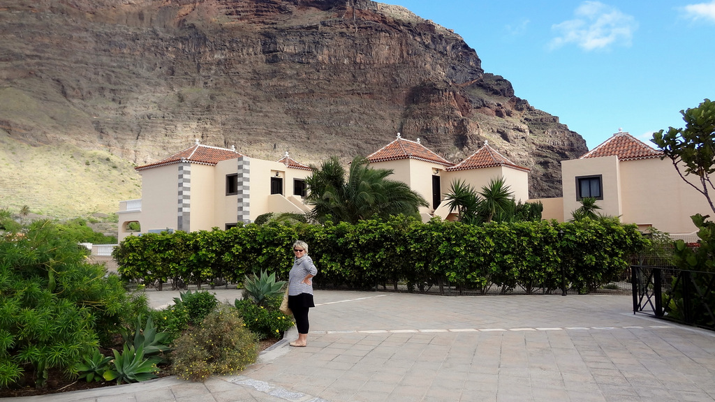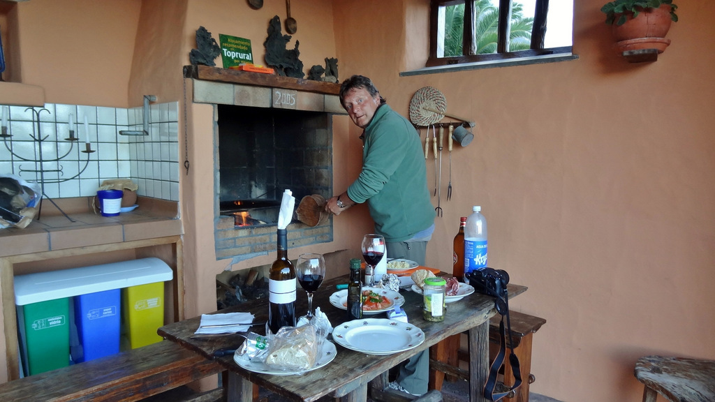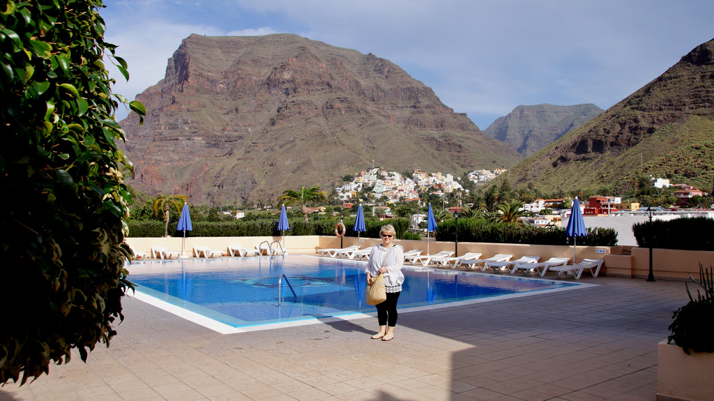 | Nachdem wir die letzten beiden Tage intensiver gewandert sind, steht heute mal wieder ein etwas ruhigerer Tag auf dem Programm. Wir dehnen das obligatorische Terrassenfrühstück recht lange aus und lassen es uns in der warmen Januarsonne gutgehen. Aus den Bergen schieben sich immer mal wieder ein paar dunklere Wolken ins Tal und auch der Wind pustet teilweise etwas heftiger. Im Nachmittag bummeln wir dann zum Hafen nach Vueltas, wo wir am kleinen Strand noch ein paar Sonnenstrahlen mitnehmen. Dann essen wir im El Pescador zu Abend. Traditionell stehen hier (...anders als der Name des Restaurants vermuten lässt) leckere Pollo asados (Grillhähnchen) auf unserer Speisekarte. |