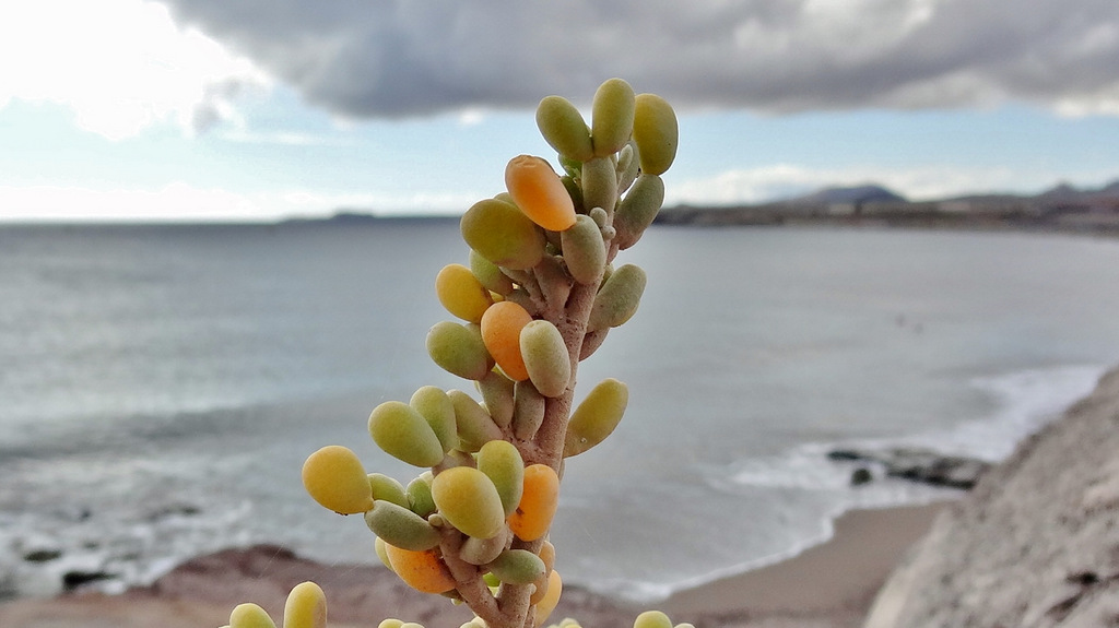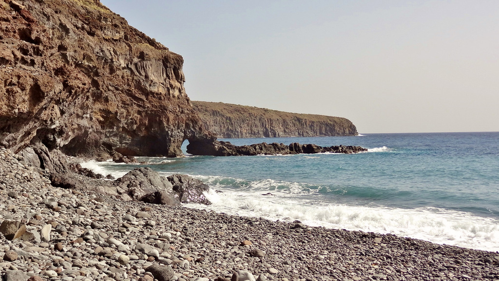 | Heute Morgen ist es mal wieder sehr diesig. Der Calima (...oder auch Scirocco oder Africano) ist zurückgekehrt. Auf unserer Fahrt über die Höhenstraße sehen wir morgens noch ganz schwach den Teide auf Teneriffa, während er am Mittag schon nicht mehr zu sehen ist, so staubig ist die Luft. Da aber ansonsten keine Wolke am Himmel ist steht unserer Wanderung durch den Barranco de Guarimiar nichts im Wege. Wir fahren nach Imada wo wir neben der Bar Acrilia wie immer unseren Parkplatz finden. An der Dorfstraße ist der Einstieg zum Barranco und wir gehen im oberen Abschnitt durch verlassene Terrassenfelder. Die ersten Mandelbäume blühen bereits und überall grünt es, da es in den letzten Wochen schon mehr Niederschläge als üblich gegeben hat. Nach einiger Zeit erreichen wir dann den Einstieg zum eigentlichen Barranco und der Weg führt nun, zwar gut ausgebaut aber teilweise etwas steiler, in die Schlucht hinunter. Der Weg führt im weiteren Verlauf ziemlich exponiert an der westlichen Barrancoseite entlang und ist an der Engstelle seit ca. 4 Jahren mit einem Geländer gesichert. Unten im Tal sehen wir nun bereits El Rumbazo. Einige Male sind wir von dort nach Targa aufgestiegen. Da man aber von dort nur per Autostop weiterkommt oder die Straße die mehreren Kilometer zurück nach Imada laufen muss, entschließen wir uns für eine andere Variante. Während Ines das Tal weiter hinunter wandert mache ich mich wieder auf den Rückweg und gehe wieder aufwärts nach Imada zurück, wo der Mietwagen parkt. Dort wieder angekommen fahre ich hinunter nach Playa Santiago und von dort hinauf in Richtung Pastrana, wo mir Ines bereits entgegen kommt. Dann fahren wir die wenigen Kilometer an die Playa del Medio, wo wir auch heute den Nachmittag bei bester Sonne verbringen. Aufgrund des Calima gibt es heute leider keinen farbenprächtigen Sonnenuntergang zu bestaunen und so machen wir uns bereits gegen 18:00 Uhr auf den Weg ins "Abisinia". |