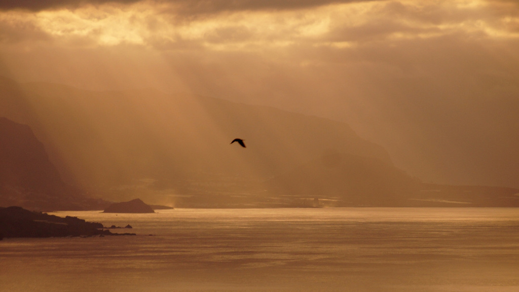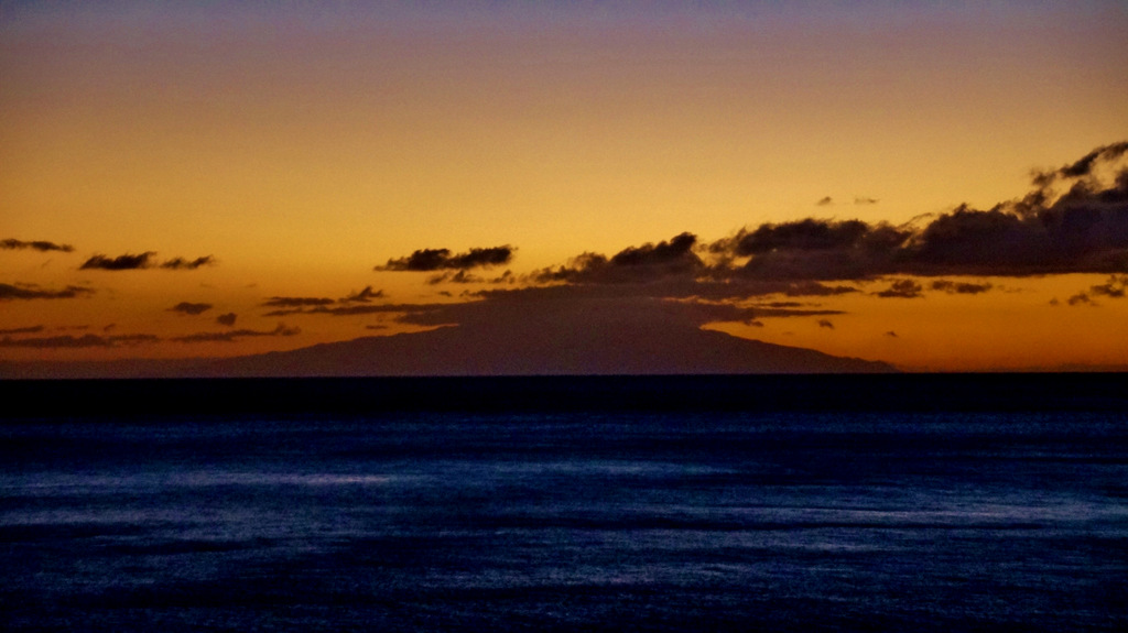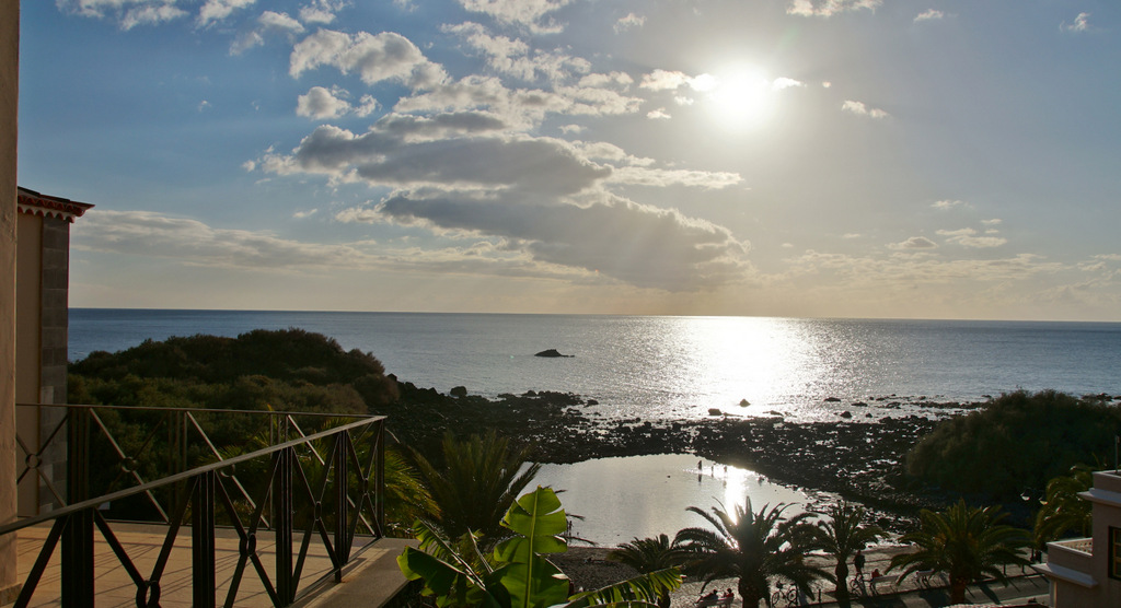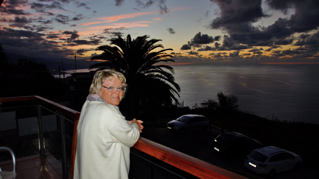 | Auch heute, an unserem letzten Tag, sind wir auf der Suche nach der Sonne. Mit dem Terrassenfrühstück war es heute leider schwierig, da es die ganze Nacht geregnet hat. So starten wir am Morgen über die TF-1 und weiter über die Südautobahn in den Süden, in der Hoffnung, dort die Sonne zu finden. An der Ostküste und hinter Santa Cruz sehen wir uns noch auf dem richtigem Weg und wir hoffen, dass es an unserem Ziel, der Playa de Tejita, sonnig ist. Während wir bei strahlendem Sonnenschein in den Süden fahren sehen wir schon aus einiger Entfernung, dass genau im Bereich der Montaña Roja, südlich des Flughafens, dichte Wolken liegen. Trotzdem geht es weiter zur Playa de Tejita, wo wir einen Teil des Vormittags verbringen. Da es allerdings nicht aufziehen will, fahren wir gegen Mittag nach Los Abrigos und bummeln kurz an der Minipromenade. Da am Horizont in westlicher Richtung der Himmel deutlich blauer aussieht, entschließen wir uns nach Los Cristianos zu fahren. Auch wenn wir gerade Los Cristianos nur als notwendige Durchgangsstation nach La Gomera nutzen, so verbringen wir hier den Nachmittag bei schönsten Sonnenwetter am urbanisierten Strand Las Vistas. Der Seele tut es weh, dass wir am Horizont ständig La Gomera sehen und gerade die beiden Fähren in Richtung San Sebastian auslaufen. In reichlich 10 Monaten sind wir hoffentlich wieder hier und sitzen dann auf der Fähre in Richtung La Gomera. Dann fahren wir entlang der Südautobahn zurück nach La Matanza. Auch wenn eigentlich Kofferpacken angesagt wäre, nutzen wir erst einmal die tolle Abendsonne und genießen auf unserem Balkon ein letztes Mal die Abendstimmung mit dem genialen Blick über das Orotavatal und übers Meer bis hinüber nach La Palma, was sich im Licht der untergehenden Sonnen heute prächtig am Horizont abzeichnet. |