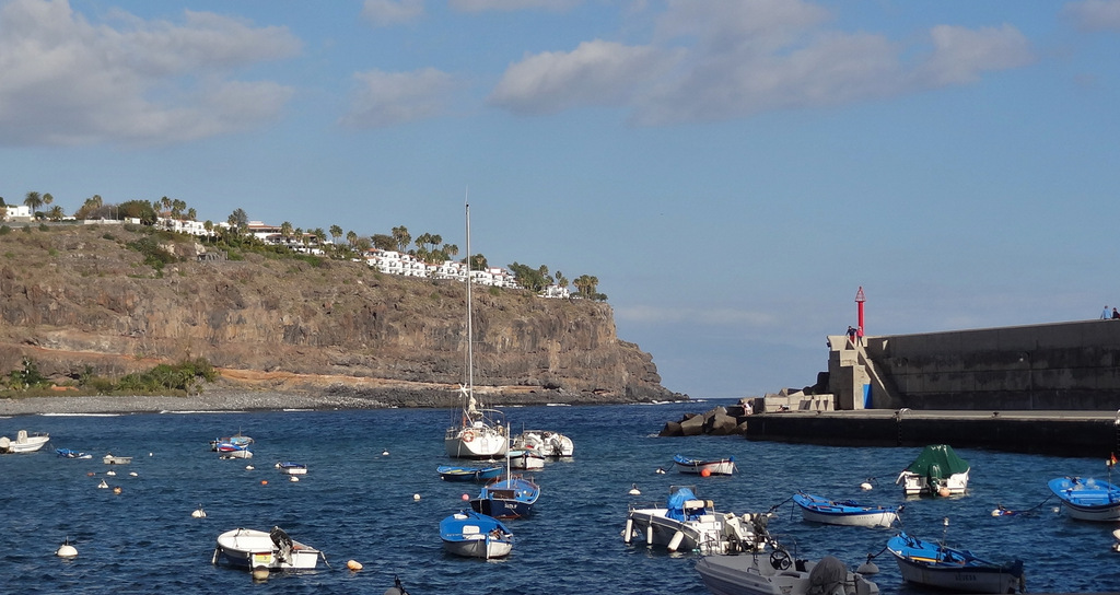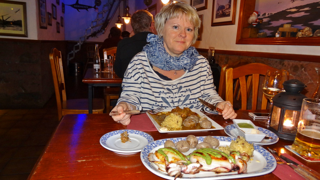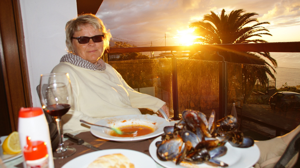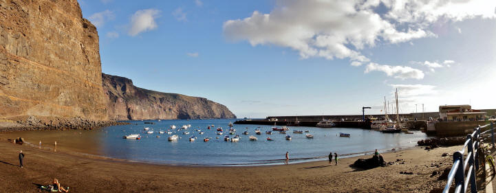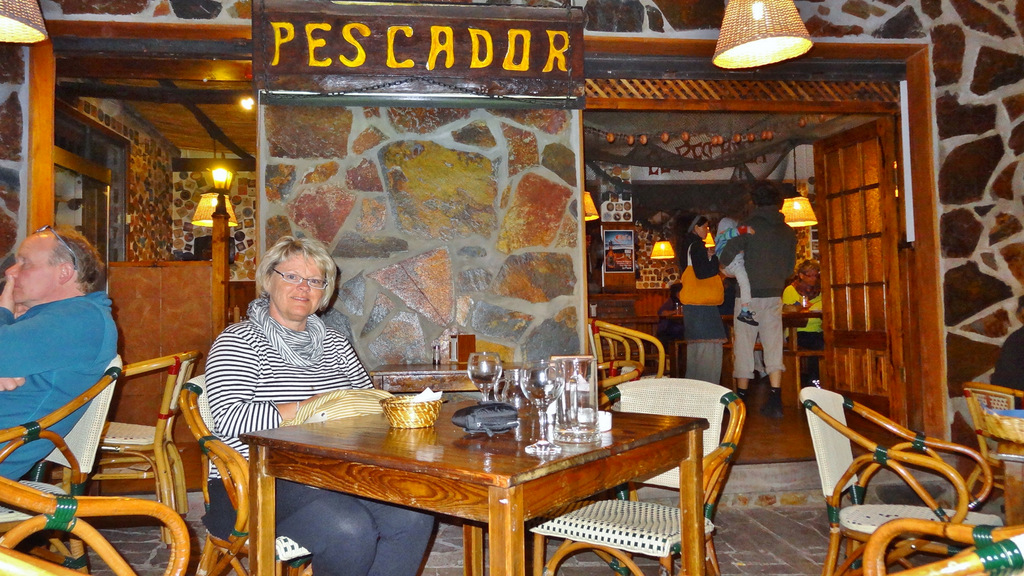 | Nachdem wir die letzten Tage viel gewandert sind ist heute wieder "Ruhetag" angesagt. Daher gibt es heute nicht allzu viel zu berichten. Nachdem sich ein paar wenige Wolken am Vormittag verzogen hatten, lachte die Sonne bis zum Abend vom blauen Himmel und zeigte sich von ihrer besten Seite. Am Abend bummeln wir noch zum Hafen von Vueltas, wo sich die goldgelbe Abendsonne an der Felswand des Tequergenche abzeichnet. Zum Abendessen sind wir heute mal wieder im "El Pescador". |