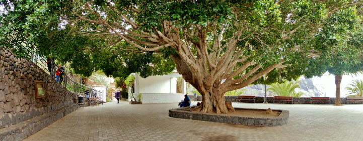 | Gegen 09:30 Uhr starten wir nach dem Frühstück in Richtung Höhenstraße. Bei La Laguna Grande biegen wir in die enge Straße nach Las Rosas, welche durch imposanten Laurisilvawald führt, ab und erreichen das Besucherzentrum in Juego de Bolas. Da Ines den Steilaufstieg durch die Rote Wand nicht mit absolvieren möchte, setze ich sie hier ab und fahre hinunter nach Agulo zum Einstieg in die Tour. Nach ca. 45 Minuten teilweise sehr steilen Aufstieges erreiche ich die obere Kante der Steilwand. Der Teide auf Teneriffa hüllt sich mehr und mehr in Wolken nachdem wir ihn heute früh noch im Dunst gesehen haben. Oben in der Steilwand angekommen ist ein neuer Weg gebaut worden, welcher nicht mehr den Umweg über den Stausee macht sondern direkt, in einem weiteren recht steilen Aufstieg, hinauf zum Mirador de Abrante führt. Hier treffe ich mich mit Ines. Nach ein paar Fotos vom Mirador hinunter nach Agulo machen wir uns gemeinsam an den Abstieg hinunter nach Agulo. Der Weg führt über die markante Rote Erde von Juego de Bolas. Der Weg ist mittlerweile auch hergerichtet und nicht mehr so rustikal, wie wir ihn noch vor einigen Jahren erlebt haben. Nachdem wir die Inselhauptstraße überquert haben umgehen wir noch den Tunnel von Agulo und erreichen dann den Ort Agulo. Am Horizont sehen wir den markanten Pescante von Hermigua und auch der kleinere Ableger von Agulo ist tief unten zu erkennen. Das sind die Überreste der alten Bananenverladestationen. Da es im Norden keine Häfen gab (...und gibt) hat man lange Ausleger zum Verladen der Früchte auf Schiffe gebaut. Heute stehen nur die Überreste dieser Anlagen. Dann bummeln wir noch durch den alten idyllischen Ort Agulo mit seiner maurisch anmutenden Kirche. Am Auto zurück nehmen wir den "Inselhighway" via Vallehermoso wo wir noch ein paar Einkäufe erledigen. Dann geht es die neu ausgebaute Straße hinauf zu den Chorros de Epina und weiter zurück ins Valle Gran Rey. |