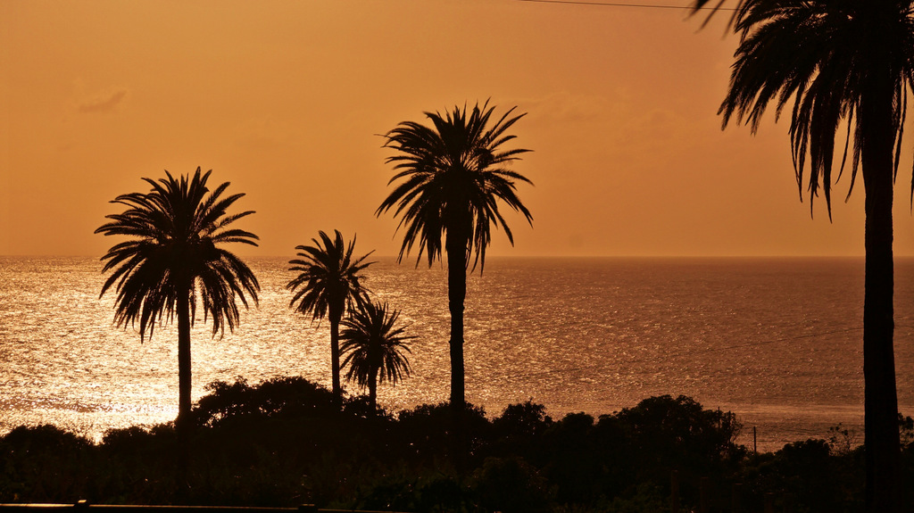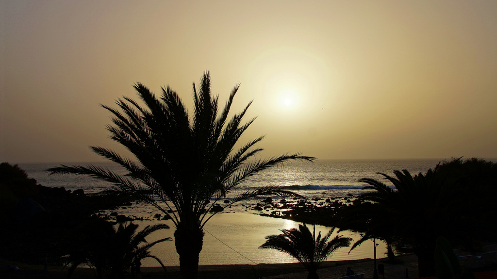 | Leider hat Lorenzo doch Recht behalten. Der Calima meldet sich heute wieder zurück aber glücklicherweise nicht in der Intensität von vorgestern. Heute kann man das Blau des Himmels erkennen doch leider zeigt sich die Sonne den ganzen Tag wieder durch einen Staubschleier. Trotzdem ist keine Wolke am Himmel und es ist trotz der staubigen Luft angenehm. Da wir heute Morgen den Mietwagen abgeben und somit den Tag sehr geruhsam angehen, genießen wir bei (getrübten) Sonnenschein in aller Ruhe das Frühstück auf unserer Terrasse. Anschließend bummeln wir zum Hafen nach Vueltas und dann weiter nach Borbalan. Die meiste Zeit des Tages verbringen wir dann mit einem guten Buch auf der Terrasse. Da auch der Sonnenuntergang heute durch den anhaltenden Calima nicht sonderlich farbenfroh ausfällt, lassen wir den Tag bei einem Glas Rotwein (Viña Norte aus Tacoronte/Tenerife) auf unserer Terrasse ausklingen. |