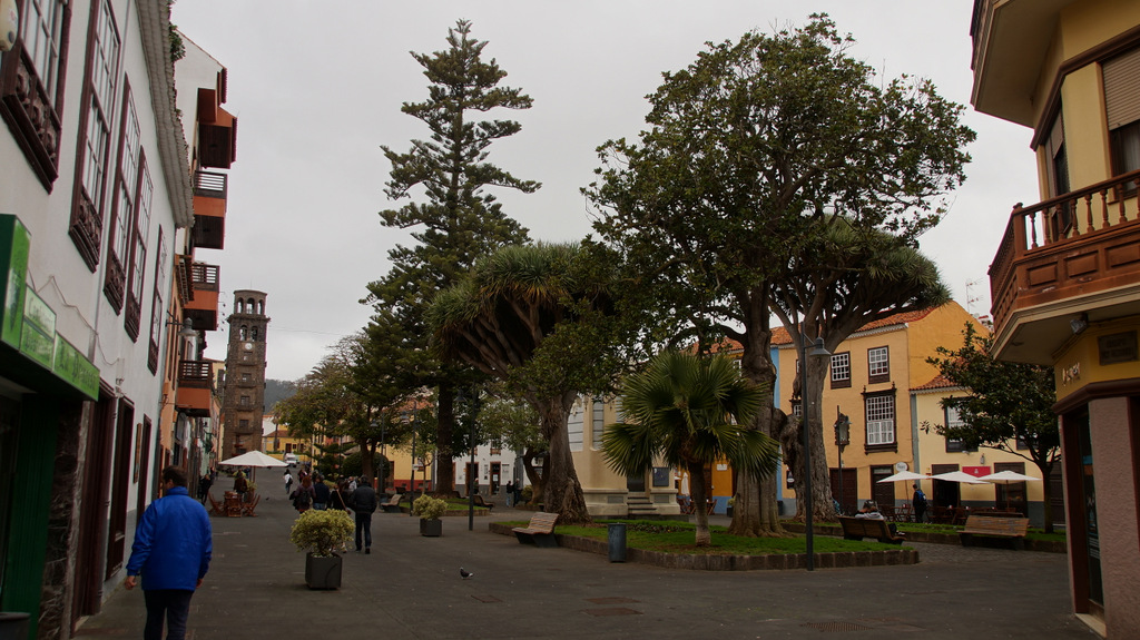 | Heute Morgen klingelt noch vor 6 Uhr der Wecker. Das macht sich notwendig, da um 08:50 Uhr unser Flieger zurück nach Teneriffa geht. So packen wir noch die letzten Dinge in den Koffer und nach einem kurzen Early-bird-Frühstück fahren wir via Tunnelstraße und Valverde zum Flughafen. Dort treffen wir kurz vor 08:00 Uhr ein, geben den Mietwagen ab und checken ein. Dann geht es auch schon los und die Binter bringt uns in 40 Minuten hinüber nach Teneriffa. Leider ist es recht wolkig, so dass wir von La Gomera unter uns nichts sehen können. Umso majestätischer zeigt sich El Teide, da dieser natürlich um einiges aus der Wolkendecke heraus ragt. Nur wenige Minuten nach der Landung in Los Rodeos haben wir unsere Koffer und während der 5 Minuten Wartezeit auch schon den Mietwagen übernommen. Wenn es nur überall so schnell und unkompliziert gehen würde. Über die Nordautobahn erreichen wir dann unser nächstes (...und leider auch letztes) Quartier unserer kleinen Rundreise. In der Finca San Diego in La Matanza haben wir ein tolles Quartier gefunden. Einzig und allein ist das Wetter auch hier das Thema. Im Lokalradio war auf der Herfahrt zu hören, dass es nur 2 kältere Winter seit Beginn der Wetteraufzeichnungen gab. Nach kurzem CheckIn in unserem Quartier machen wir uns dann auch auf den Weg nach Puerto de la Cruz, wo wir die Eltern treffen. Dann fahren wir gemeinsam in Richtung La Laguna, wo wir einen Bummel durch die historische Altstadt unternehmen. Die alte Hauptstadt der Insel hat einiges an alten Bauwerken zu bieten. Zurück geht es dann auf dem gleichen Weg. Nach ein paar Einkäufen geht es dann zurück ins Quartier wo wir den Abend ausklingen lassen. |
