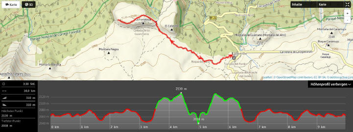 | Zum Arco de La Tosca - Auffahrt zur La Dehesa und weiter zur Raya de la Llania - Wanderung durch den Monteverde zur Fuente El Lomo - Cala de Tacorón - Valverde - Cala Maceta |
