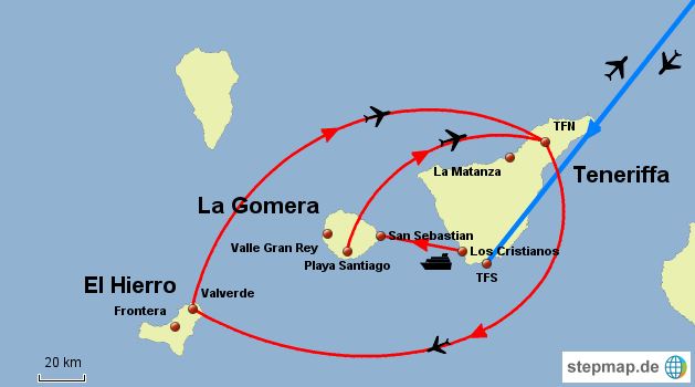 | Transfertag - Von La Gomera über Tenerife Norte (Los Rodeos) nach El Hierro (Valverde) |
