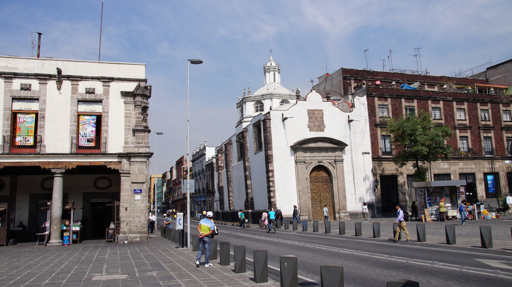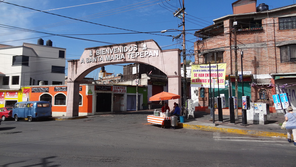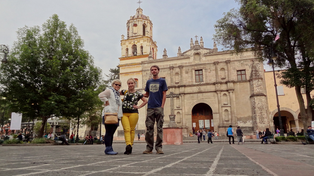 | Heute Morgen weckt uns die Sonne, welche von einem strahlend blauen Himmel scheint. Nach dem Frühstück bringen wir Jenny zum Microbus, da sie ja nicht frei hat sondern arbeiten muss. Wir kaufen im Oxxo vor Ort noch ein paar Flaschen Wasser und erstehen in einer kleinen Fruteria leckere Papaya. Dann drehen wir noch einen Spaziergang durch Santa Maria Tepepan, den Ortsteil von Xochimilco, wo Jenny wohnt. Dann machen wir uns gegen 13:00 Uhr auf den Weg, um Jenny vom TEC abzuholen. Zuvor erstehen wir in einer Kaffeerösterei noch leckeren mexikanischen Kaffee. Dann treffen wir Jenny und fahren gemeinsam mit 2 Mal umsteigen zur Inlingua nach San Angel, wo Jenny's nächster Kurs bereits auf sie wartet. Während Jenny unterrichtet nutzen wir gemeinsam mit Rafa die Zeit und erkunden Chimalistac, einen sehr schön gelegenen Stadtteil von Mexico-City. In recht idyllischer Wohnlage wohnen hier die Schönen und die reichen der Stadt. Ein zentraler Punkt ist die alte Kirche Capilla San Sebastian Martir, welche wir besichtigen. Durch lauschige Gassen geht es dann zurück zu Inlingua. Hier ist man, nur wenige hundert Meter von ruhigen Chimalistac entfernt, plötzlich im Business-Disrikt, wo viele Institutionen (z.B. Nacional Financiera NAFIN) und auch eine der Universitäten von Mexico-City (UNAM) liegen. Gemeinsam mit Jenny schlendern wir dann nach San Angel, wo wir zuerst das Monasterio del Carmen besichtigen. Gegenüber des Klosters befindet sich dann ein kleiner Markt in einem alten kolonialen Haus. Während es im Erdgeschoss allerlei lokale und internationale Delikatessen gibt (der Markt erinnert uns etwas an den Mercado San Pablo in La Laguna auf Teneriffa), sind im Obergeschoss mehrere Boutiquen, z.B. Jenny's Favorit Mina Alvarez, wo wir natürlich nicht eine Einkäufe dran vorbei kommen. Dann bummeln wir durch die alten Gassen von San Angel. Dann wird es langsam dunkel und wir gehen zurück in Richtung Metrobus und essen im Sushi-Roll ganz lecker zu Abend. Dann machen wir uns auf den Rückweg und hier merkt man wieder, dass Mexico-City kein Dorf ist. Zuerst nehmen wir den modernen Metrobus. Der ist wirklich top von der Ausstattung und sehr schnell unterwegs, doch gegen 20:30 Uhr ist hier volle Rushhour. So müssen wir mehrere Busse fahren lassen ehe wir es schaffen, in einen Bus vorzudringen. Die nächsten beiden Etappen geht es dann weiter mit dem eher rustikalen Microbus, welcher den totalen Kontrast zum modernen Metrobus darstellt. Ähnlichkeiten gibt es aber meist beim Füllstand, auch die kleinen Busse sind meist recht gut gefüllt. Nach ca. 90 Minuten Fahrt erreichen wir dann wieder Tepepan. | |