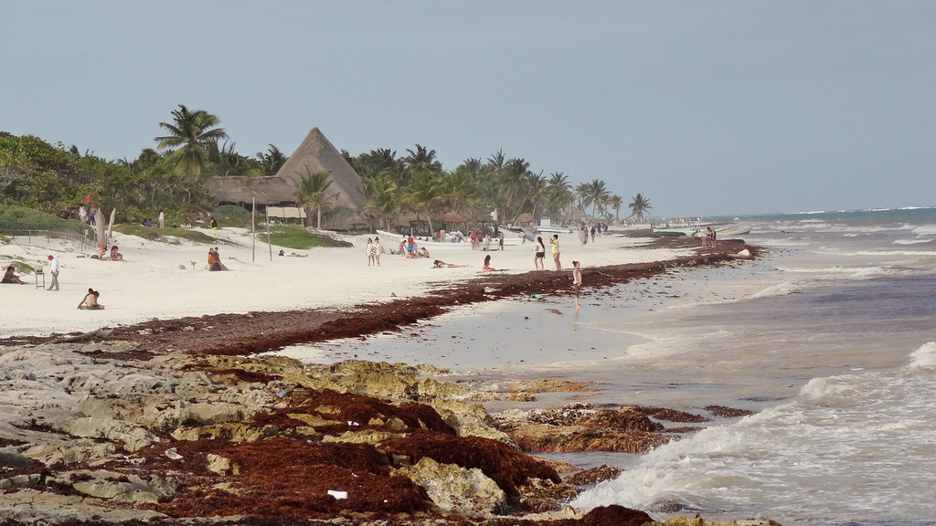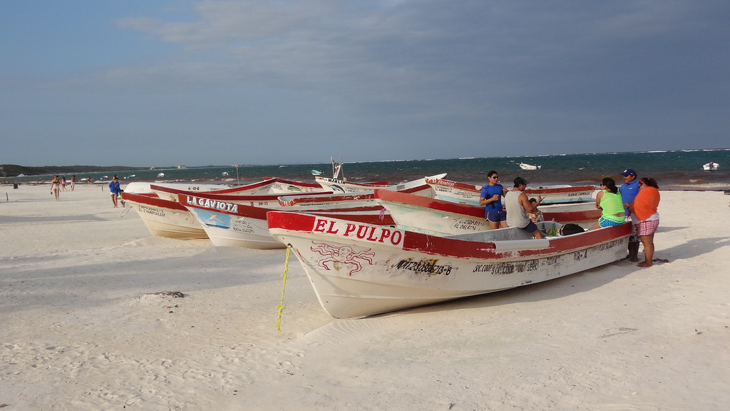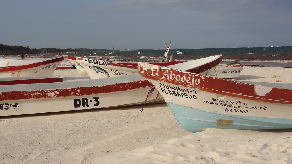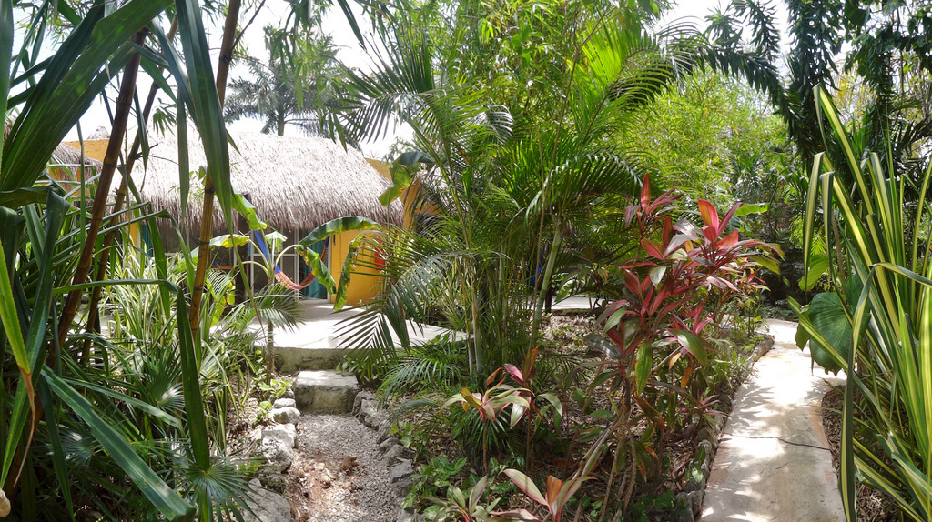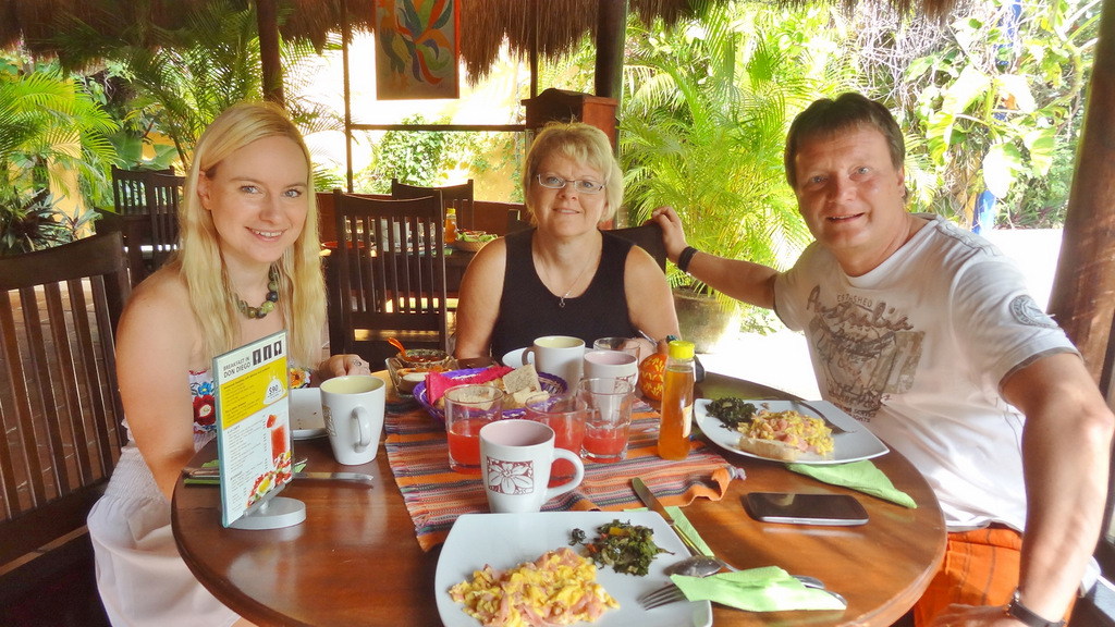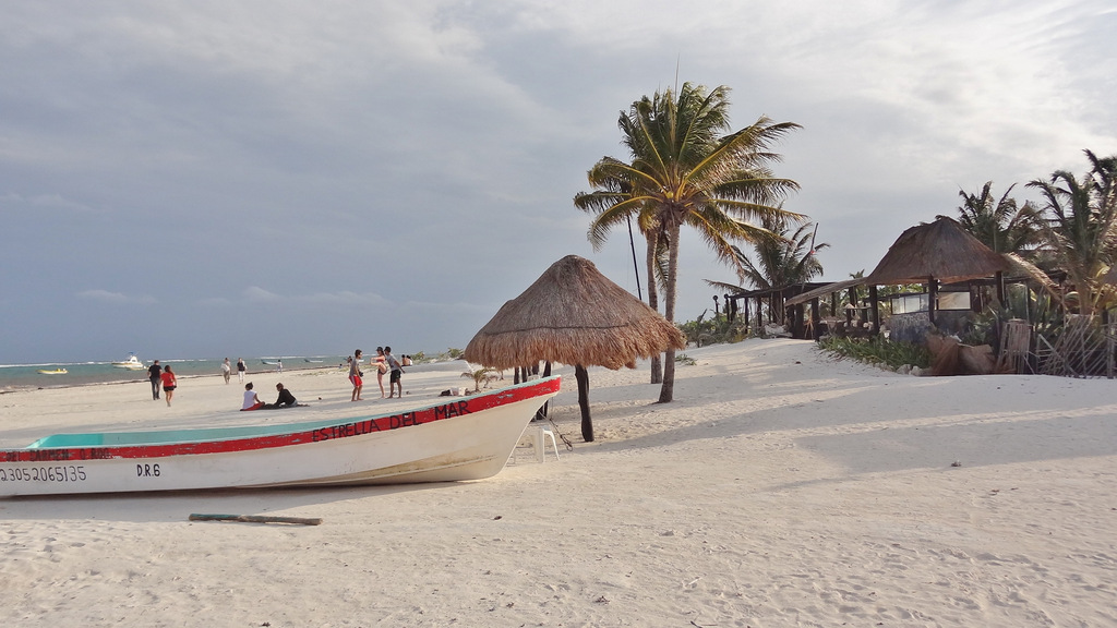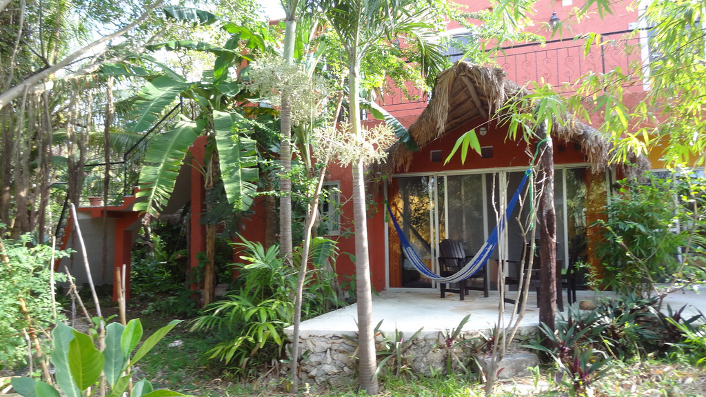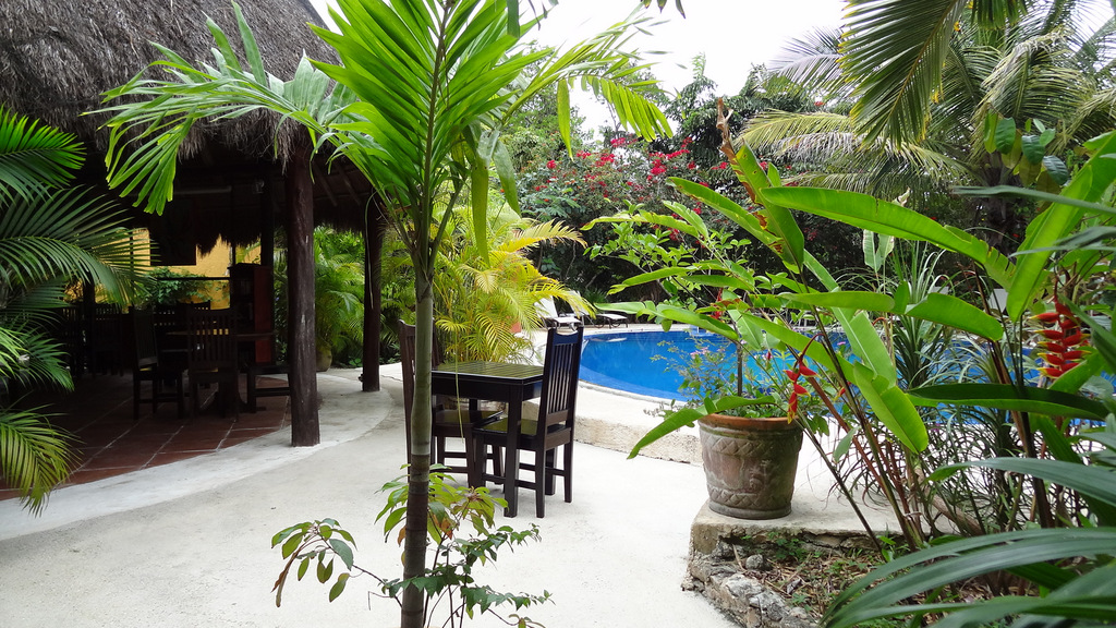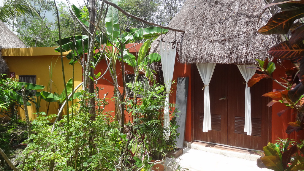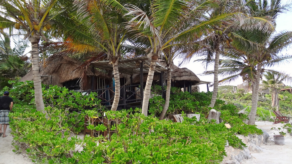 | Zu unchristlicher Zeit gegen 02.15 Uhr klingelt der Wecker. Eine Stunde später machen wir uns dann auf den Weg zum Flughafen. Nachdem wir noch Rafas Papa abgeholt haben, der uns netterweise das restliche Stück zum Flughafen fährt, treffen wir gegen 05:00 Uhr am Aeropuerto ein. Dann checken wir bei der Vivaaerobus, dem mexikanischen Ryanair-Ableger, ein. Pünktlich um 07:00 Uhr starten wir in Richtung Cancun, wo wir nach ca. 2,5 Stunden Flug eintreffen. Leider ist es ziemlich wolkig aber trotzdem tropisch warm. Nach etwas nerviger Übernahme des Mietwagens fahren wir dann in Richtung Tulum. Nach ca. 2 Stunden Fahrt treffen wir dann im San Diegon de la Selva ein, wo wir gleich unser Zimmer beziehen können. Auch wenn es nicht direkt am Meer liegt, so ist es doch wunderschön mit vielen Pflanzen angelegt. Nach einer ersten Dusche starten wir dann weiter in Richtung Süden, um die Pyramiden bei Muyil zu besichtigen. Hier bekommen wir einen ersten Eindruck von den Mayapyramiden. Nach dem Rundgang geht es wieder zurück nach Tulum, wo wir an den Strand wollen. Das erweist sich als gar nicht so einfach. Dadurch, dass fast das gesamte Areal von Hotels und Urlaubsappartements eingenommen wird, hat man über Kilometer hin keine Möglichkeit das Auto zu parken oder an den Strand zu gelangen. Nachdem wir uns vor Ort befragt haben gelingt es uns dann doch noch, ans Meer vorzudringen. Leider wird der Badespaß im Moment von viel angeschwemmten Seegras behindert. Trotzdem stehen wir am Strand und schauen auf türkisblaues Wasser. Nach dem Abendessen lassen wir den Tag auf unserer Terrasse in der Hängematte ausklingen. | |