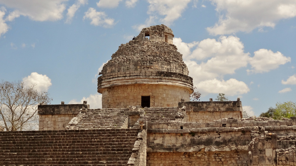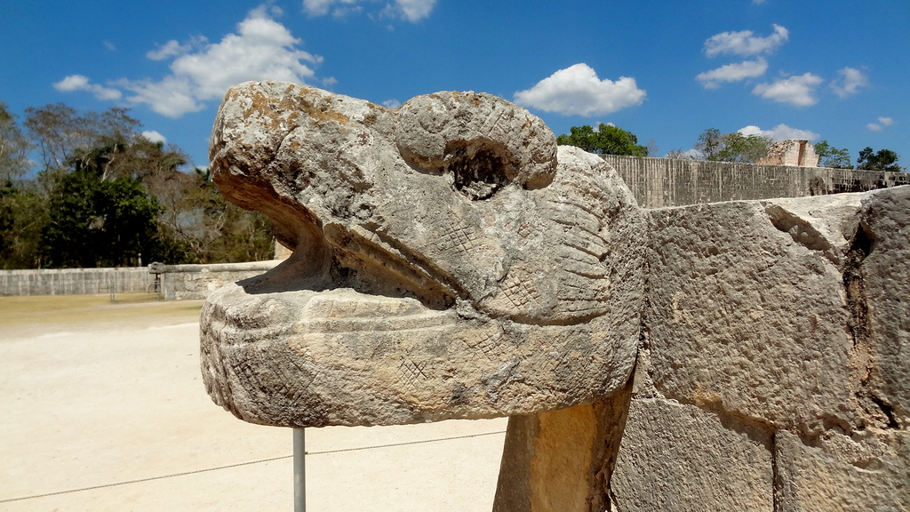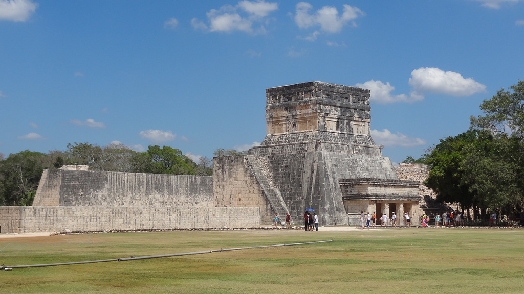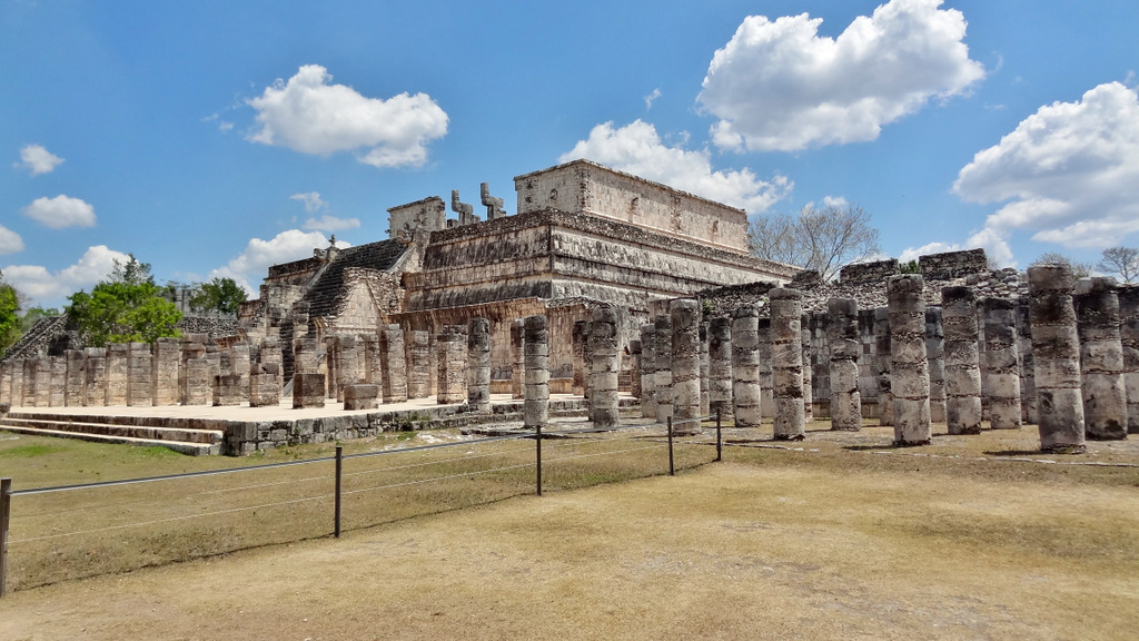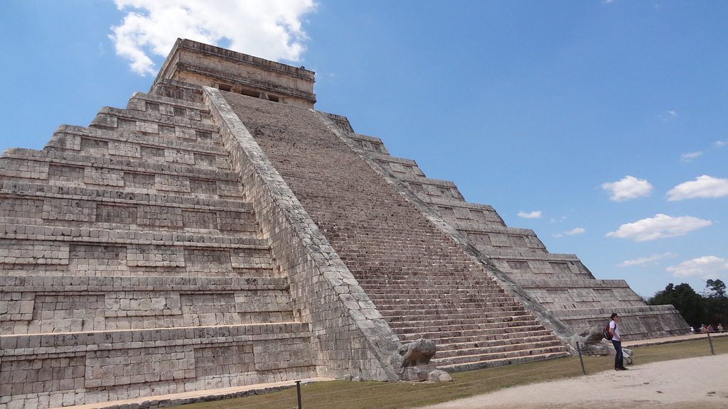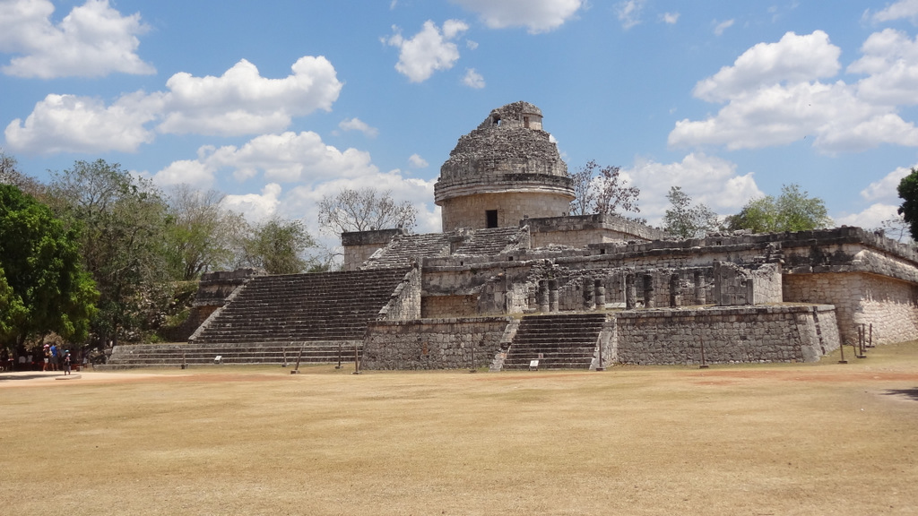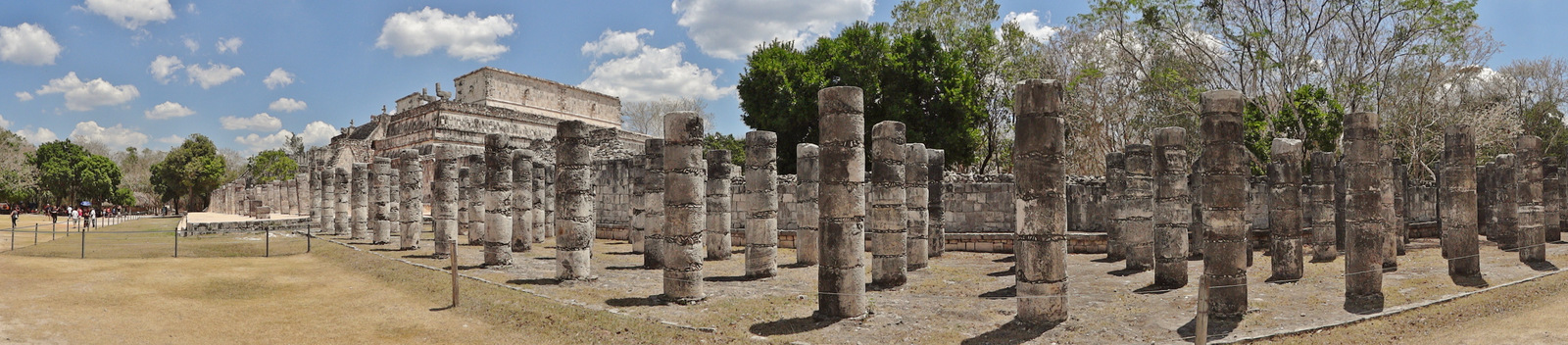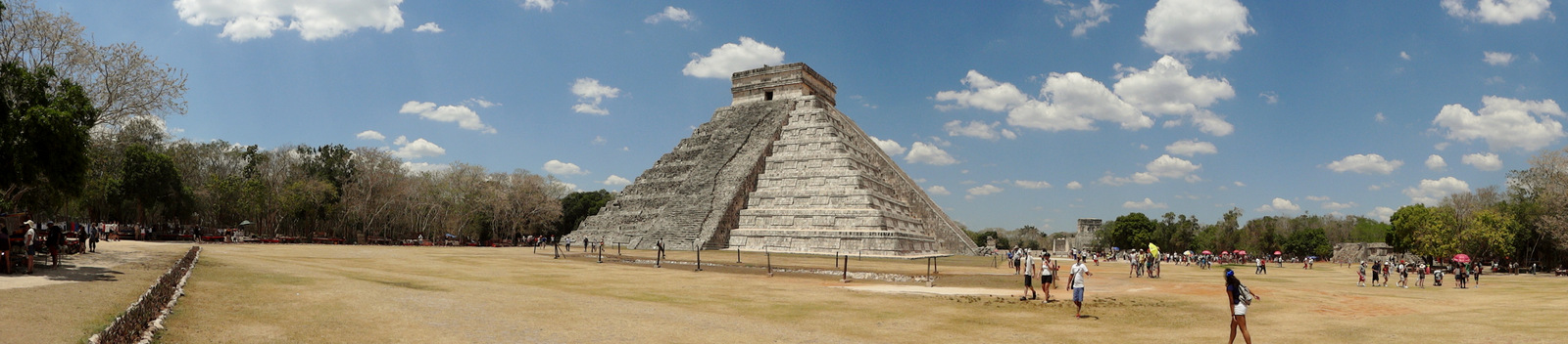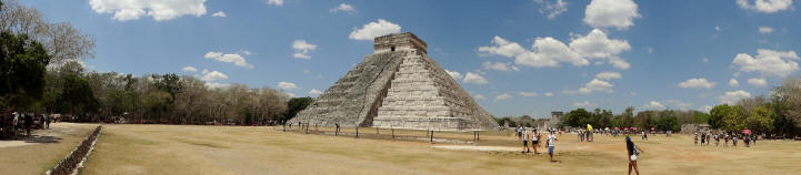 | Heute Morgen lacht die Sonne vom wolkenlosen Karibikhimmel. Nach dem Frühstück brechen wir zeitnah in Richtung Chichen Itza auf. Hier stehen die wohl bekanntesten Maya-Pyramiden. Nach mehr als 2 Stunden Fahrt quer über die Halbinsel Yucatan treffen wir in Chichen Itza ein. Nachdem wir an der Riviera Maya im Bundesstaat Quintana Roo die Uhr eine Stunde vorstellen mussten, sind wir hier im Staat Yucatan, wieder in mexikanischer Normalzeit zu Gange. Auch hier sind sehr viele Touristen anzutreffen welche hauptsächlich von den Urlaubsorten Cancun und Playa del Carmen hierher kommen. Natürlich hauptsächlich Amerikaner aber seit langem hört man ab und zu auch ein deutsches Wort in der Menge. Gleich nach dem Eingang treffen wir auf das Hauptheiligtum, die riesige Kukulcán-Pyramide. Bevor wir uns diese näher anschauen, machen wir einen Abstecher zum Pelota-Feld. Danach umrunden wir die Kukulcán-Pyramide und sehen, dass die markanten Treppen der Pyramiden nur auf zwar Seiten fertiggestellt bzw. erhalten sind. Am Rande stehen noch viele kleine Tempel und Pyramiden. Gesäumt durch eine Vielzahl von Händlern, welche verschiedene Kunstgewerbeartikel anpreisen, erreichen wir dann ein weiteres Highlight, das Observatorium der Mayas. Nach dem ausgedehnten Rundgang machen wir uns dann wieder auf die Rückfahrt. Bevor wir den direkten Weg nach Tulum einschlagen machen wir noch im nahe gelegenen Ort Valladolid einen Stopp. Im Innenbreich der kleinen Stadt findet man viel koloniale Architektur und natürlich eine markante Kirche. Nach einer Ortsrunde um den lokalen Zocalo fahren wir dann wieder zurück nach Tulum. Am Abend fahren wir nochmals an den Strand wo leider auch heute wieder viel Seegras zu finden ist. | |