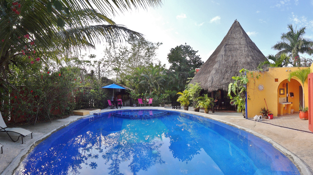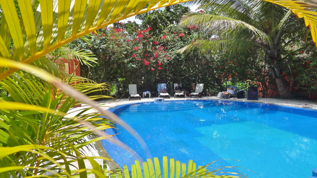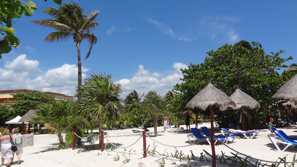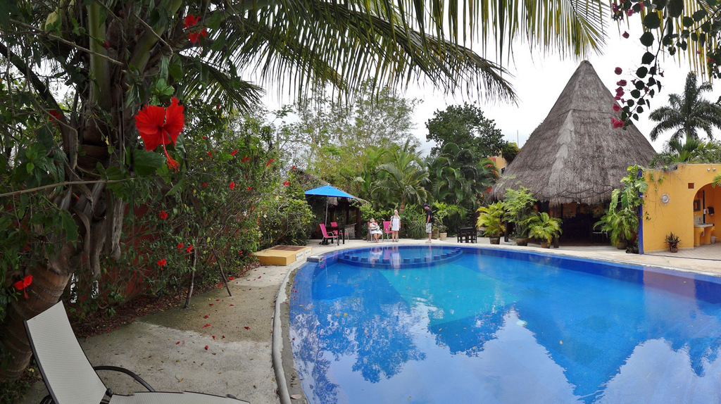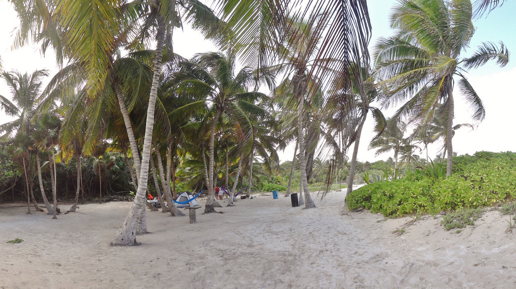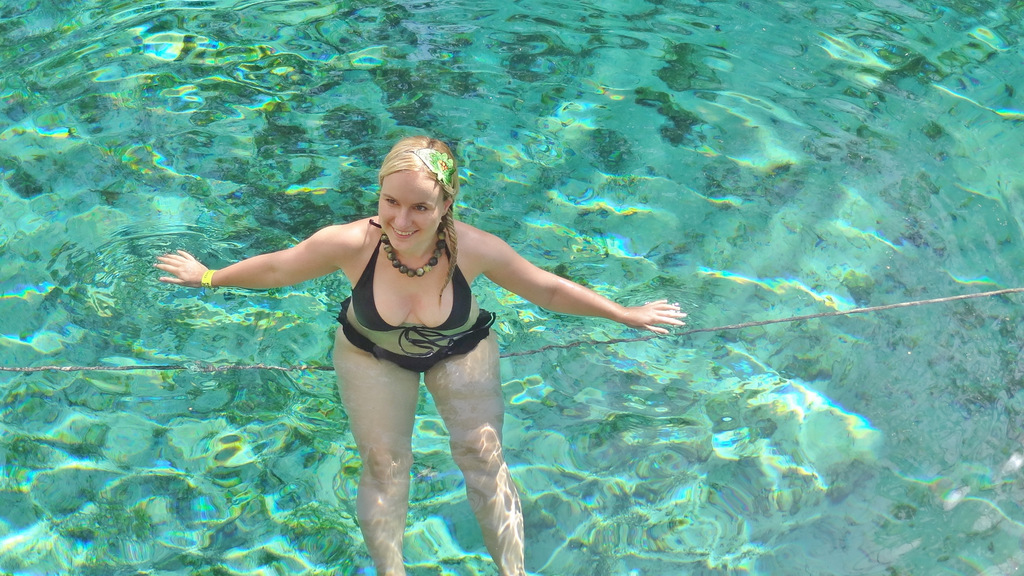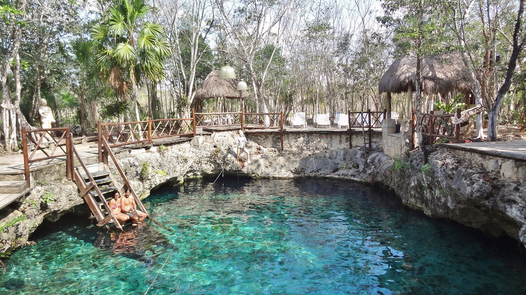 | Nachdem wir gestern recht lange unterwegs waren, wollen wir es heute wieder etwas ruhiger haben. So fahren wir gleich zum Tagesstart zu einer weiteren Cenote namens Zacil-Ha. Diese liegt nur ein paar Kilometer hinter Tulum. Als wir am Morgen hier eintreffen sind nur wenige Besucher vor Ort. So nutzen wir die Gelegenheit, um im glasklaren Wasser zu schwimmen und zu schnorcheln. Diese Cenote ist etwas größer als die von Xcacel. Auch hier schwimmen bunte Fische und unterhalb des Felsens zieht sich die Cenote noch höhlenartig weiter hin. Gegen Mittag kommen dann aber immer mehr Besucher, so dass wir uns entschließen, wieder in Richtung Akumal zu fahren. Zuerst wollen wir einen anderen Strandabschnitt besuchen. Als wir dort ankommen, läuft gerade das volle Animationsprogramm für amerikanische Badegäste ab, so dass wir ganz schnell wieder die Flucht ergreifen und weiter nach Xcacel fahren. Hier finden wir im grünen Ufergebüsch ein schattiges Plätzchen, wo wir den Nachmittag verbringen. Nach einem schönen Badenachmittag führt uns der Weg gegen 17:00 Uhr zurück nach Tulum, wo wir auch heute Abend unsere Terrasse nutzen und es uns gutgehen lassen. | |